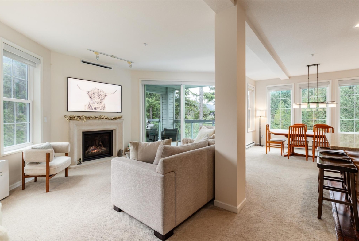 Bright, updated 2-bedroom, 2-bathroom townhouse in the popular Lynx complex on desirable Blueberry Hill. This spacious single-level home features an open-concept layout with large windows, a cozy gas fireplace, and open living and dining areas perfect for entertaining. Recent upgrades include new windows and patio door, new boiler, Control4 smart home system, fibre Wi-Fi, new appliances, Sonos speakers, updated furnishings, electric blinds, and more—making it truly move-in ready. Enjoy golf course surroundings, nearby Valley Trail access, and a short stroll to Whistler Village or Alta Lake. Includes covered parking and a private 14’ x 14’ secure storage area for bikes, skis, paddleboards, and more. Ideal for full-time living, a weekend retreat, or unlimited nightly rentals. Selling FULLY FURNISHED. No GST.