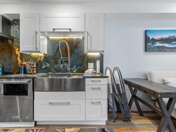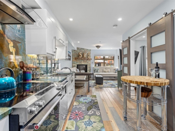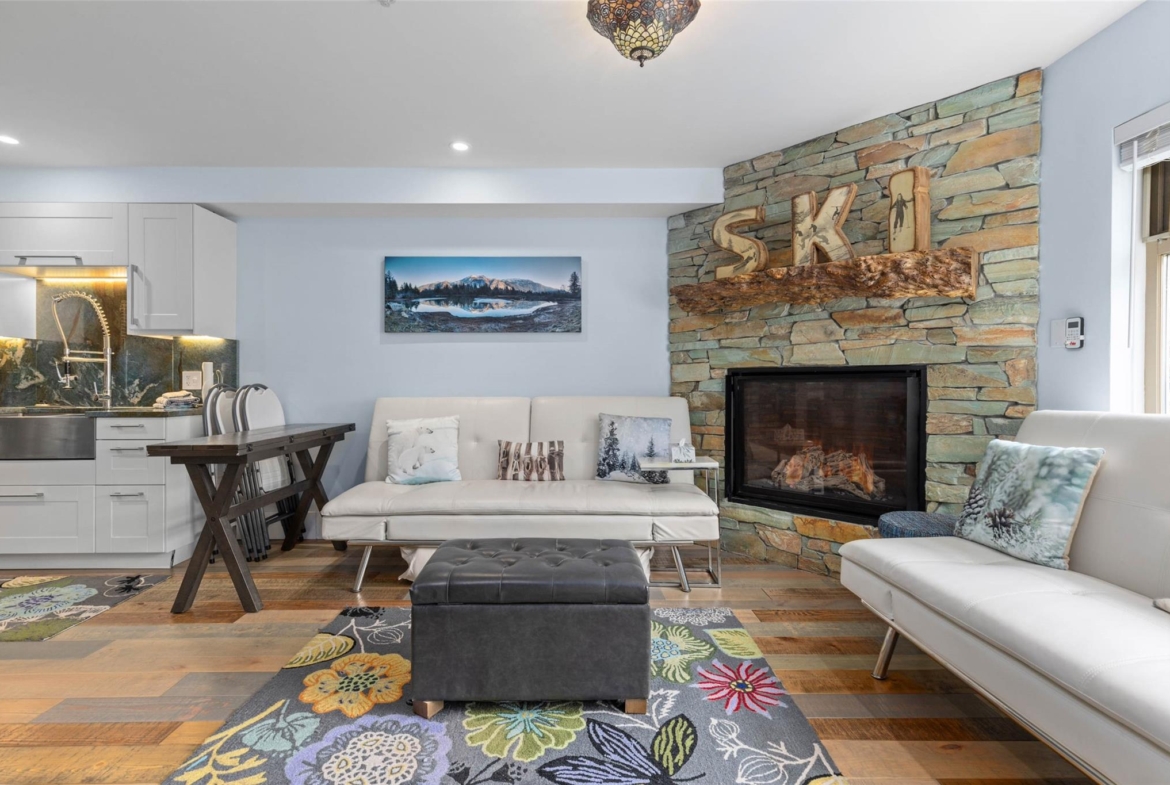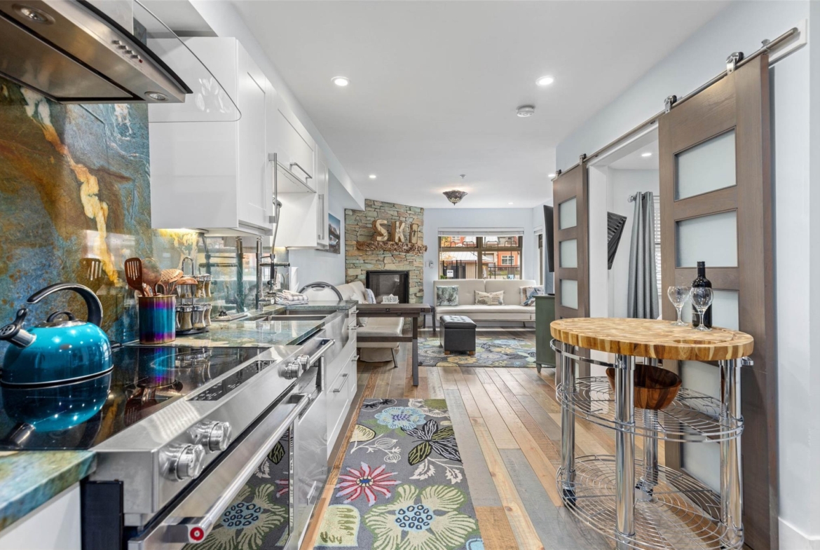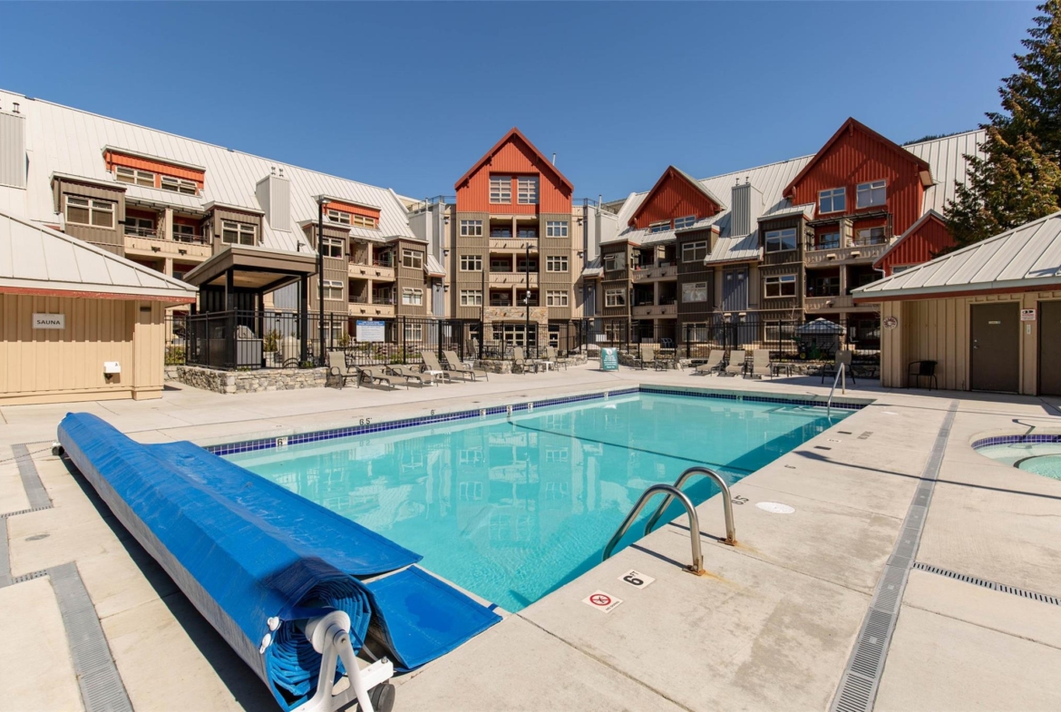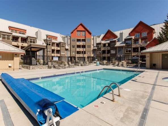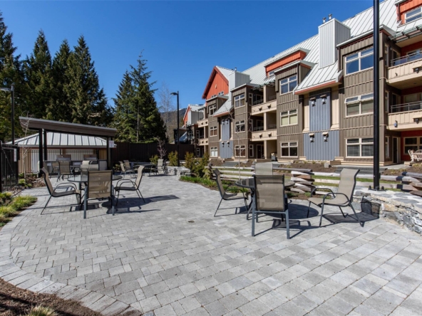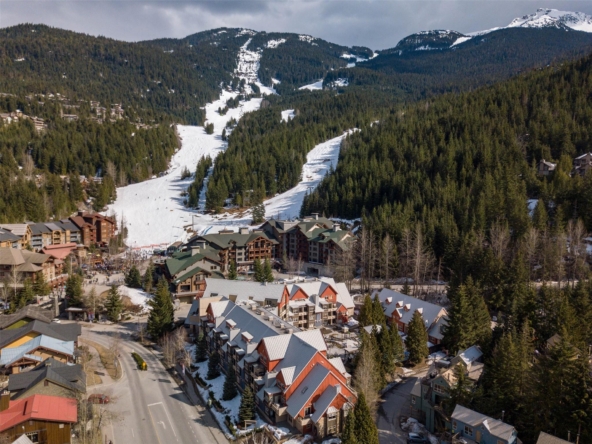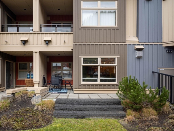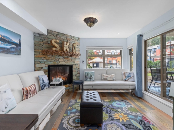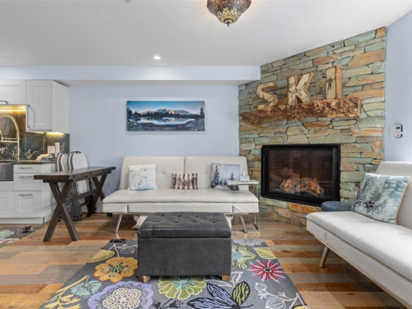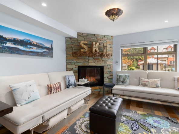 Discover this stunningly renovated Creekside retreat, just steps from the gondola. The gourmet kitchen is a showpiece with dramatic stone counters & premium appliances, complemented by a cozy stone fireplace in the living area with radiant in floor heating throughout. This ground-floor unit offers a private walk-out patio opening to a quiet courtyard, perfect for any season. After a day on the mountain, relax in the year-round outdoor pool and hot tub. With Phase 1 zoning permitting nightly rentals and unlimited owner use, this is a superb turn-key investment and the ultimate Whistler getaway.
