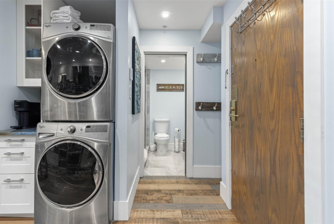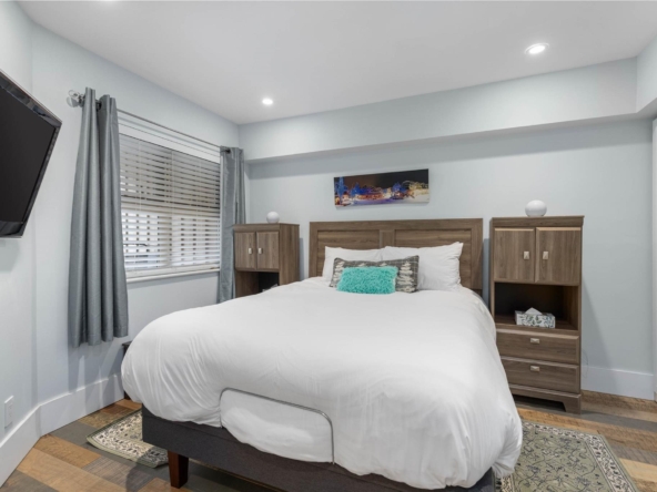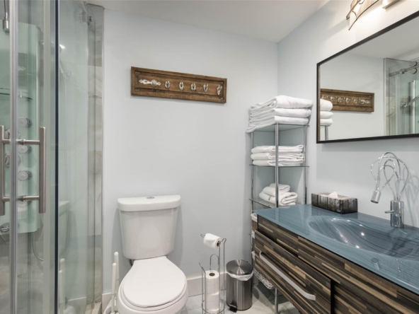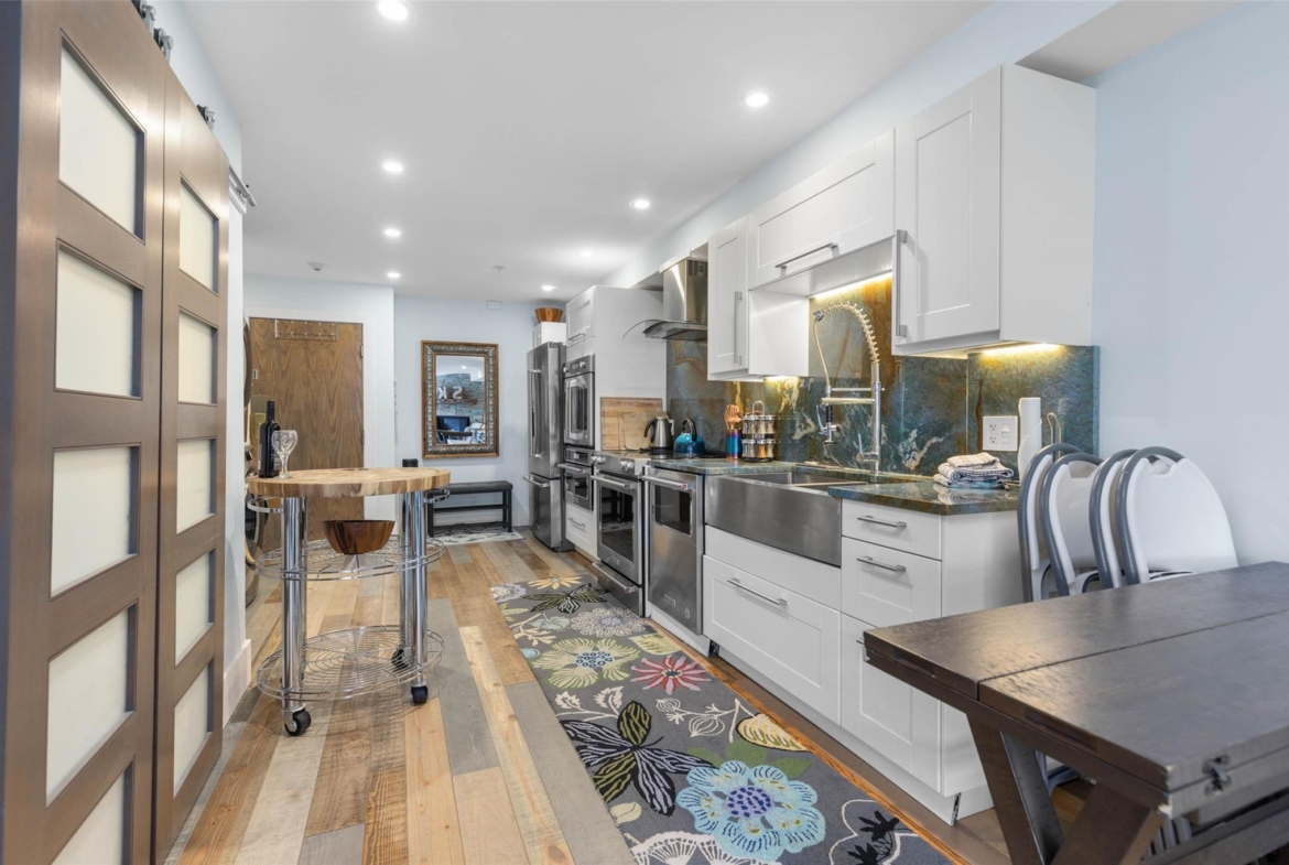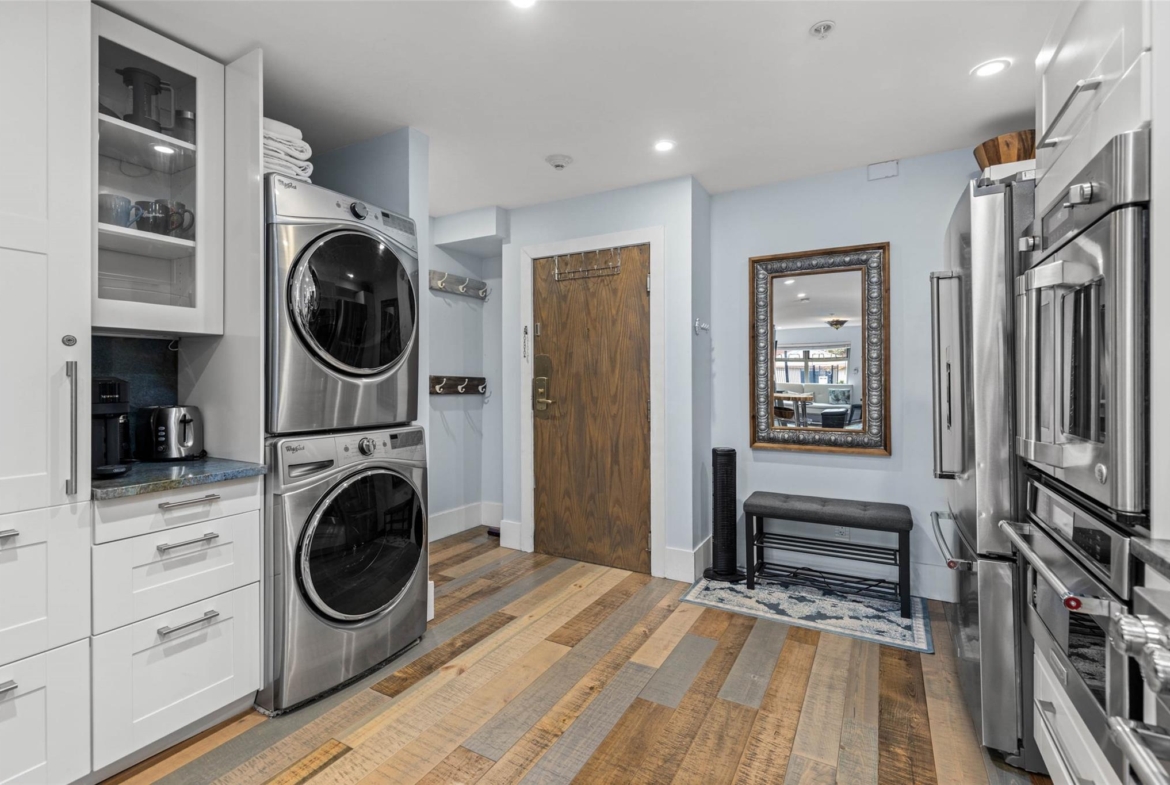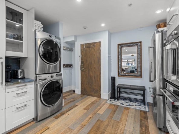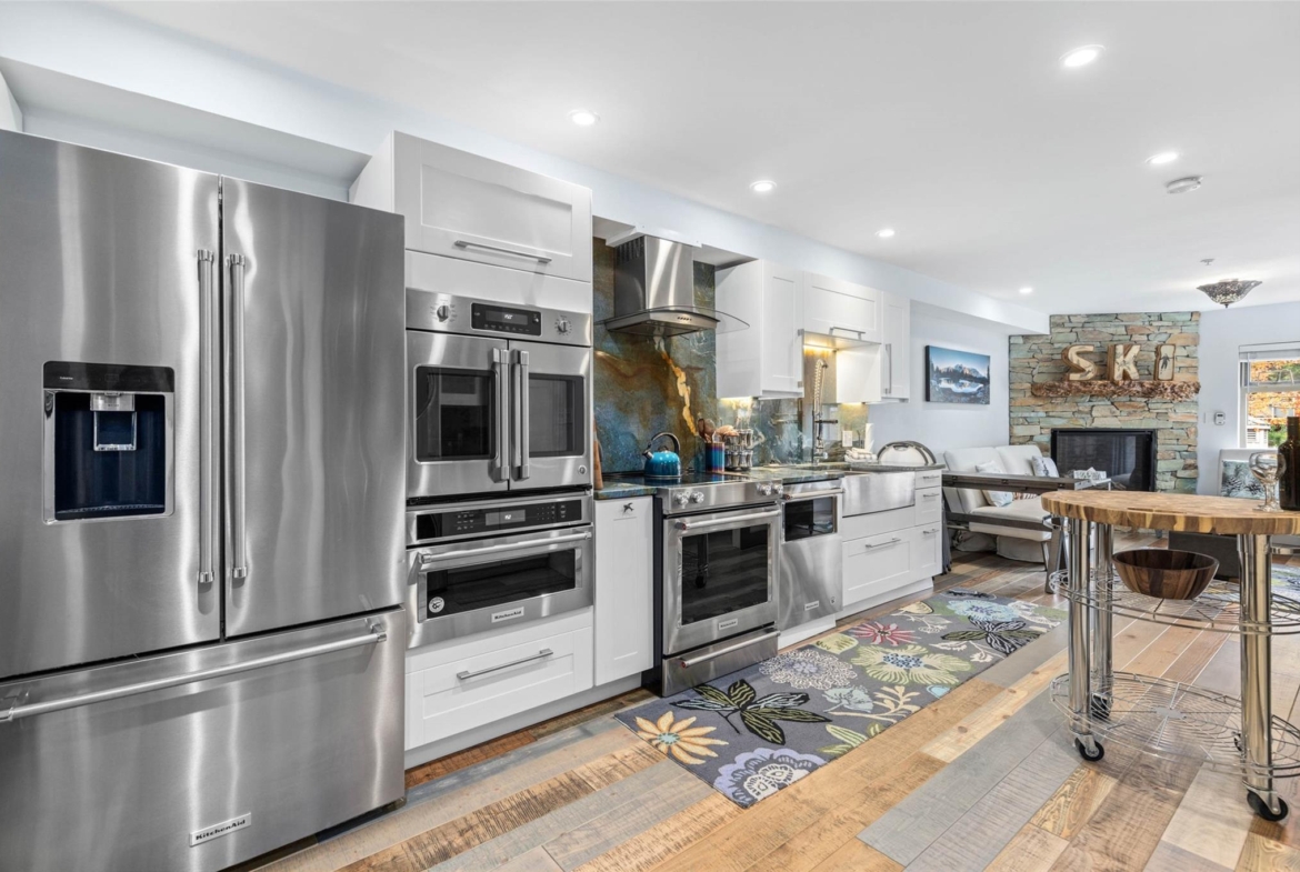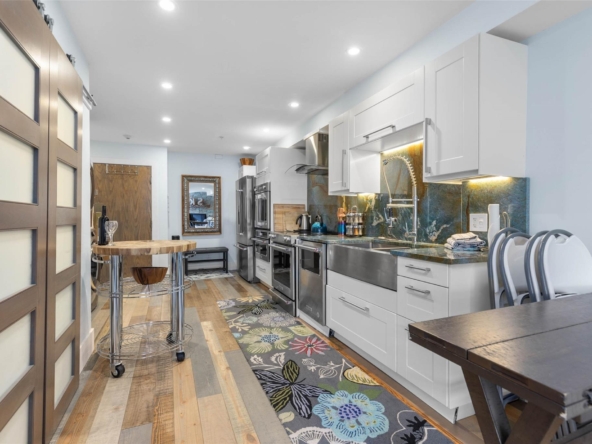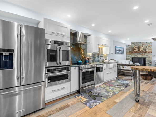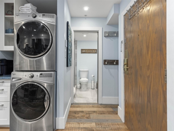 Discover this stunningly renovated Creekside retreat, just steps from the gondola. The gourmet kitchen is a showpiece with dramatic stone counters & premium appliances, complemented by a cozy stone fireplace in the living area with radiant in floor heating throughout. This ground-floor unit offers a private walk-out patio opening to a quiet courtyard, perfect for any season. After a day on the mountain, relax in the year-round outdoor pool and hot tub. With Phase 1 zoning permitting nightly rentals and unlimited owner use, this is a superb turn-key investment and the ultimate Whistler getaway.