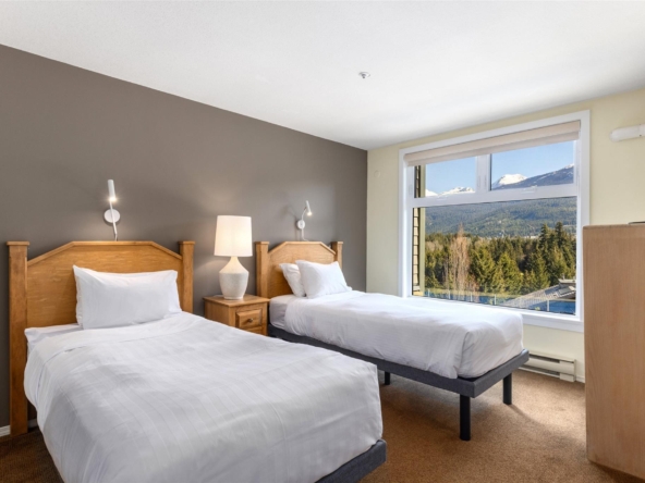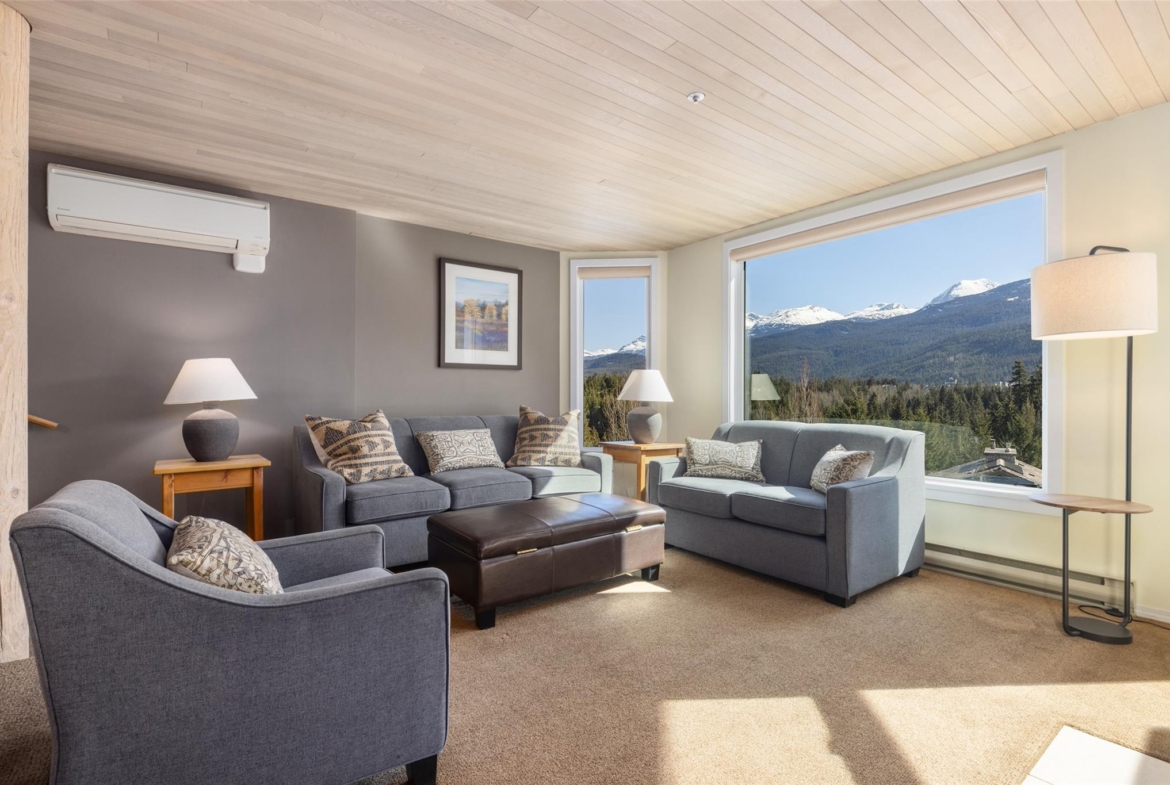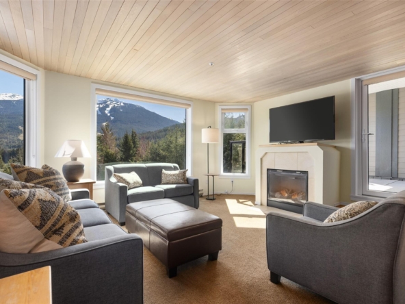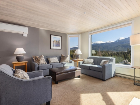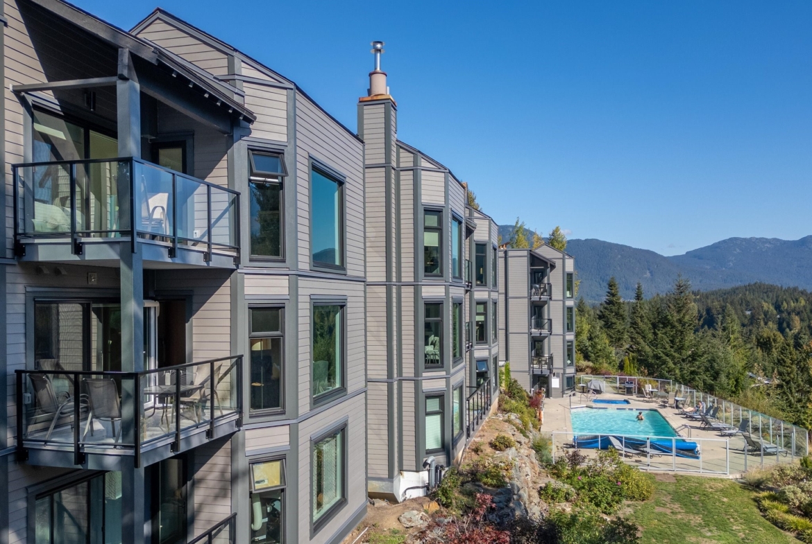 Blueberry Hill! Ironwood is a quiet building with special location overlooking the Whistler Golf Course and walking distance to Village restaurants & shops. The outdoor pool and hot tub area get plenty of sun and have panoramic views of both Whistler & Blackcomb! An extensive building upgrade was just completed with new siding, new windows and doors, new balconies and decks, and other updates to modernize the development. #109 is one of the larger 2 bedroom condos available in Whistler. It has beautiful ski area views and features a full kitchen, in-suite laundry, a gas fireplace, and air-conditioning in the living area and both bedrooms. Phase 1 zoning allows unlimited owner use and the ability to rent short-term via Airbnb or any rental company of your choice. Come have a look!