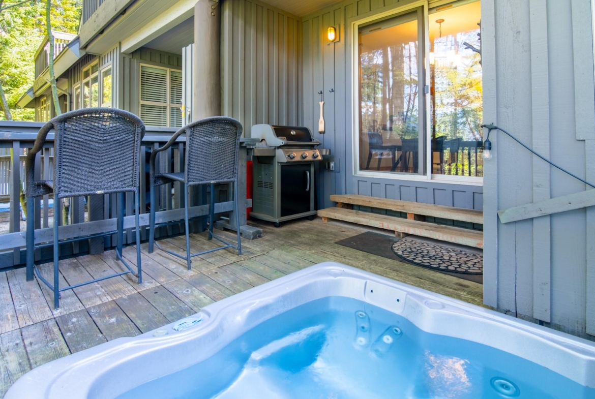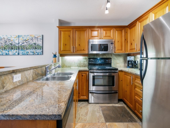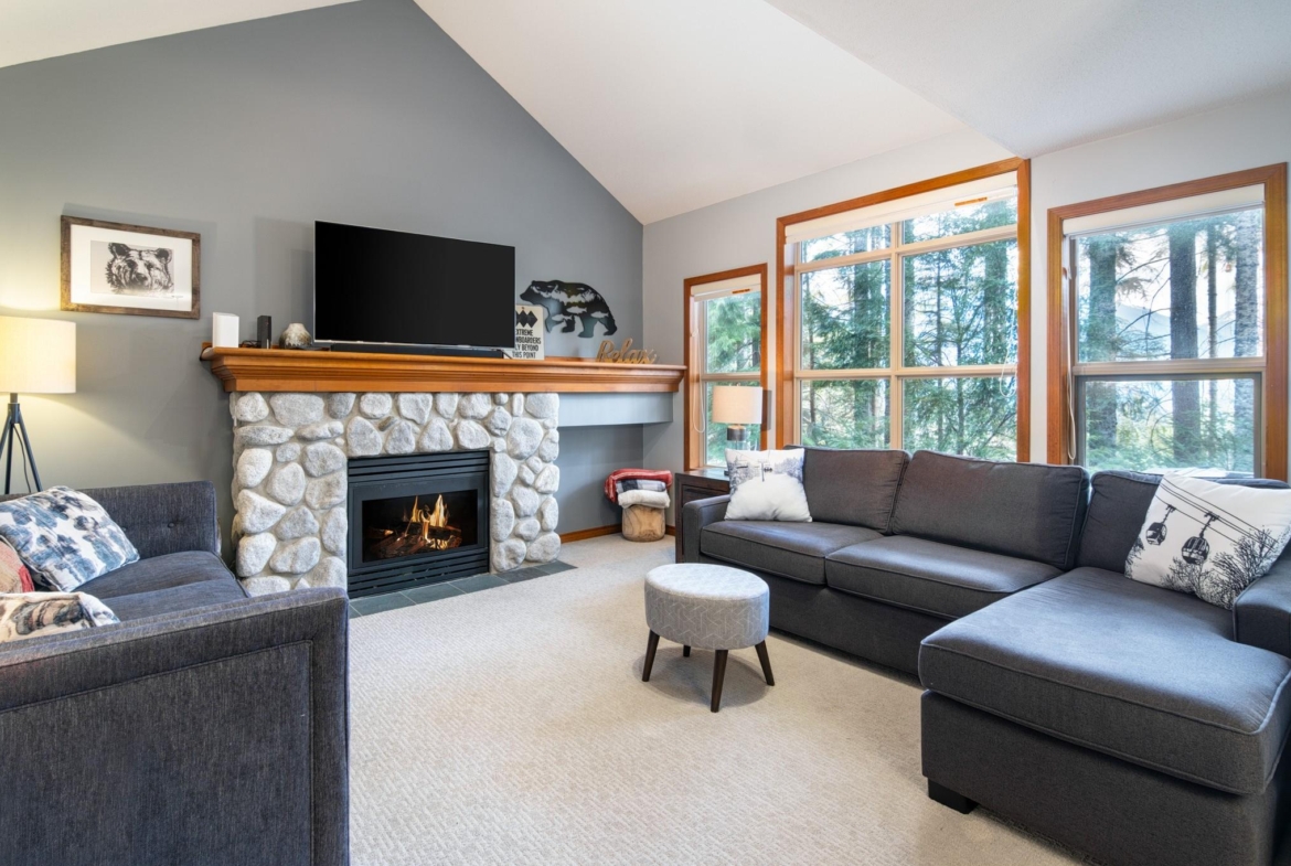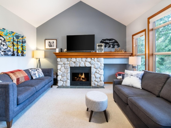 Ski-in/ski-out living on Blackcomb awaits in this 2-bedroom, 2-bathroom Arrowhead Point townhome, ideally located in the desirable Blackcomb Benchlands. Set within a quiet, forested setting, this spacious one-level floor plan offers excellent storage, secure underground parking, and a private deck. The open kitchen features granite countertops and stainless steel appliances, while the cozy fireplace creates the perfect après-ski atmosphere. Relax in your private outdoor hot tub after a day on the slopes or trails. Zoned for full-time living or nightly rentals, this home is sold fully furnished and move-in ready, with a free village shuttle and easy bike access to Lost Lake, beaches, and trails.