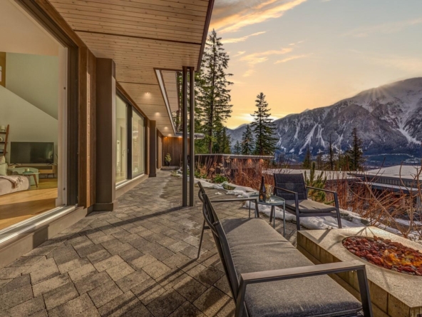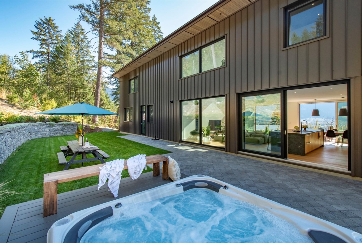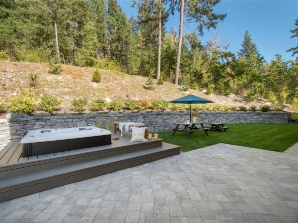 provides kids and pets a safe place to play, while the hot tub invites you to unwind, backing onto a natural rocky contour and forest for private relaxation. Mature irrigated landscaping adds to the serene setting. Ideal for family life, hosting with ease, meaningful connection, and endless mountain adventures.