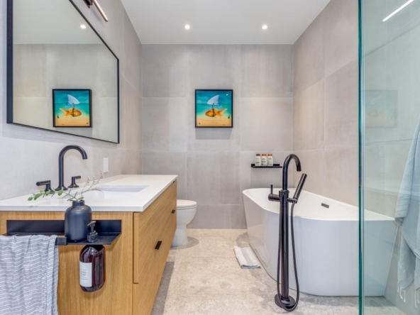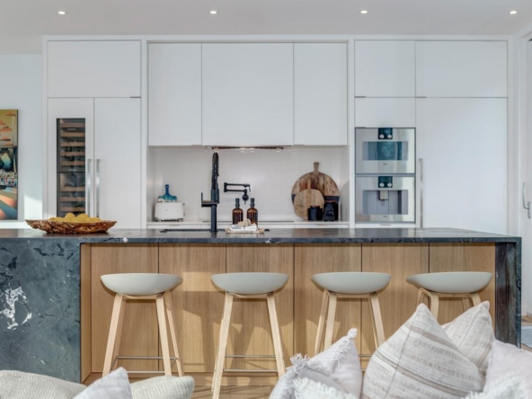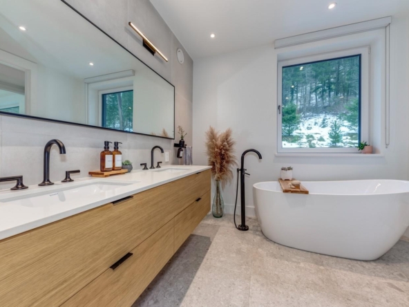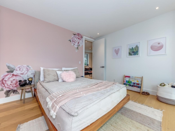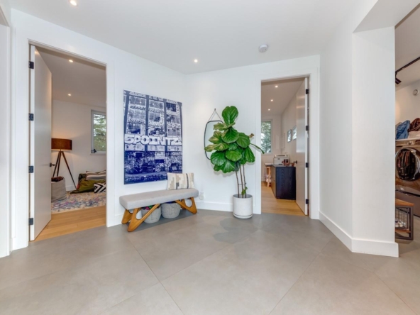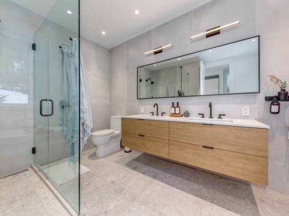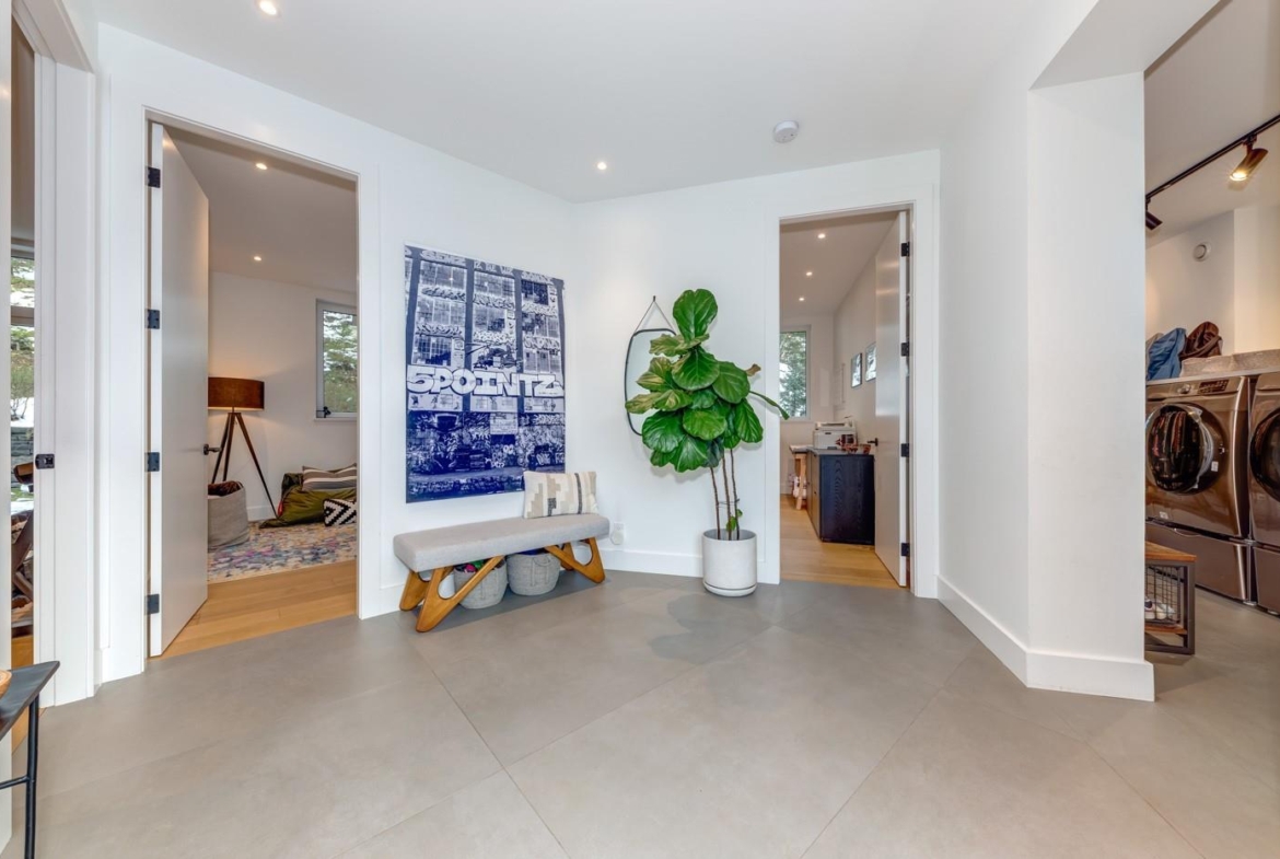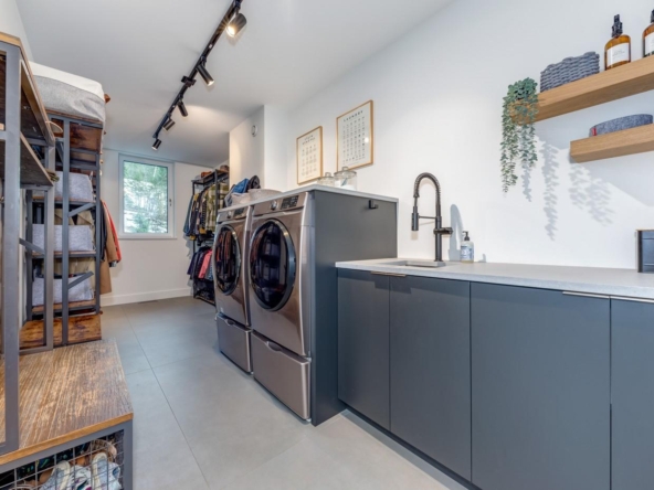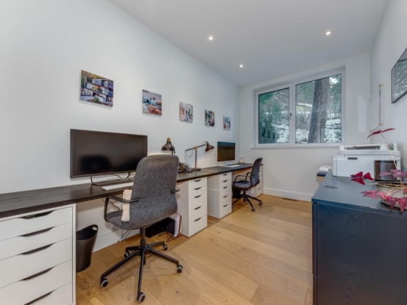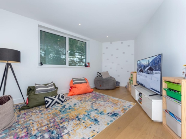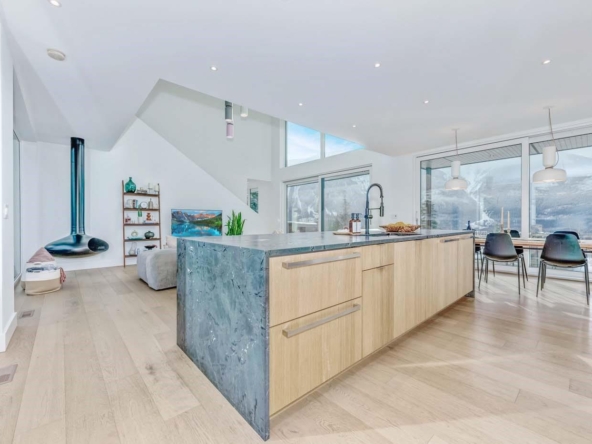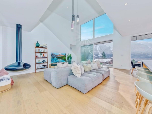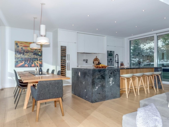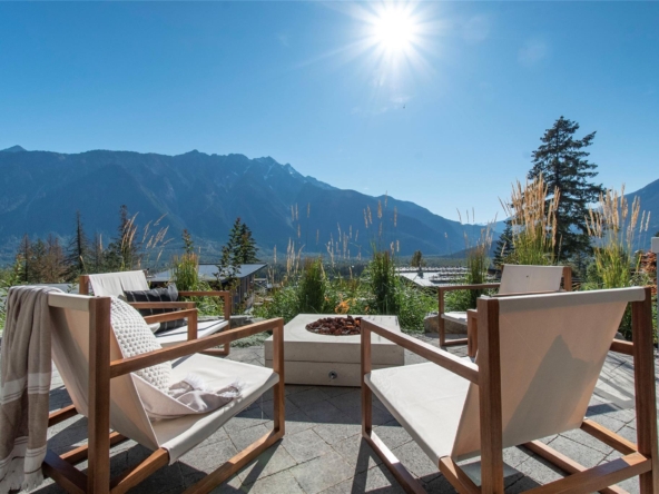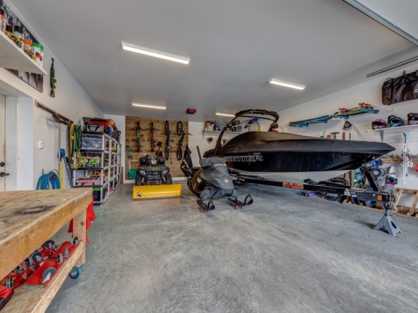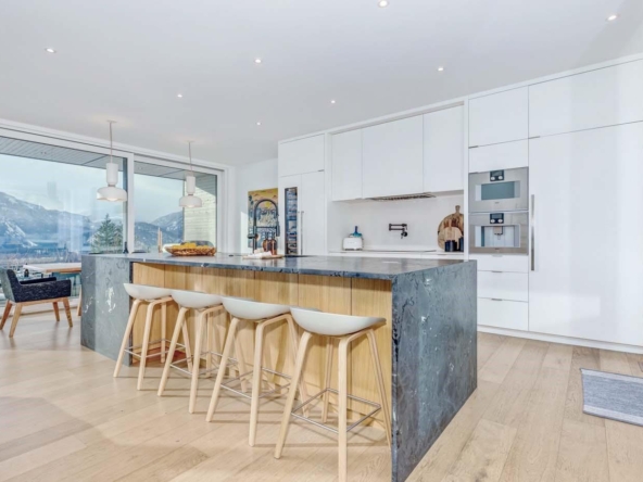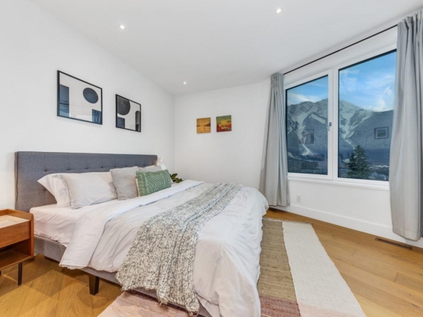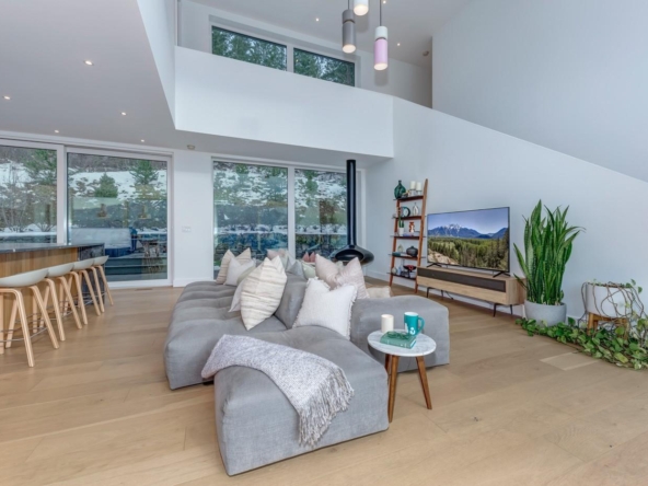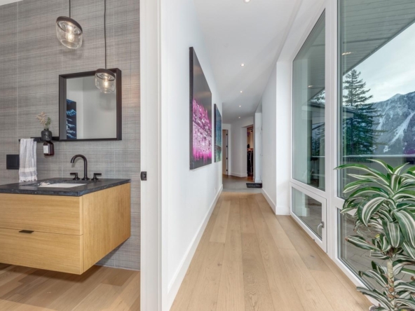 and the Pemberton Valley, this residence offers 4 bedrooms, 3.5 baths, a media room, kids’ lounge, gym, and home office. Every corner has been thoughtfully curated for effortless mountain living—full ICF construction to the roof (energy efficient, durable, soundproof), triple-pane Innotech windows and doors, plug-and-play functionality, and natural materials harmonize beautifully with the surrounding forest and mountain backdrop. Craftsmanship shines in custom millwork, white oak hardwood floors, and premium Gaggenau, Sub-Zero, and Thermador appliances. The kitchen is a chef’s dream, anchored by a striking granite waterfall countertop, built-in wine fridge, and expansive windows and sliding doors that fill the open-plan living area with abundant light beneath soaring vaulted ceilings. Cozy up by the Fire-Orb suspended ethanol fireplace on a snowy winter day, blending practicality with elegance and creating a true statement space for entertaining. Comfort meets performance with a backup generator and high-efficiency heat pump. The low maintenance, non-combustible exterior ensures lasting durability. The garage is an adventurer’s delight, providing an organized space and gear room for all your favorite mountain toys—grab and go in no time, because after all, there’s no time to waste when adventure awaits. Outdoors, the front BBQ and stone fireplace invite seamless