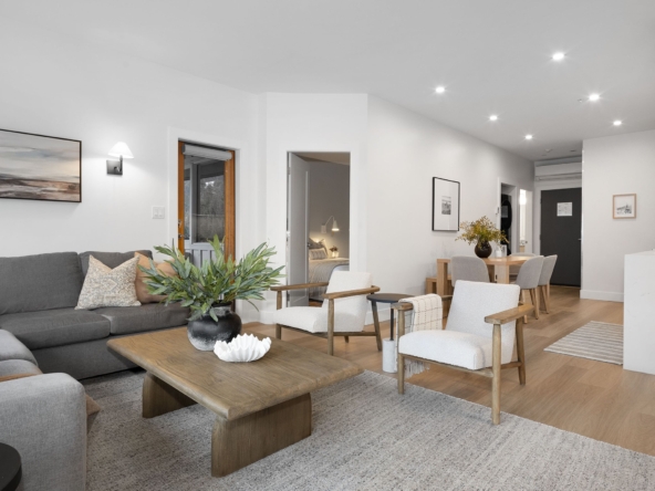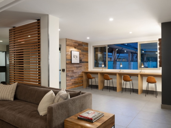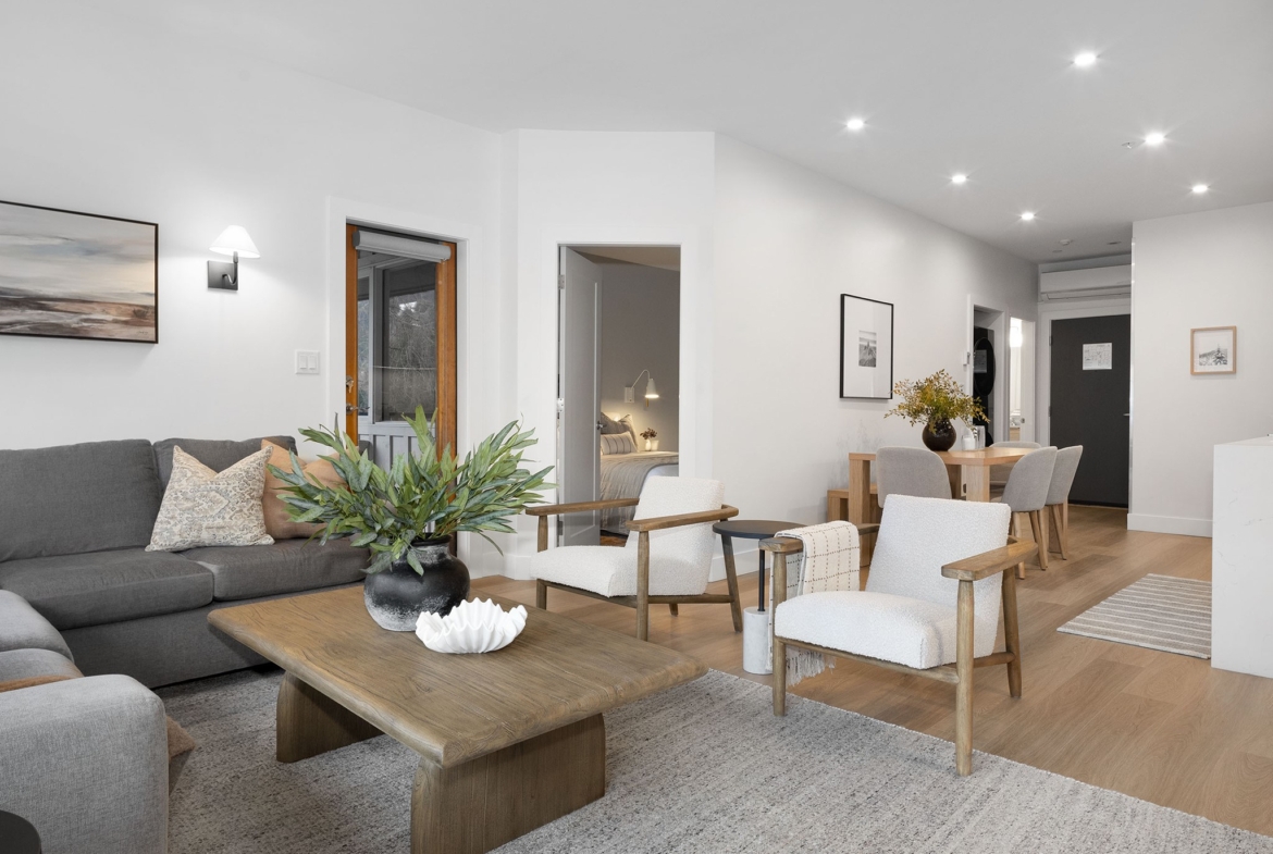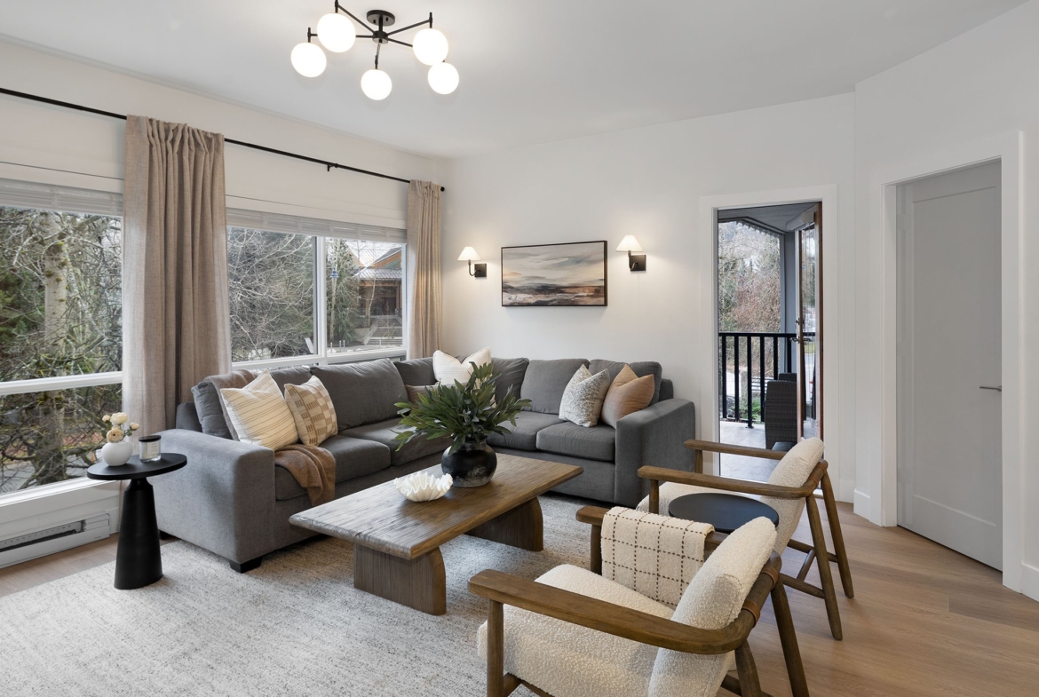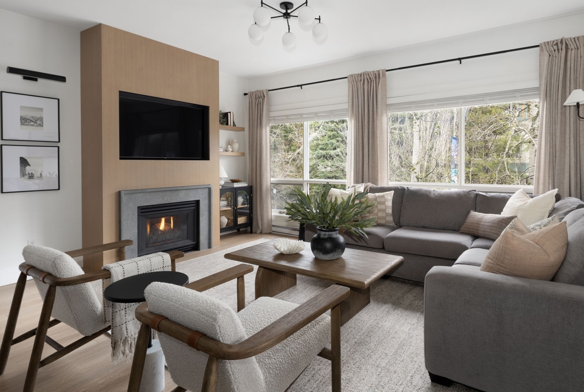Elevated by a custom renovation, this two-bedroom, two-bathroom residence showcases bespoke interior design, custom millwork, upgraded lighting, and a fully integrated kitchen with new appliances throughout, including in-suite laundry. Refined throughout, the home presents a cohesive design with quality finishes and a curated furniture package, offering a true turn-key opportunity. Two private balconies provide added outdoor living, while a warm, neutral palette enhances the sense of comfort and continuity. Owners have access to an exclusive lounge, outdoor pool and hot tub, secure underground parking, EV charging, and dedicated storage. Ideally located steps from Whistler Village’s Marketplace, with dining, cafés, and après nearby. Photography represents elevated finishing spec.