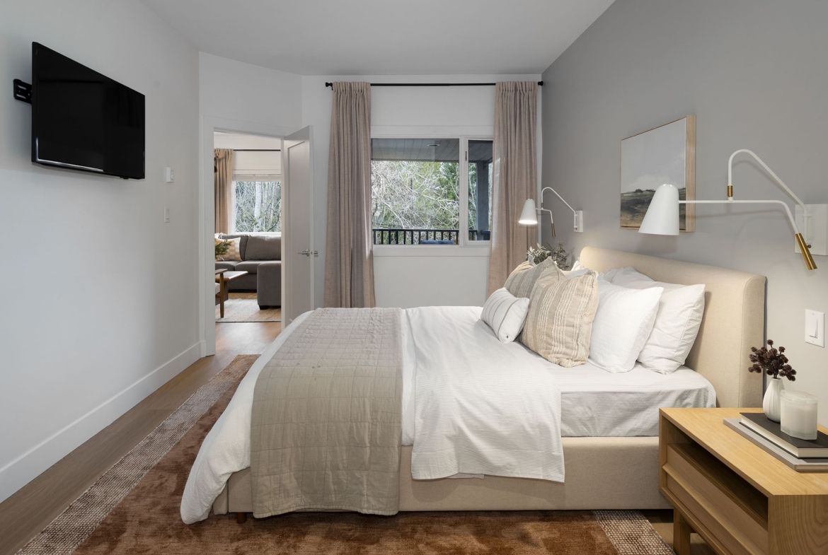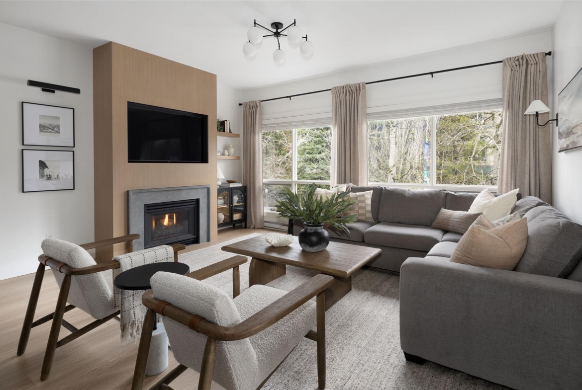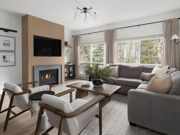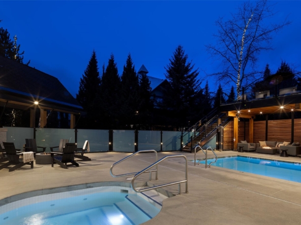 Elevated by a custom renovation, this two-bedroom, two-bathroom residence showcases bespoke interior design, custom millwork, upgraded lighting, and a fully integrated kitchen with new appliances throughout, including in-suite laundry. Two private balconies extend the living space, while a warm, understated palette and curated custom furniture package create a seamless turn-key offering. Owners enjoy access to an exclusive lounge, outdoor pool and hot tub, secure underground parking, EV charging, and dedicated storage. Just steps from Whistler Village’s Marketplace, with its dining, cafés, and après scene, this is effortless living in the heart of the village.