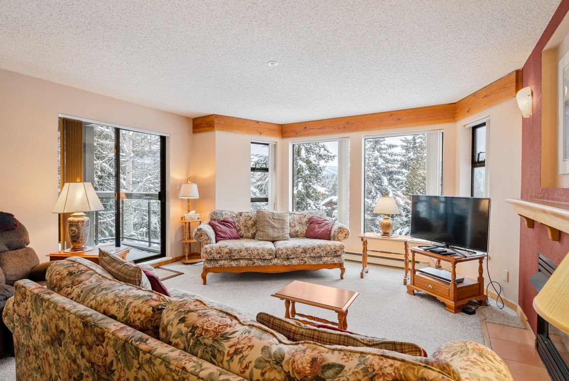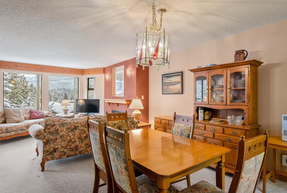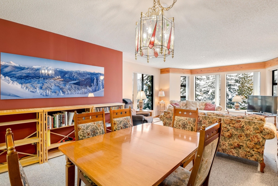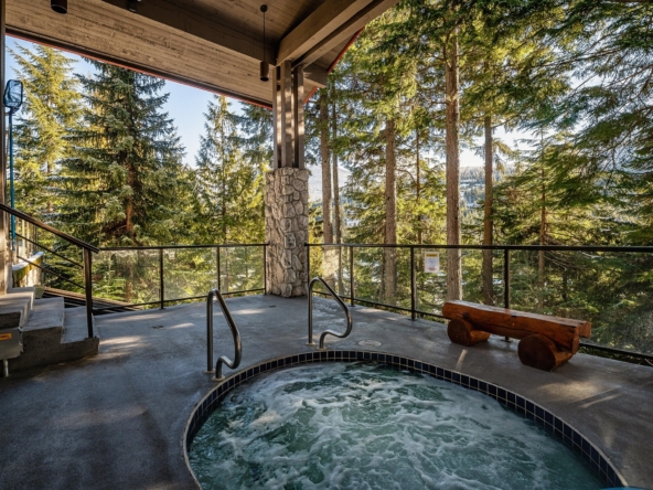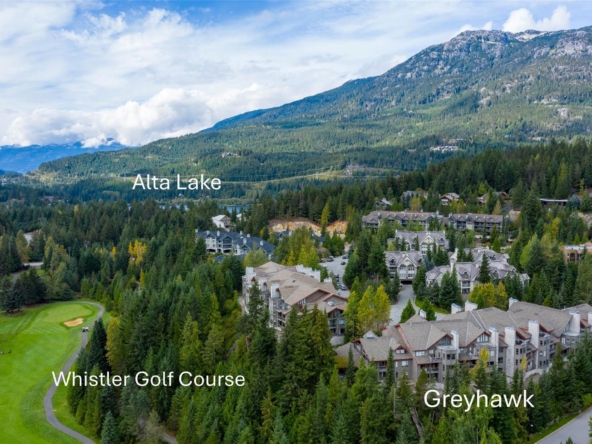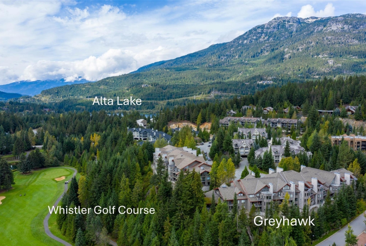 Ideally positioned within the desirable Blueberry Hill neighborhood, presents an exceptional location with convenient access to Whistler Village via the Valley Trail along the Whistler Golf Course. The property boasts stunning mountain views and 2 decks to enjoy the views and lots of space for outdoor dining. This one level end unit, encompassing two spacious bedrooms and two well appointed bathrooms. The thoughtfully designed floor plan fosters an open and airy ambiance, creating an inviting atmosphere suitable for both relaxation and entertaining. The property permits nightly rentals, offering an excellent investment opportunity or a personal year-round retreat. Greyhawk amenities include secured underground parking, a communal hot tub, sauna, and a private storage locker. No GST.