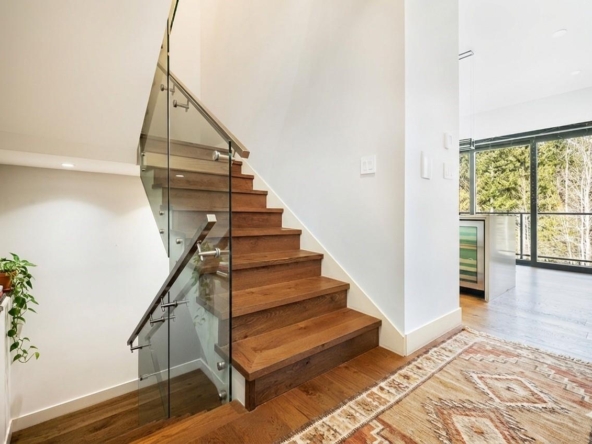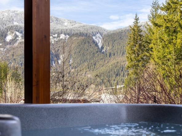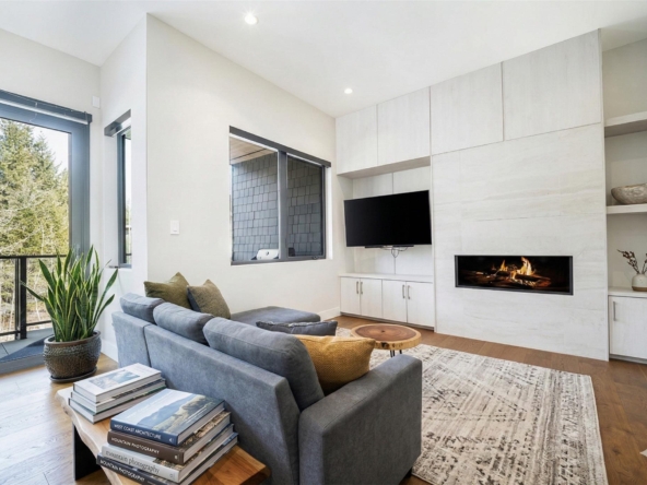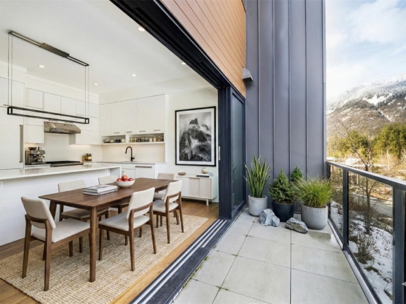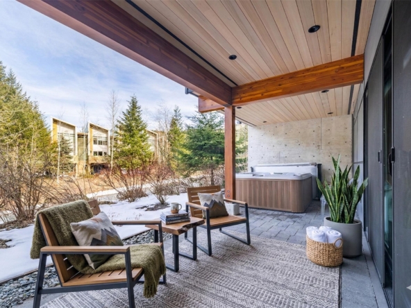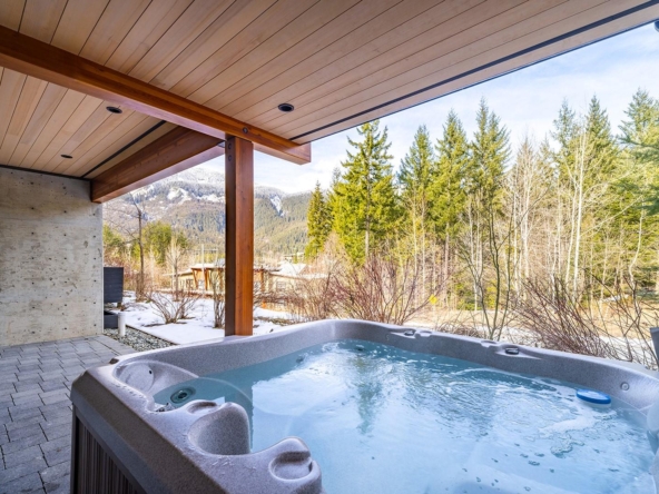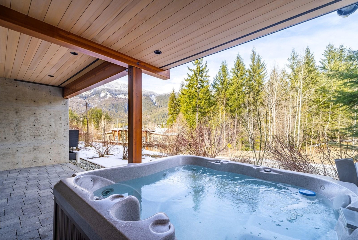 Beautiful contemporary townhouse in the sought-after Basalt development at Cheakamus Crossing. This 4-bedroom/Flex/Media room, 3.5 bathroom home offers radiant in-floor heating throughout, wide plank oak flooring, high ceilings and abundant natural light. The open concept living space features a gourmet kitchen with Sub-Zero fridge, Wolf range, wine fridge and quartz waterfall countertops, flowing into a cozy living area with gas fireplace. Enjoy mountain living with a private hot tub deck, spa-inspired primary suite with a walk-in closet and ensuite, plus a large lower flex/media room or bedroom with a steam shower. Double car garage with built-in storage. Steps to trails and minutes to Whistler Village.