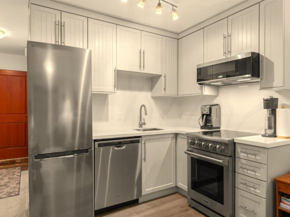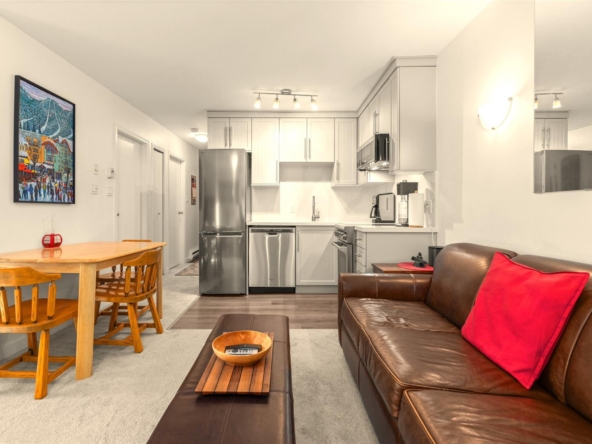Centrally located 2-bedroom, top-floor end unit townhouse in Alta Vista, ideally situated between Whistler Village and Creekside ski lifts. Just a short walk to Lakeside Park / Alta Lake and steps from the Valley Trail, recreation is truly at your doorstop – whether you’re biking, kayaking, paddleboarding, or simply relaxing outdoors. This bright home features vaulted ceilings, an open layout, and a large southwest-facing balcony with mountain views. The home has seen significant updates, including a renovated kitchen with stainless steel appliances, renovated bathroom, new carpet and flooring, and has been fully repainted with new baseboards throughout. Additional features include in-suite laundry, a gas fireplace, separate secured storage with built-ins for ski and gear storage, and 2 parking stalls. An ideal full-time residence or weekend retreat in one of Whistler’s most desirable neighborhoods.