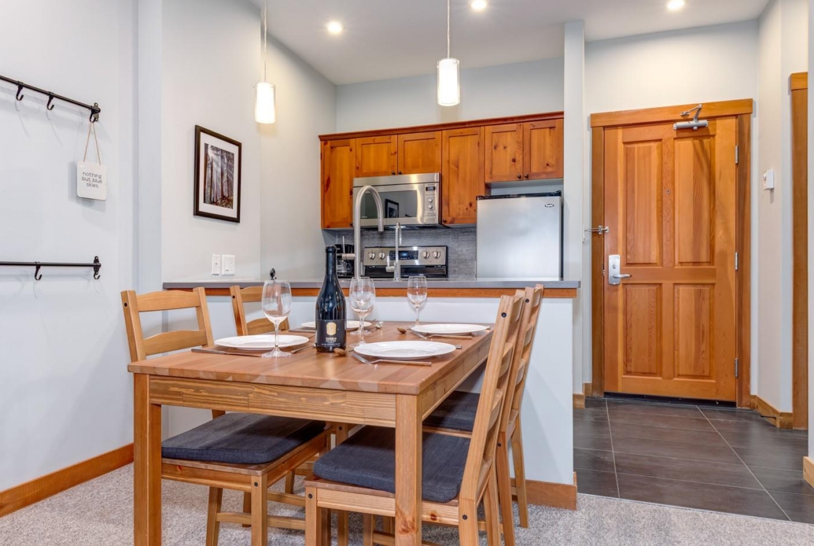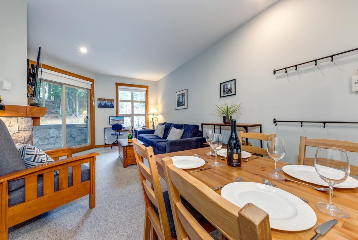 Experience the ultimate Whistler lifestyle at Lost Lake Lodge, a premier Blackcomb Benchlands address. This 570 sq. ft., 1-bedroom, 1-bathroom ground-level condo offers privacy and easy access, overlooking peaceful forested grounds. Completely updated unit featuring upgrades to the kitchen and bathroom, appliances (including in-suite washer and dryer), lighting, carpet and tile. Relax by the cozy gas fireplace in the open living area or on your private balcony after a day of adventure. Building amenities include a year-round heated outdoor pool, hot tub, exercise room, underground parking, complimentary village shuttle, and on-site professional management. Quiet location, yet steps from Lost Lake with year-round trail network and ski out option to your door. With nightly rental privileges, unlimited personal use, and no GST, this condo is ideal as a residence, weekend getaway, or investment property.