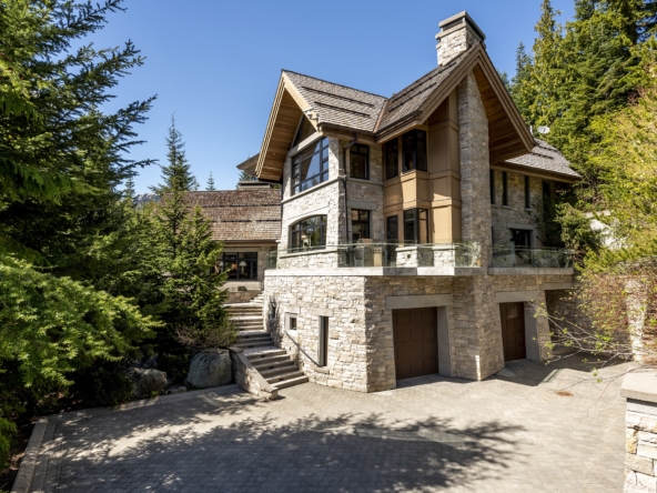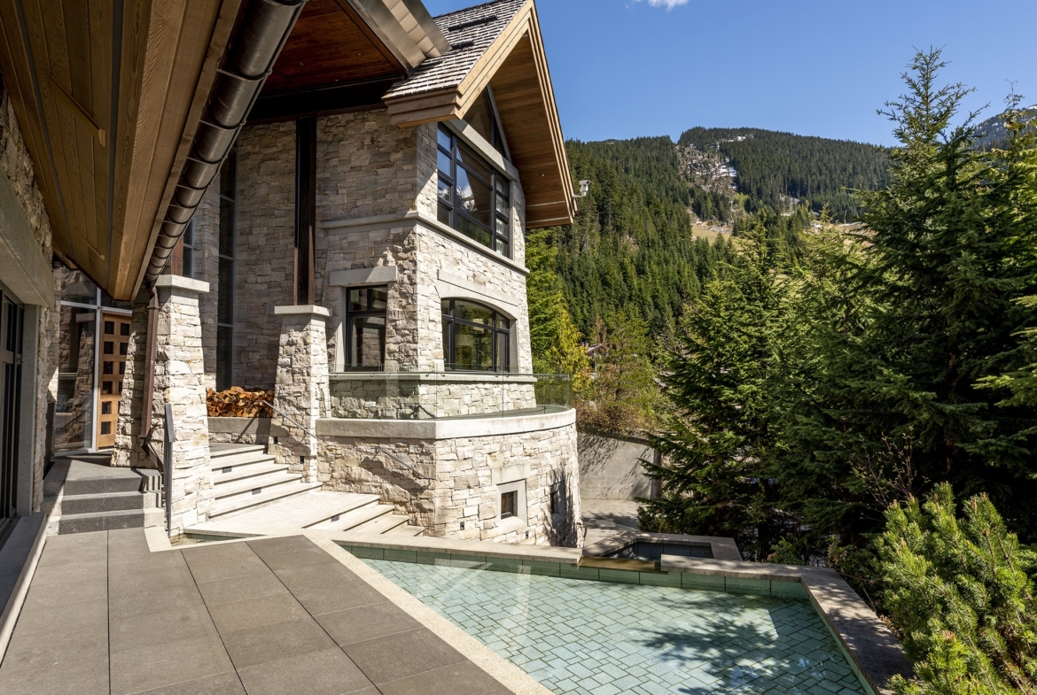 Tucked into the upper slopes of Whistler Mountain in exclusive Taluswood, this custom-built chalet pairs ski-in/ski-out access on the Dave Murray Downhill with inspired design and luxurious comfort. Constructed from concrete, steel, and timber, the five-bedroom home showcases a grand open-concept great room, gourmet kitchen with prep space, a media and games lounge, and a temperature-controlled wine cellar. Outside, feature infinity-edge pools and a hot tub overlook Whistler Peak and the Olympic rings, offering total privacy. Secure, gated access and unparalleled seclusion make this a true mountaintop retreat.