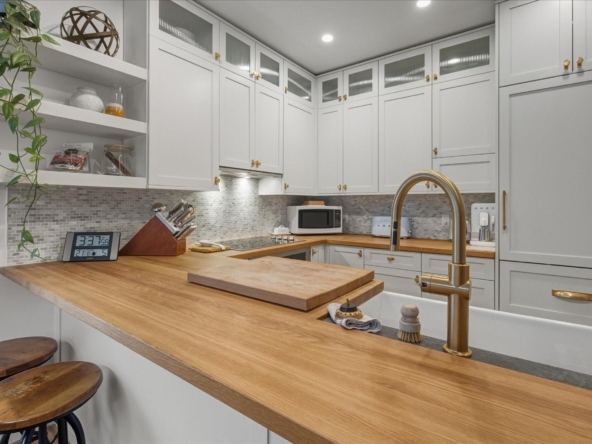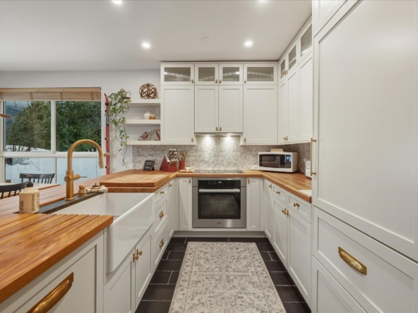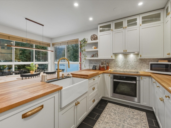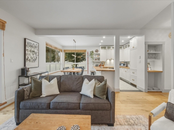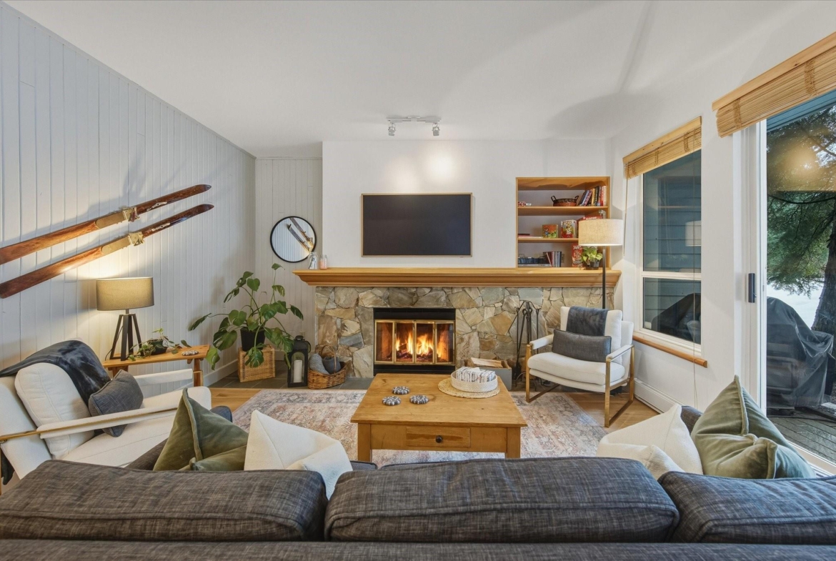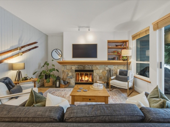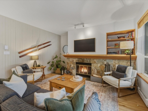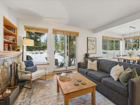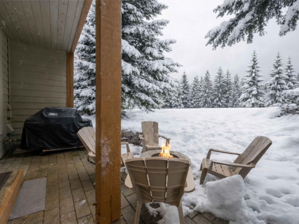Located in the highly sought-after Alpine Greens complex in the Benchlands neighbourhood, this beautifully updated 2-bedroom, 2-bath residence enjoys front-row views over the first tee on the Fairmont Chateau Golf Course and a peaceful, tree-lined outlook. Warm, inviting interiors blend classic mountain character with stylish modern updates, featuring an open-plan living area, a cozy wood-burning fireplace, wide-plank hardwood flooring, and a thoughtfully renovated kitchen with shaker cabinetry, butcher-block counters, brass accents, and quality appliances by Smeg, Miele, and LG. The open living and dining areas extend to a covered patio with a private ground-level firepit and BBQ, enhancing effortless indoor-outdoor living in every season, from morning coffees surrounded by nature to summer dinners and winter fireside gatherings. Two well appointed bedrooms, along with a sofa bed, can accommodate up to 6 guests and include a serene primary suite with an ensuite. Ski home in the winter months from the trail across the road. Steps to the ski lifts, biking and hiking trails, the Valley Trail, crosscountry