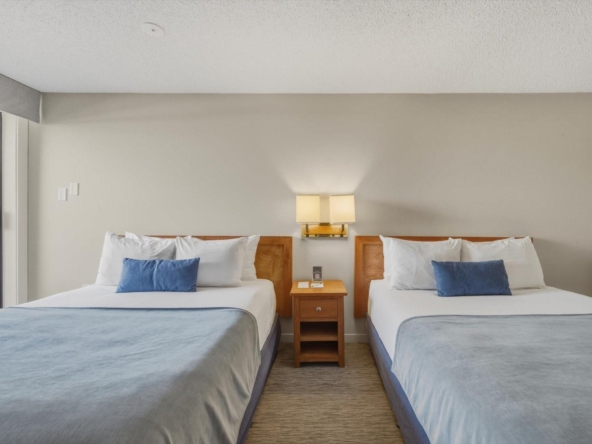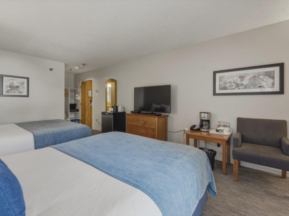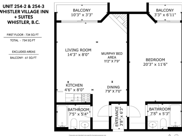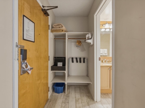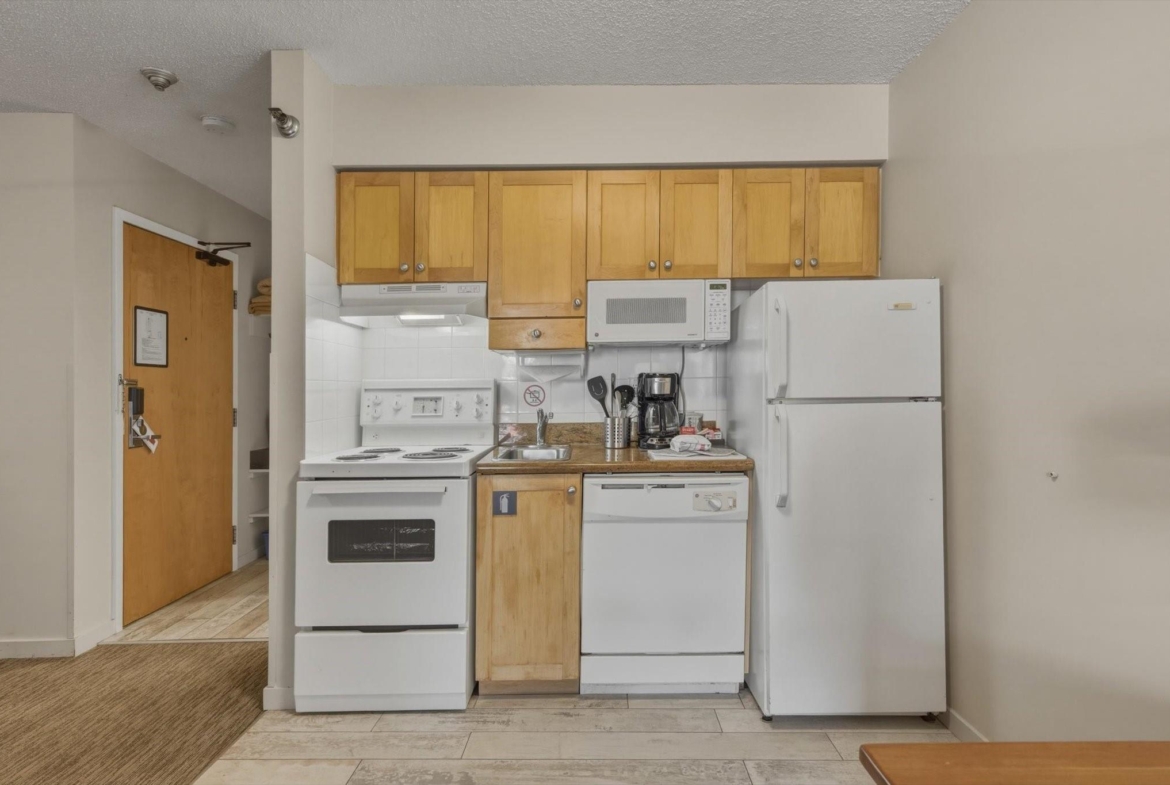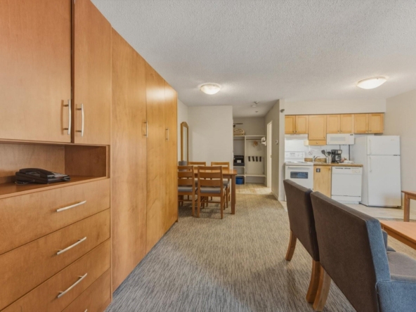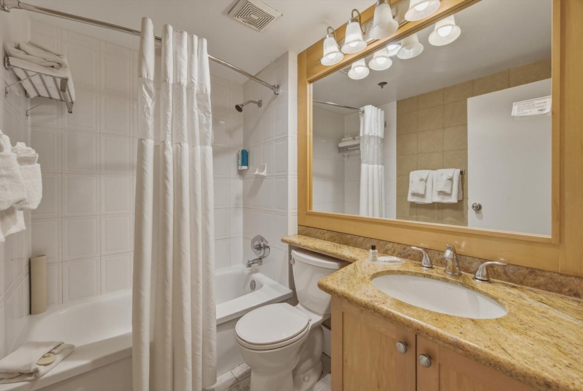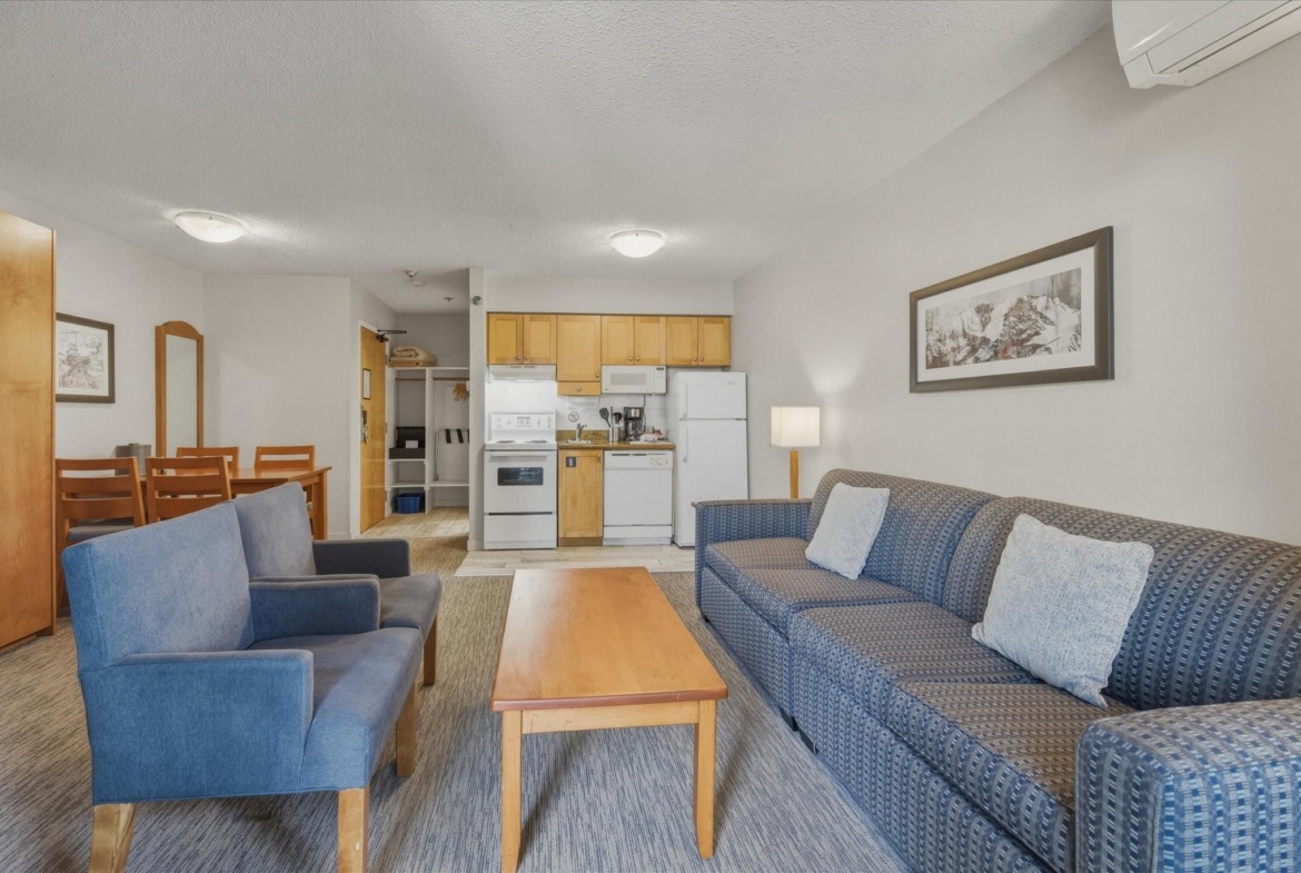 Welcome to Units 254-2 and 254-3 at the Whistler Village Inn and Suites. This 734 sq. ft. lock-off suite offers a practical blend of personal use and revenue generation, located right in the center of Whistler Village. Park in the secure underground lot and enjoy a short walk to the ski lifts, restaurants, and local amenities. The floor plan maximizes rental flexibility. Side A functions as a traditional hotel room featuring two Queen beds, a full bathroom, and a private balcony. The adjoining Side B offers the comforts of a suite with a fully equipped kitchen, dining area, fireplace, Murphy bed, pull-out couch, a second full bathroom, and its own private balcony. Building amenities include a heated pool and hot tub. Zoned Phase 2, the covenant allows for up to 56 days of personal owner use each year. This is a highly hands-off investment: the professional onsite management team handles all nightly rentals, and your Tourism Whistler (TW) fees are paid directly out of the gross revenue. Fully furnished and turnkey.