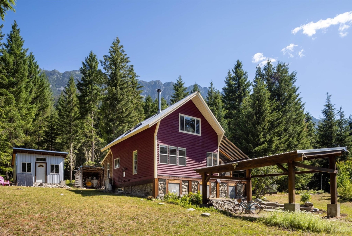 Tucked in the trees near Blackwater and Birkenhead Lakes, this private off-grid cabin offers a peaceful retreat just 40 minutes from Pemberton. Thoughtfully updated with new windows and a new solar system, the cozy cabin features an open loft bedroom, airtight wood stove, propane cooktop, and enzyme composting toilet. A spring-fed water source with registered water license supplies the home, with an outdoor shower for seasonal use. Enjoy the screened porch beside the water feature, a firepit for evening gatherings, and a landscaped yard with blueberries, raspberries, blackcurrants, and huckleberries. Includes a solar-powered outbuilding, shed, and carport—surrounded by year-round recreation and complete privacy.