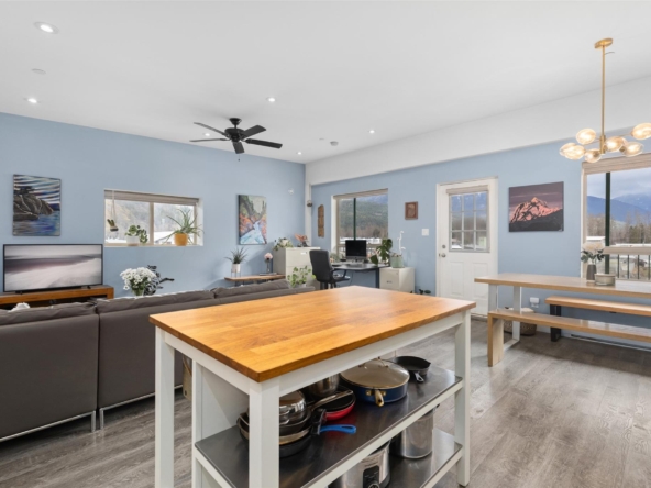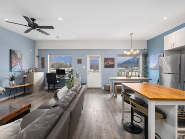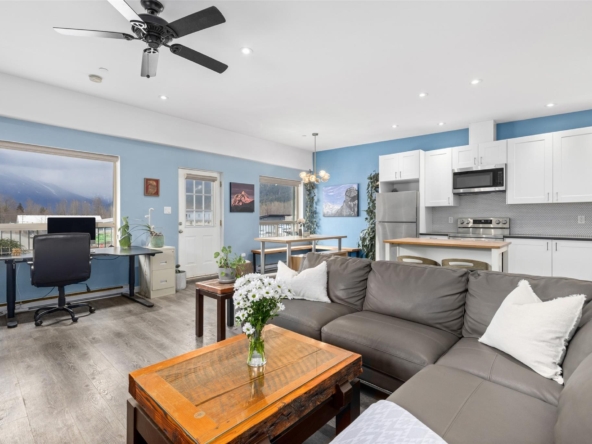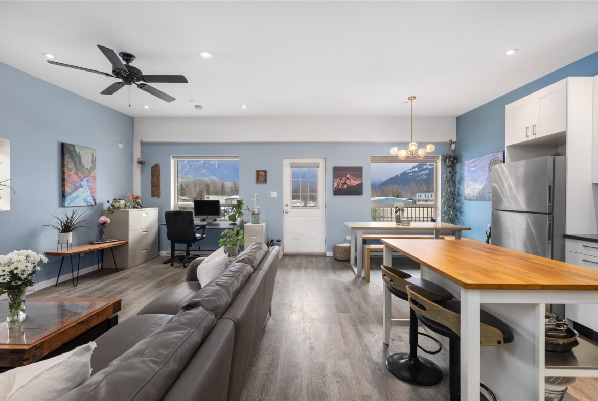 Rare mixed-use opportunity in Pemberton’s Industrial Park. This bright end-unit features commercial/shop space on the lower level and a well-maintained 1 bedroom, 1 bathroom residential suite above. The approximately 770 sq. ft. upper-level living space offers an open layout, large bedroom, spacious utility/laundry room, and plenty of natural light. On the main level, the commercial space includes a bright open work area, washroom, generous ceiling height, a 16-foot overhead garage door, and 3-phase power. Flexible M-1 zoning supports a range of industrial and commercial uses, with residential living permitted above.
