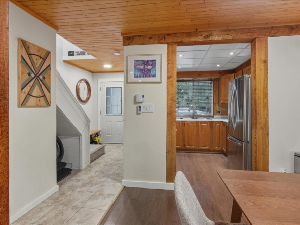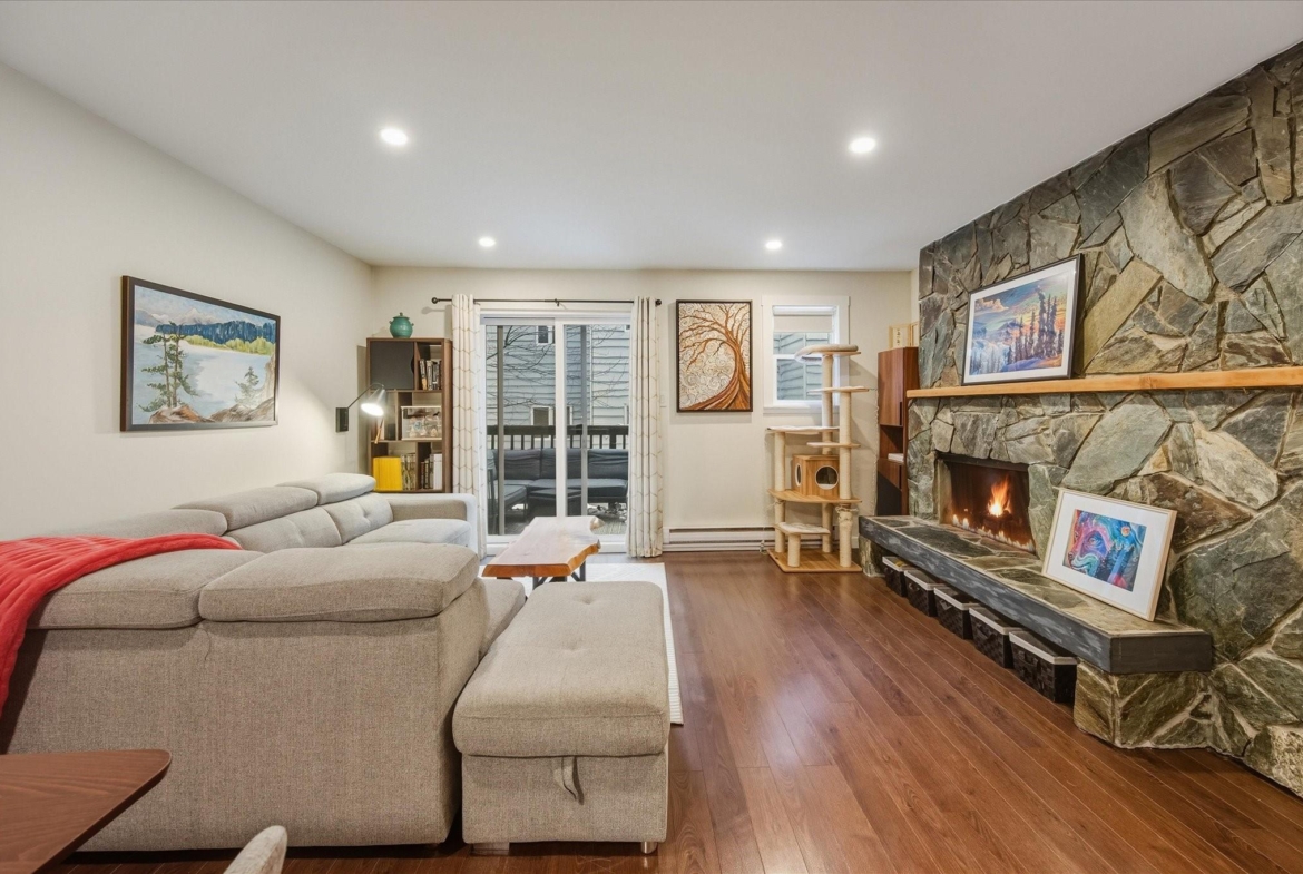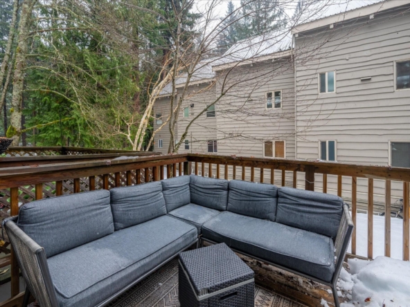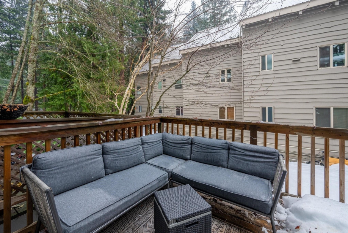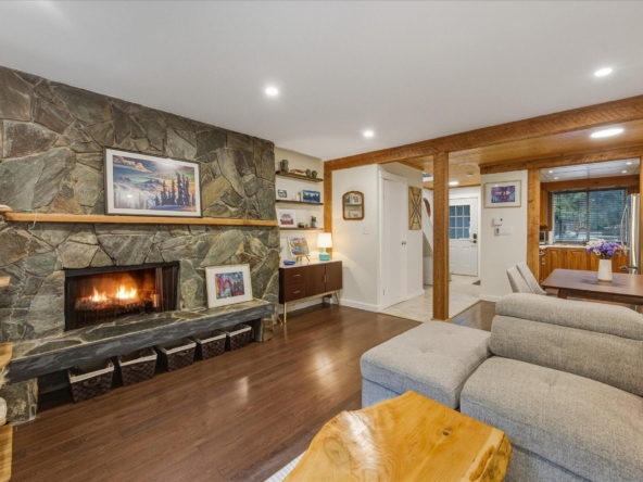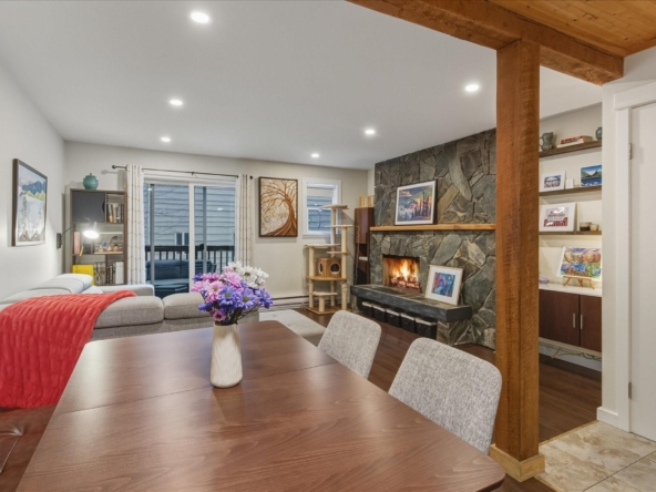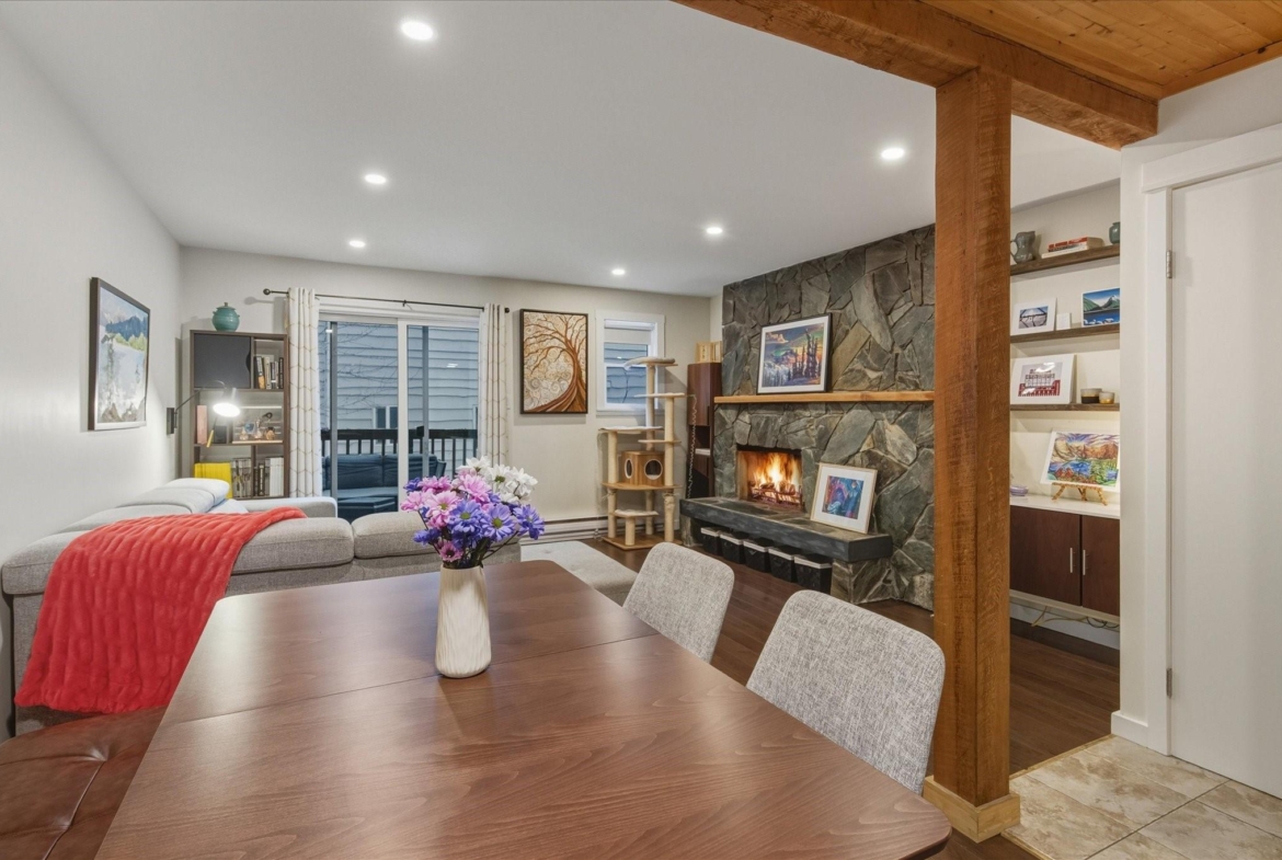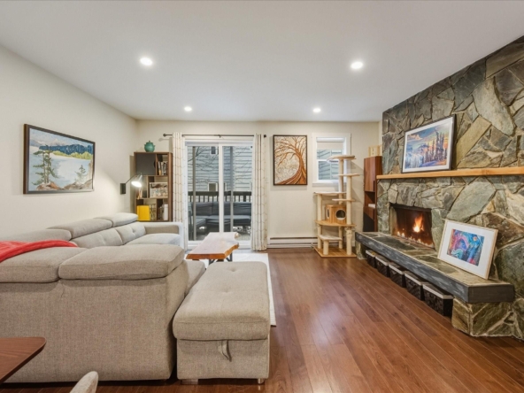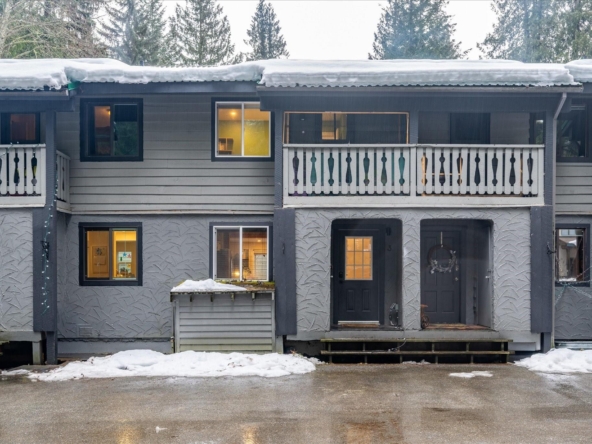 Welcome to the Sitzmark complex in Alpine Meadows, where this charming 2-bedroom townhome offers the perfect opportunity to plant roots in Whistler. Spanning 975 sq. ft., this home features a kitchen with stainless steel appliances and a convenient powder room on the main floor. Upstairs, you’ll find two bedrooms and a renovated semi-ensuite bathroom with radiant heated floors and motion-sensor lighting. The living area is defined by a classic stone hearth that adds timeless mountain character, while a brand-new sliding glass door provides access to an 88 sq. ft. deck with space for your BBQ. A second private deck is located off the upper bedroom, providing a quiet outdoor escape. Efficiency is key with upgraded vinyl windows, a newer W/D, and a hot water tank from 2021. Storage is a breeze with an approximately 450 sq. ft. crawl space (4’10″ high) for all your gear, plus a dedicated 3-bike shed. Located across the road from Whistler Secondary and seconds from the Valley Trail, you are steps from the Alpine Cafe and Meadow Park Rec Centre. With a bus stop just 50m away, this well-maintained home offers the perfect blend of local convenience and mountain lifestyle.