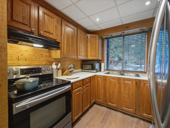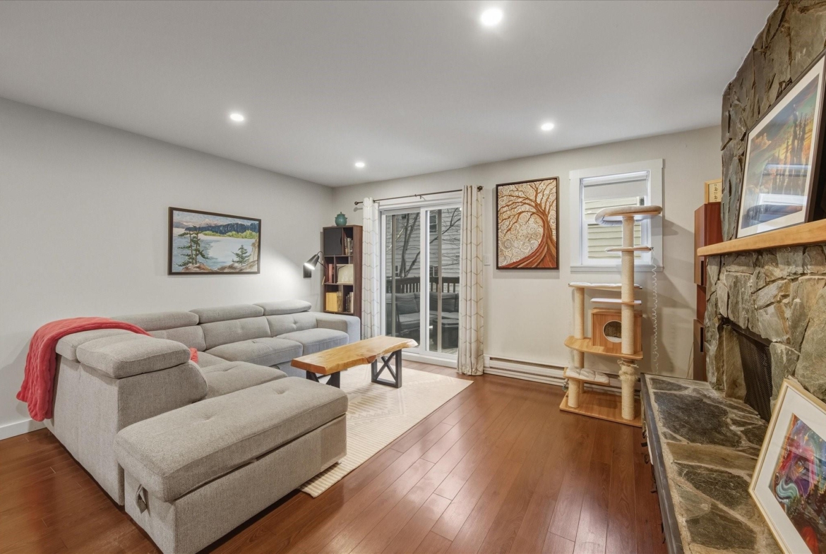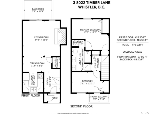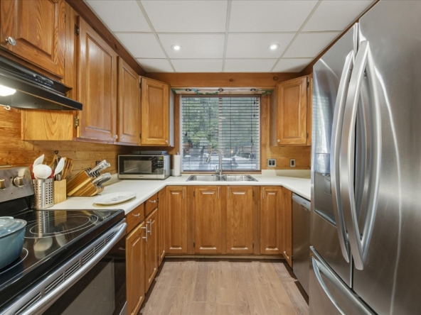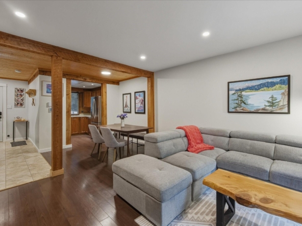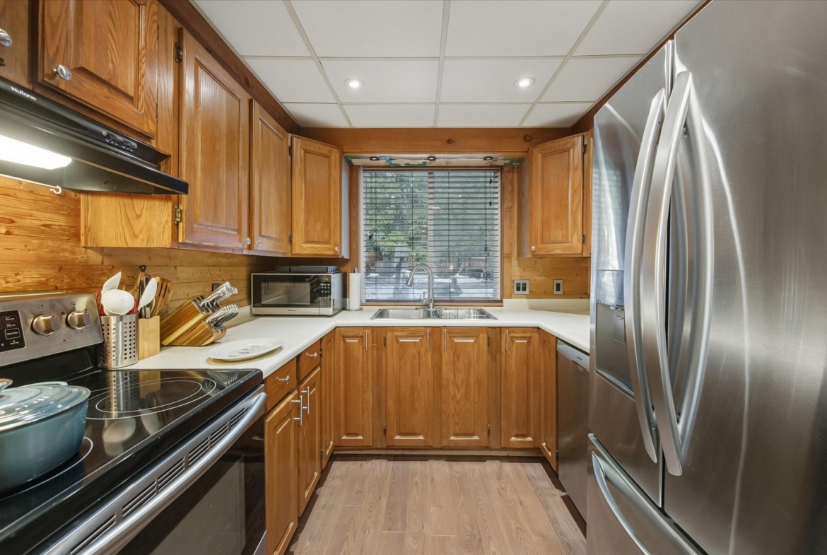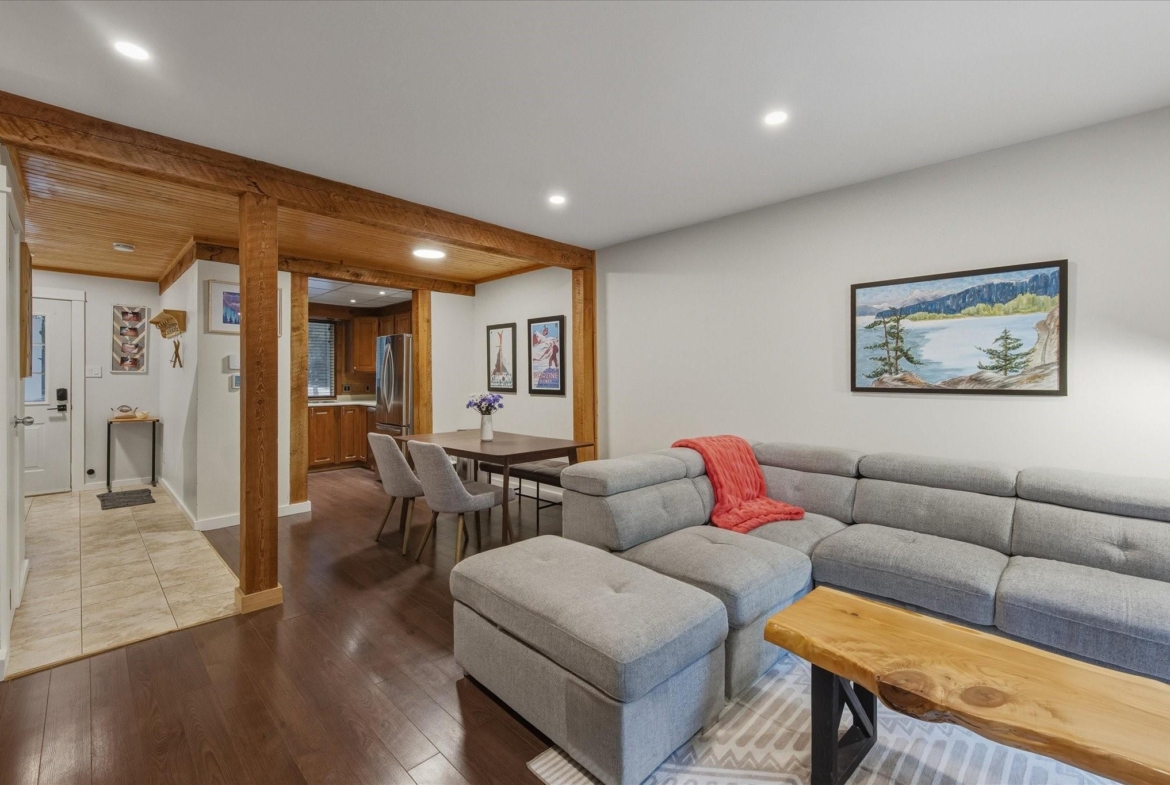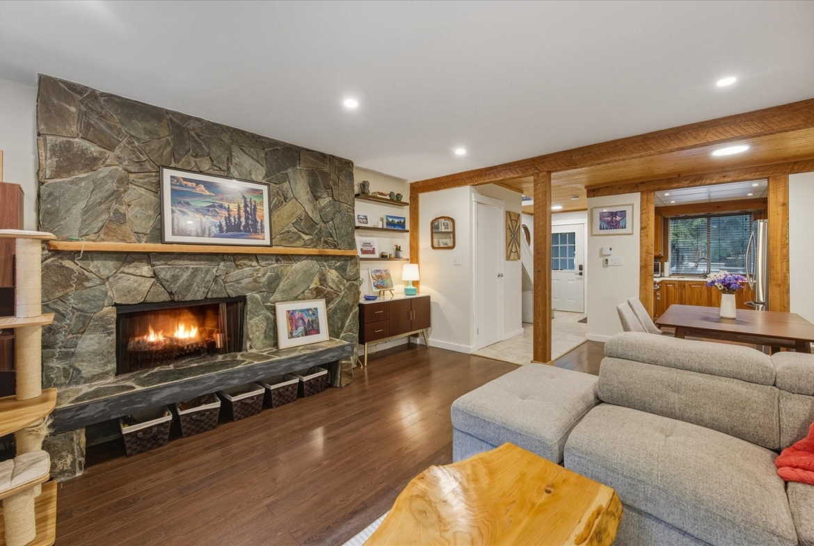 Welcome to the Sitzmark complex in Alpine Meadows, where this charming 2-bedroom townhome offers the perfect opportunity to plant roots in Whistler. Spanning 975 sq. ft., this home features a kitchen with stainless steel appliances and a convenient powder room on the main floor. Upstairs, you’ll find two bedrooms and a renovated semi-ensuite bathroom with radiant heated floors and motion-sensor lighting. The living area is defined by a classic stone hearth that adds timeless mountain character, while a brand-new sliding glass door provides access to an 88 sq. ft. deck with space for your BBQ. A second private deck is located off the upper bedroom, providing a quiet outdoor escape. Efficiency is key with upgraded vinyl windows, a newer W/D, and a hot water tank from 2021. Storage is a breeze with an approximately 450 sq. ft. crawl space (4’10″ high) for all your gear, plus a dedicated 3-bike shed. Located across the road from Whistler Secondary and seconds from the Valley Trail, you are steps from the Alpine Cafe and Meadow Park Rec Centre. With a bus stop just 50m away, this well-maintained home offers the perfect blend of local convenience and mountain lifestyle.