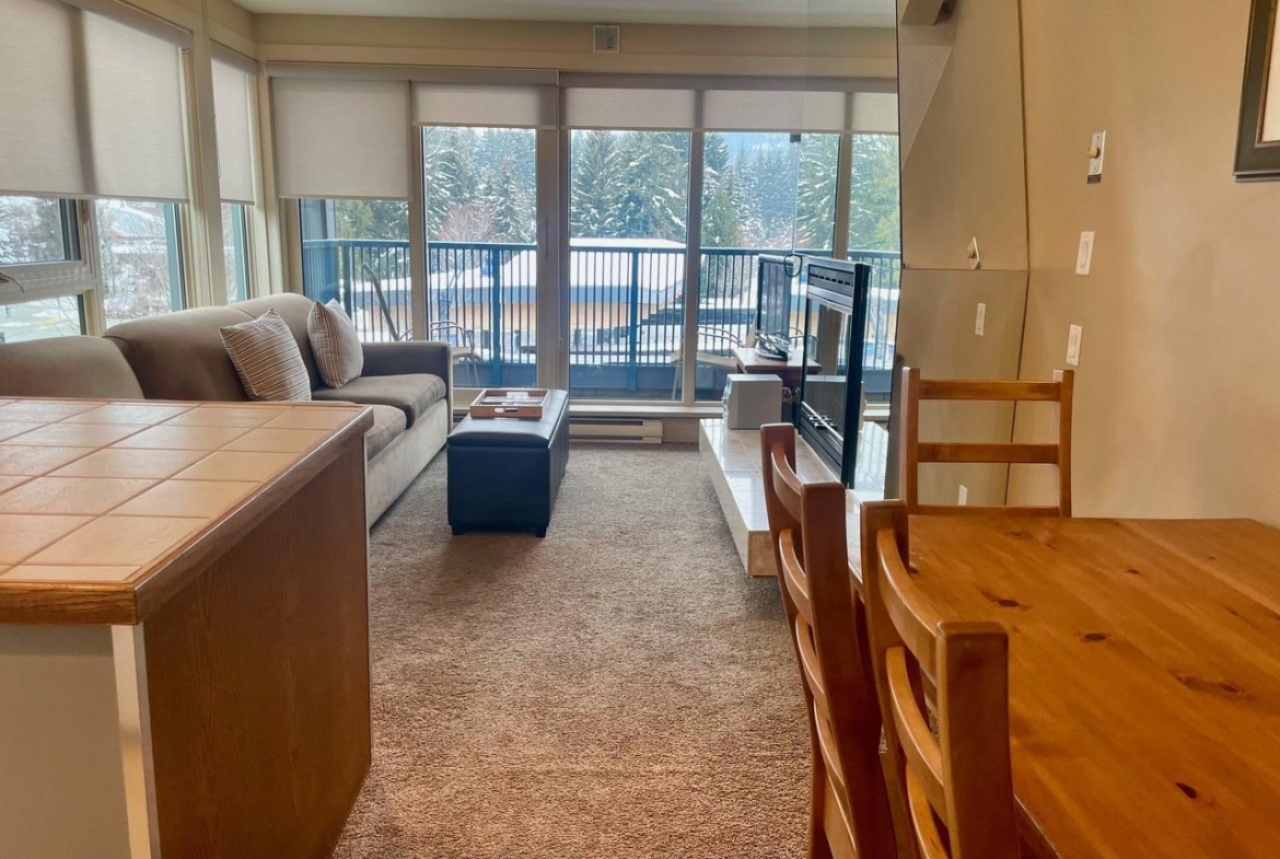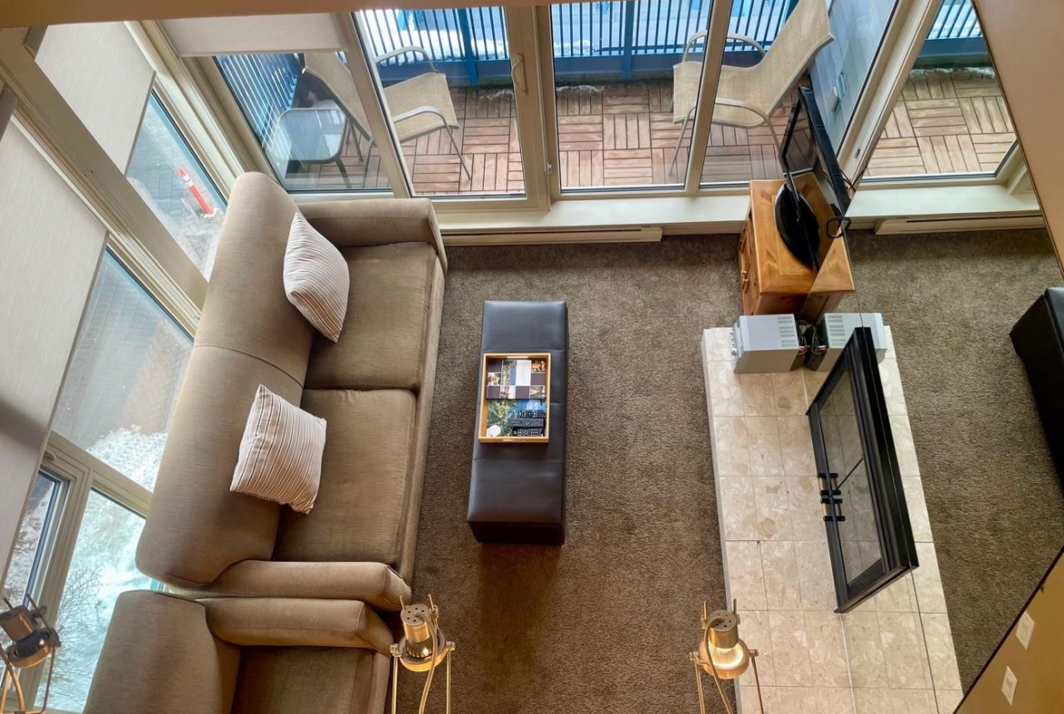 clogging the slopes have gone home and the lift lines are just a memory. This 638 ft.² two level