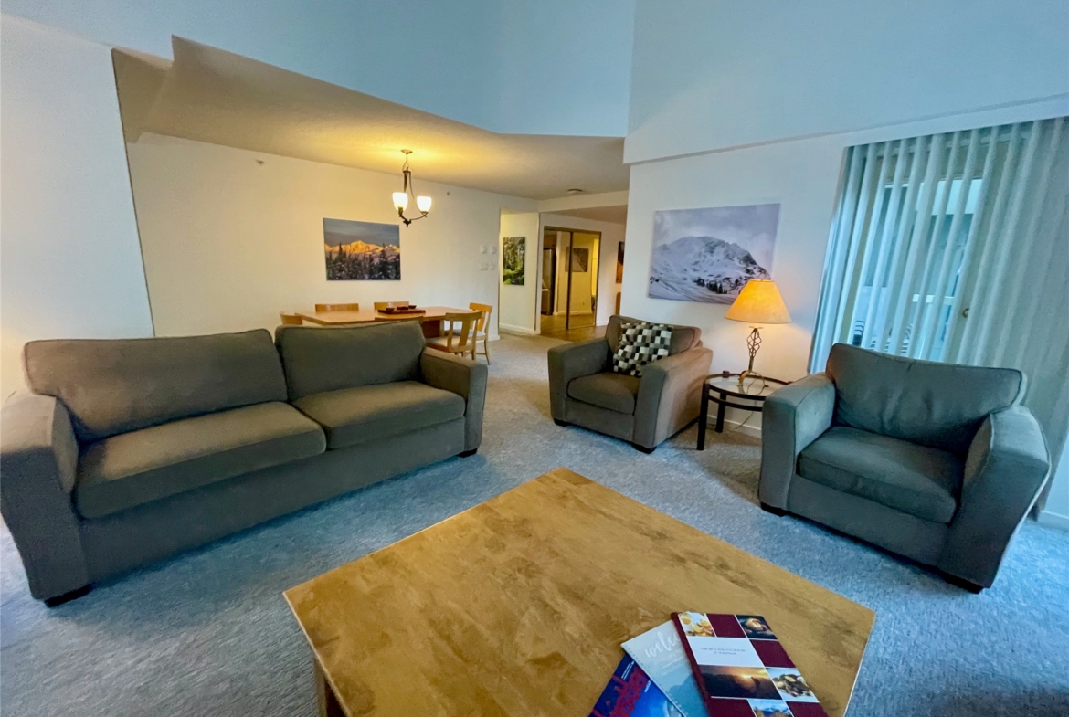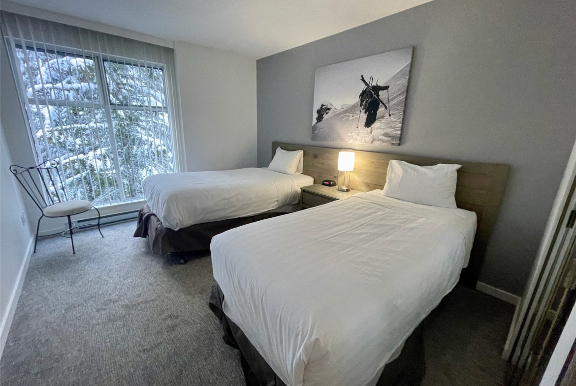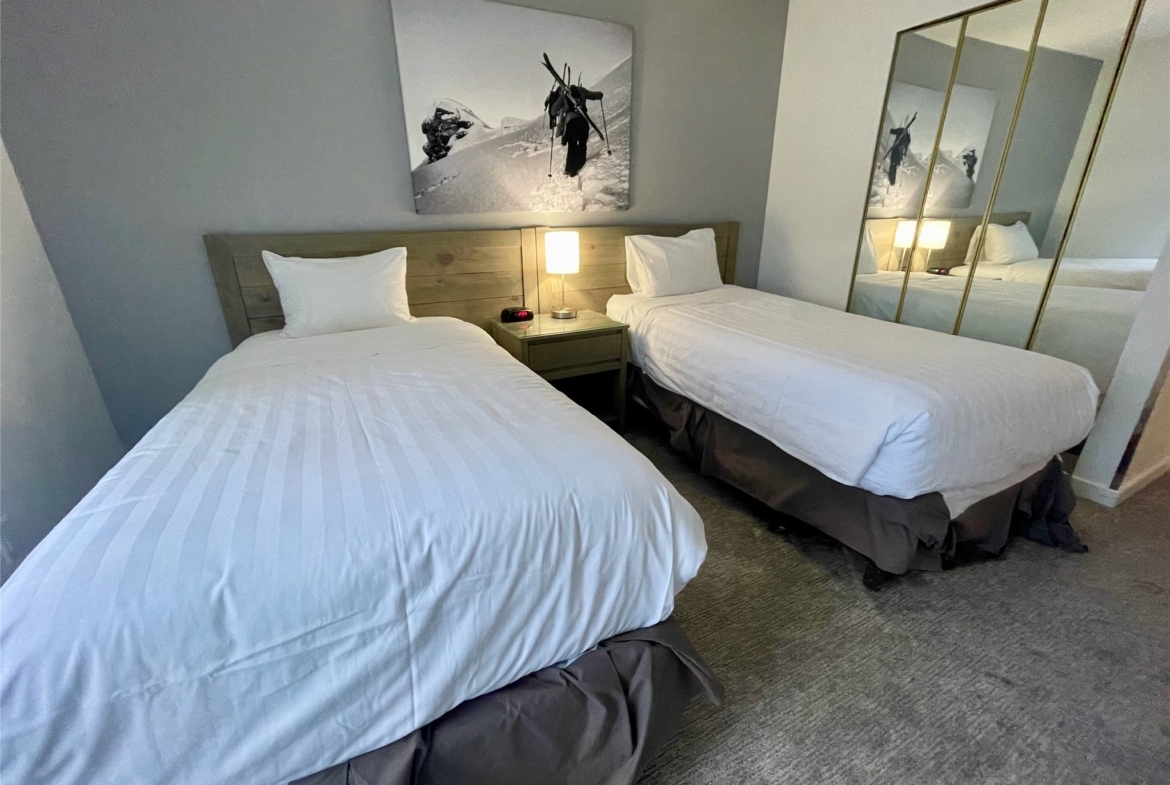 The large open floorplan of unit 319 makes it seem even bigger than it is. King size bed with ensuite bath, comfortable twin beds in the second bedroom and two fully renovated bathrooms.