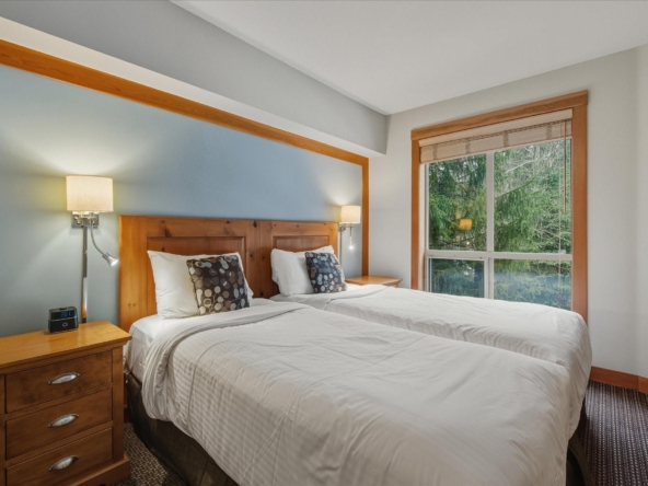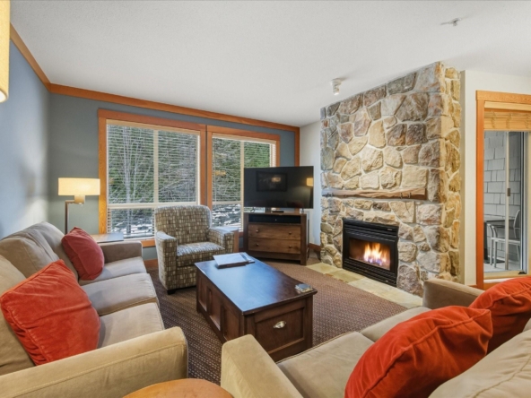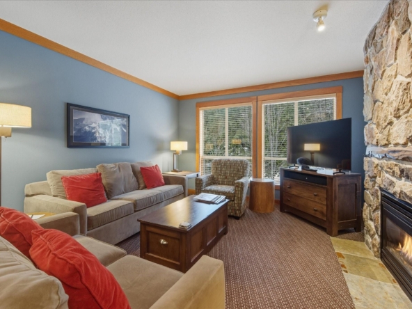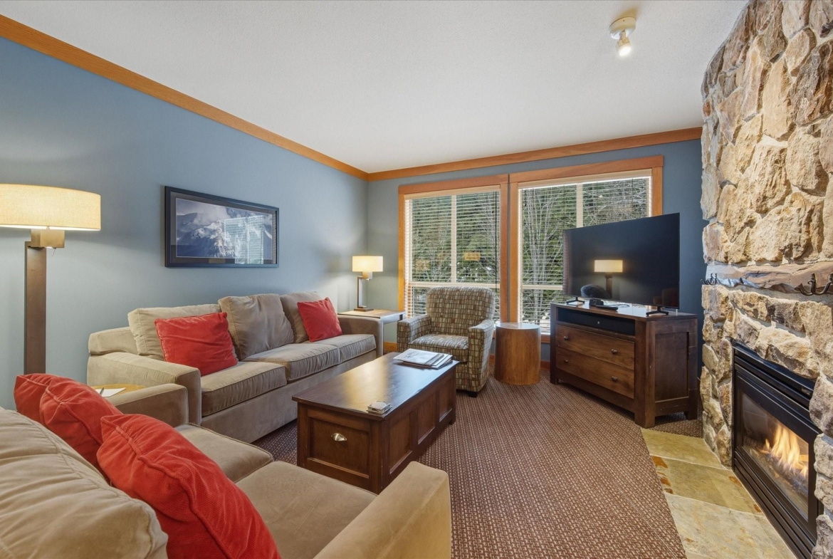 One of the most desirable locations in The Legends, this spacious 1,008 sq ft, 2 bed/2 bath suite is ideally positioned on the quiet creek side of the building, offering a peaceful outlook while still enjoying true ski- or bike-in/out access at Whistler Creekside. The well-designed larger than usual floor plan features a full kitchen, generous foyer and dining areas, a stone fireplace, and a comfortable layout ideal for relaxing or entertaining, along with a sunny south-facing deck for après and mountain air. This quarter-share ownership provides 12 weeks per year (one week out of every four), including two weeks at Christmas and New Year’s every four years, with the option to generate revenue through the professionally managed rental pool when not in use. Legends offers a full front desk and excellent amenities including an outdoor pool and hot tub, fitness centre, movie theatre, games areas, ski and bike storage, and secure underground parking, all just steps to Creekside Village shops, dining, Alpha Lake, and direct access to Whistler Blackcomb. Monthly fees include taxes, utilities, strata, and Tourism Whistler fees, making this a turnkey Whistler ownership opportunity.