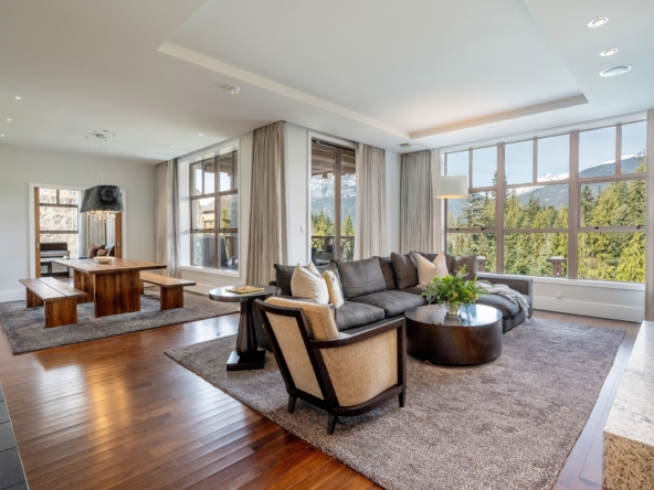 This reimagined Four Seasons residence offers a refined take on mountain living. Flooded with natural light, the interiors balance contemporary design with warmth and comfort, featuring three generous bedroom suites and a relaxed family den. Set on a sunny southwest-facing corner with mountain views, the home enjoys a sense of privacy alongside full access to the resort’s renowned amenities, including ski concierge, 24-hour service, spa, pool, and hot tubs—all complemented by the exceptional service of the Four Seasons, where every detail is quietly taken care of.