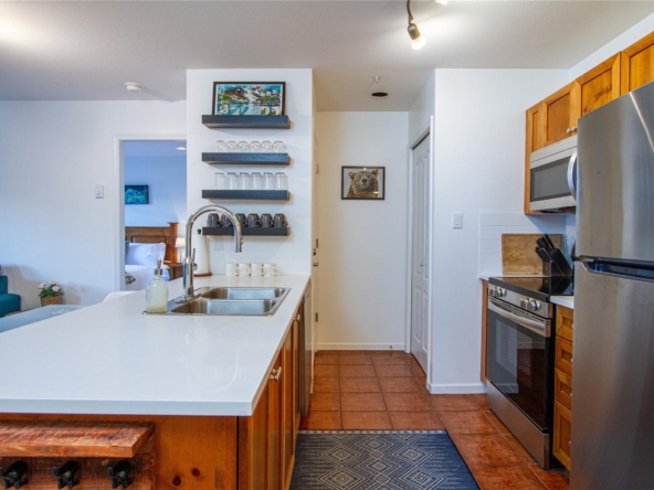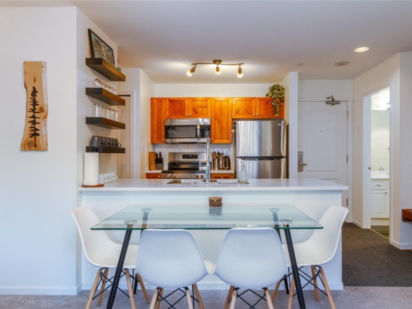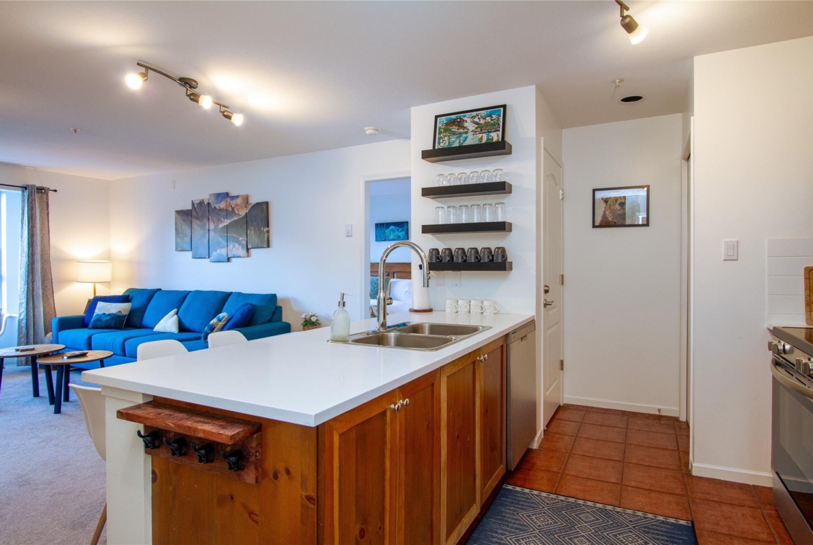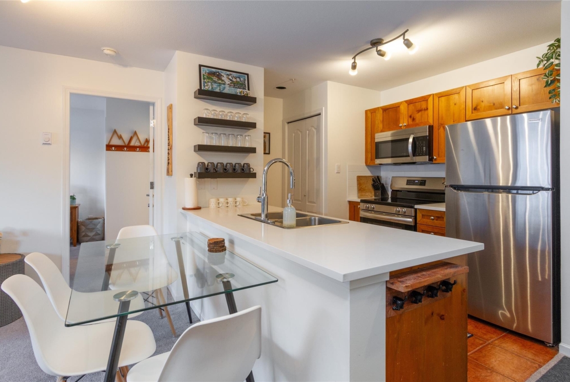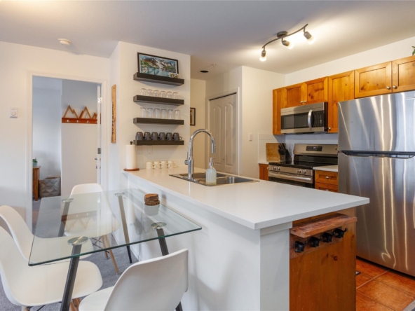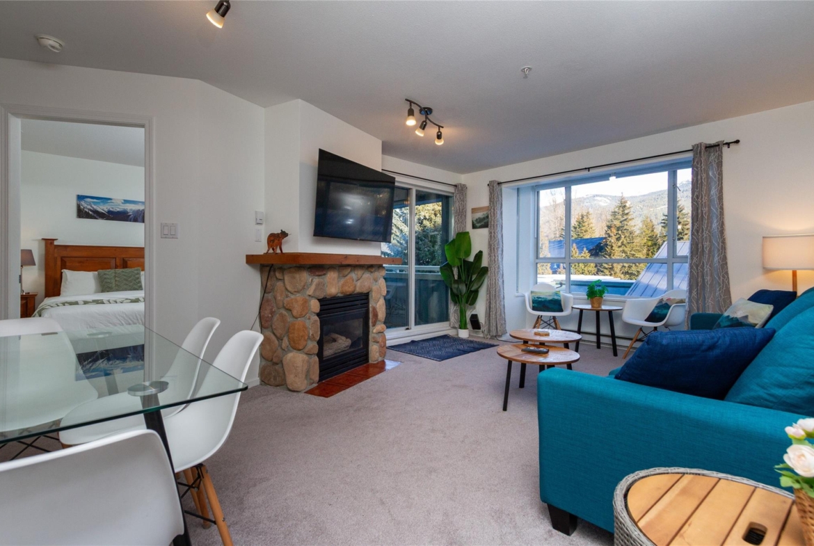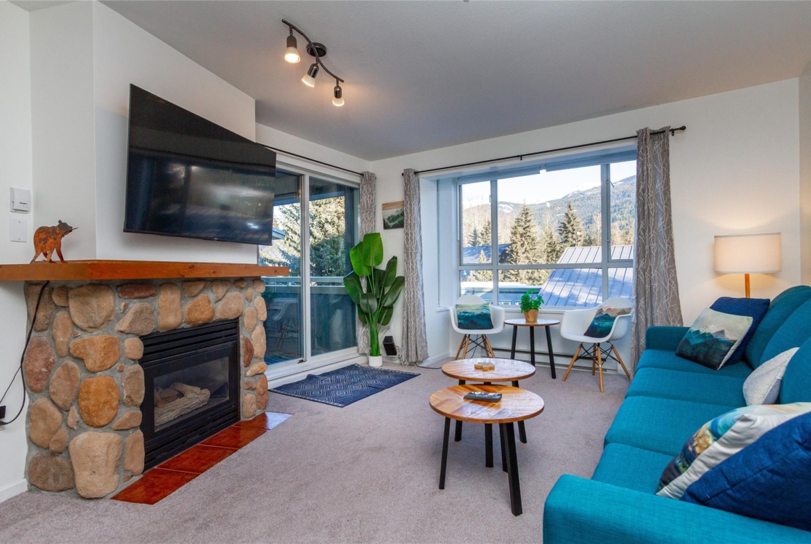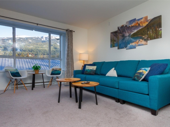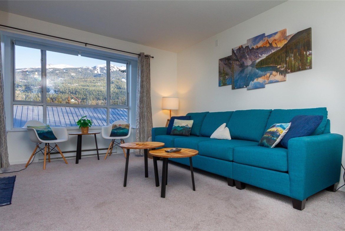 Welcome to 336 Town Plaza, a retreat in the heart of Whistler Village. Step off the Village Stroll and into your own peaceful sanctuary, perfectly positioned on the quiet side of the building with breathtaking, unobstructed views of Blackcomb Mountain. Flooded in natural light, the large windows frame the alpine scenery, creating a calm and inviting space to relax after a day in the mountains. The home has been tastefully updated with new carpet throughout, all-new stainless steel appliances, a new washer and dryer, new countertops, and fresh paint. A custom luxury sofa and tasteful mountain decor complete this turn-key residence, ready for immediate enjoyment. Town Plaza also offers a newly updated hot tub and gym, both nearing completion and conveniently located within the building. Zoned for nightly rentals and unlimited personal use, Town Plaza is one of the best revenue-generating buildings in Whistler, making this the ultimate Whistler investment + personal use mountain getaway.