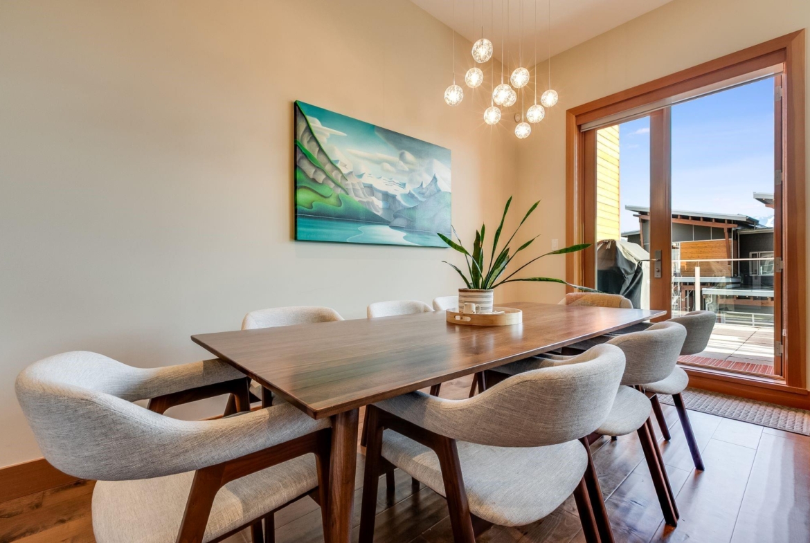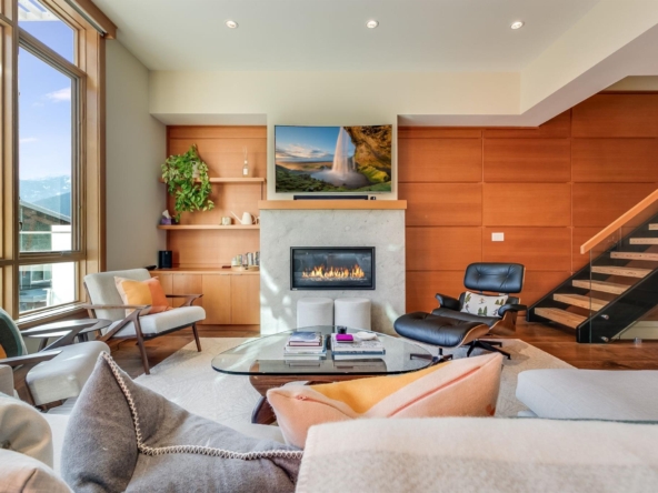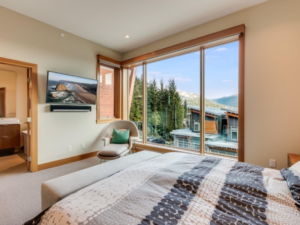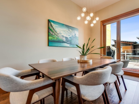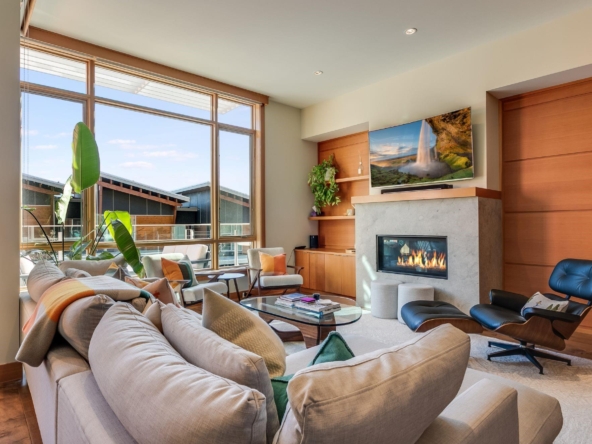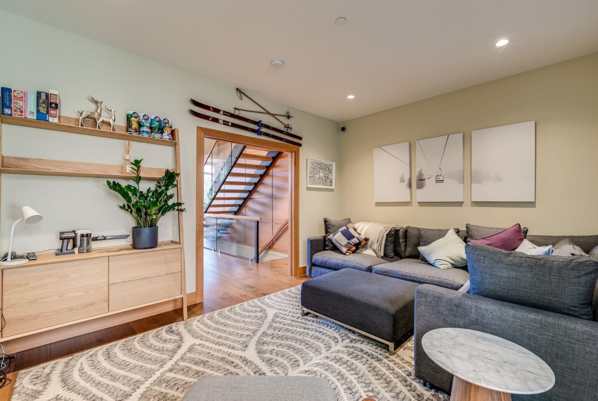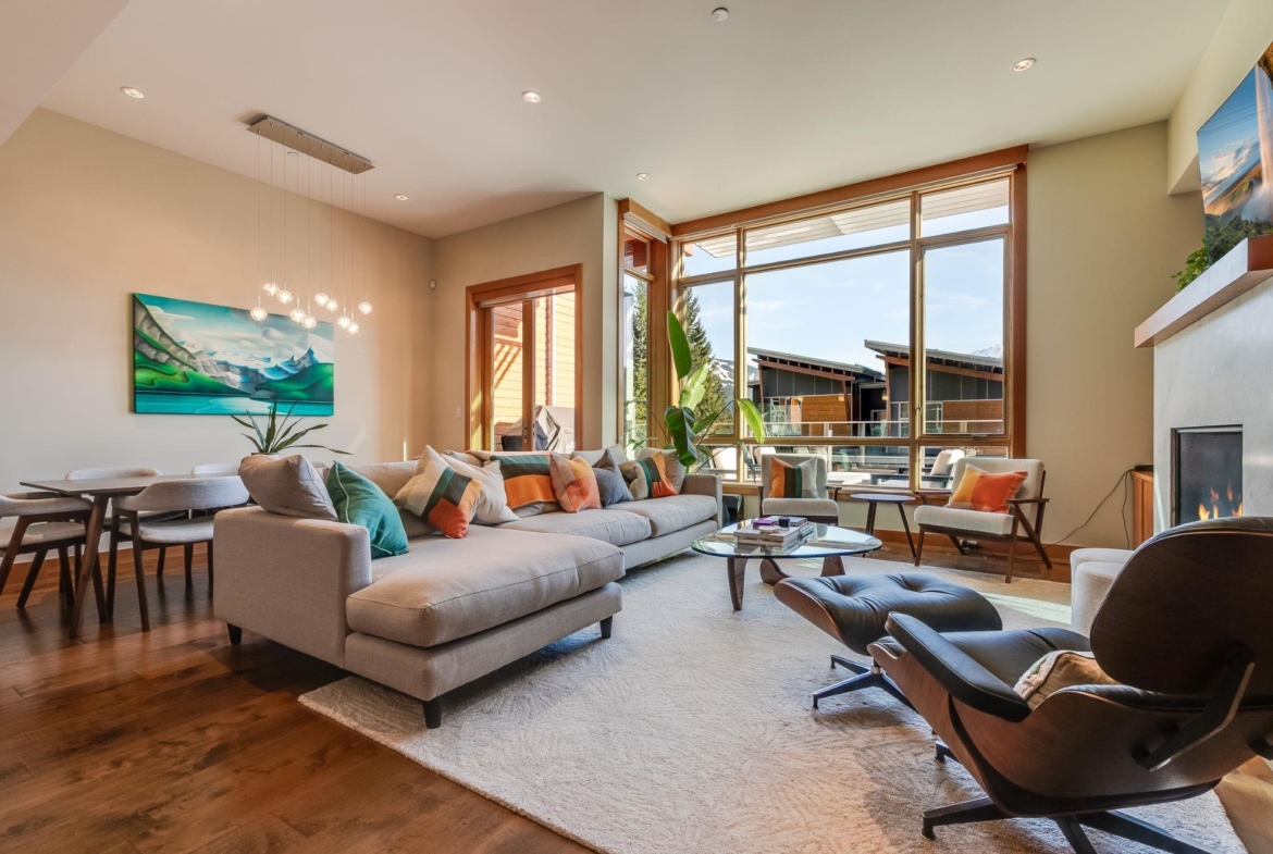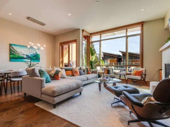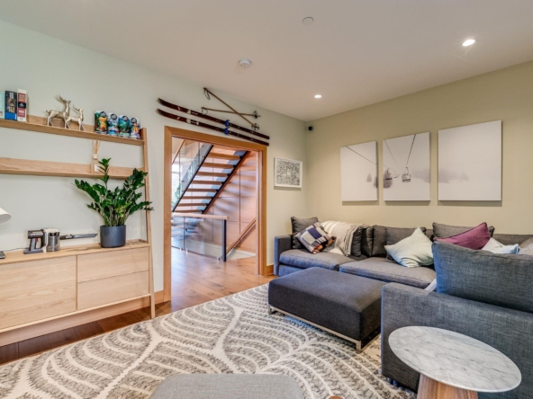 This sophisticated Red Sky townhome epitomizes contemporary mountain luxury, boasting a south-facing orientation that invites natural light from dawn to dusk. The residence features three spacious bedrooms—each with a private ensuite—and a versatile family room that easily serves as a fourth bedroom. Meticulously crafted with natural wood, stone, and bespoke millwork, the interior offers a seamless blend of elegance and comfort, highlighted by high ceilings, a Control4 smart home system, and heated flooring. Residents can enjoy panoramic mountain views from the expansive outdoor deck or retreat to the private rear patio and hot tub. Built to exacting green standards, the property also includes an oversized garage and exclusive access to the Baxter Creek Residents’ Club amenities, including a saltwater pool and fire pit, making it an unparalleled choice for a discerning full-time resident or a premier weekend retreat.