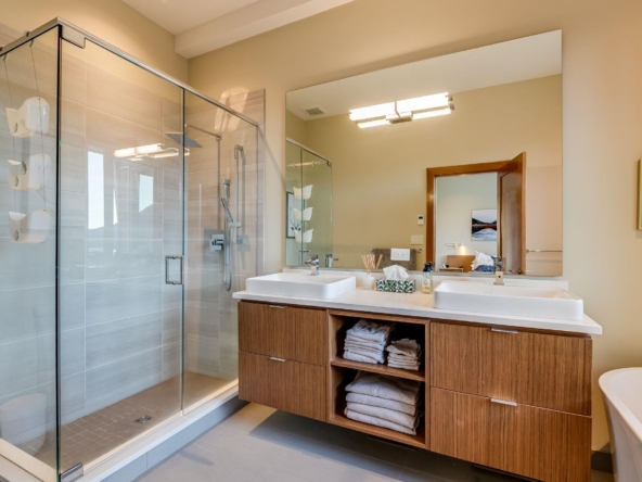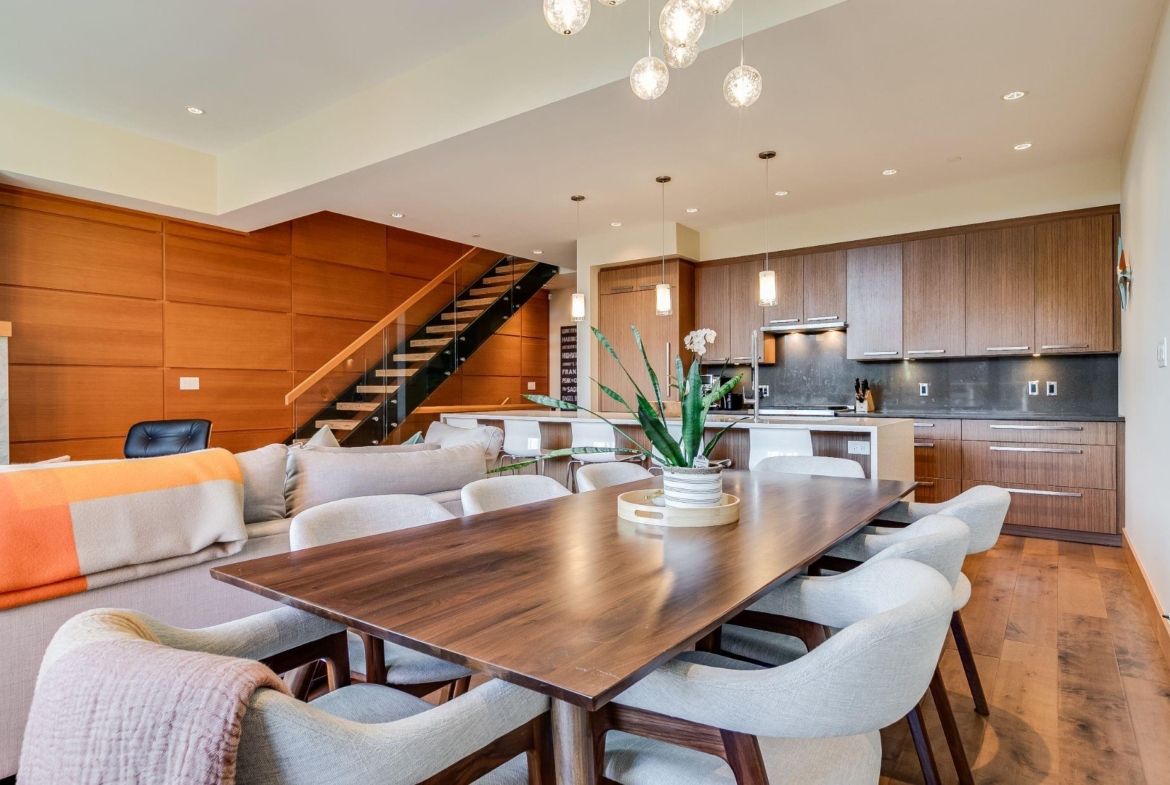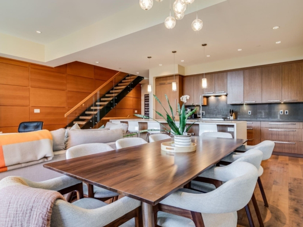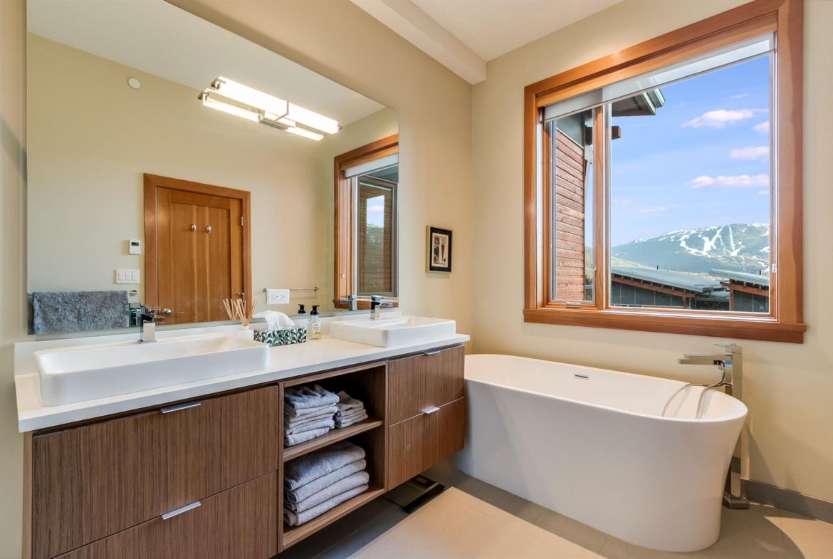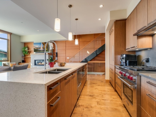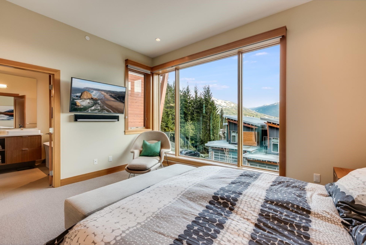 This sophisticated Red Sky townhome epitomizes contemporary mountain luxury, boasting a south-facing orientation that invites natural light from dawn to dusk. The residence features three spacious bedrooms—each with a private ensuite—and a versatile family room that easily serves as a fourth bedroom. Meticulously crafted with natural wood, stone, and bespoke millwork, the interior offers a seamless blend of elegance and comfort, highlighted by high ceilings, a Control4 smart home system, and heated flooring. Residents can enjoy panoramic mountain views from the expansive outdoor deck or retreat to the private rear patio and hot tub. Built to exacting green standards, the property also includes an oversized garage and exclusive access to the Baxter Creek Residents’ Club amenities, including a saltwater pool and fire pit, making it an unparalleled choice for a discerning full-time resident or a premier weekend retreat.