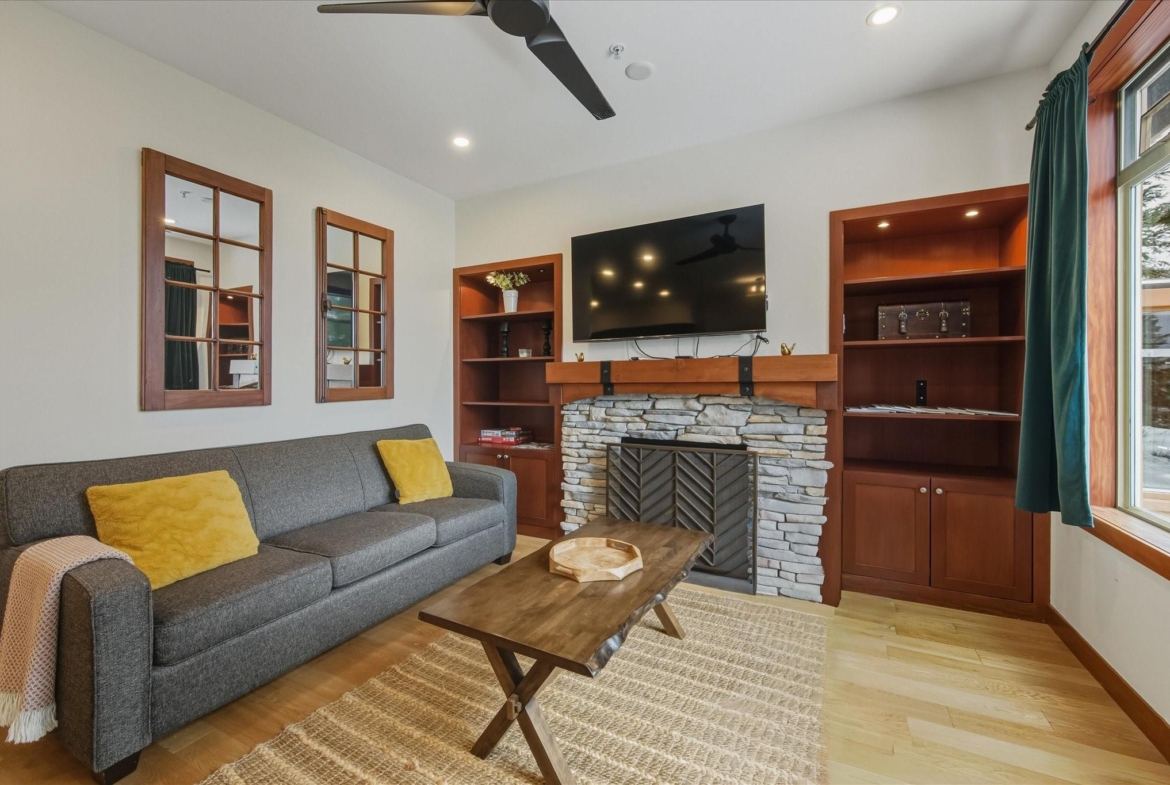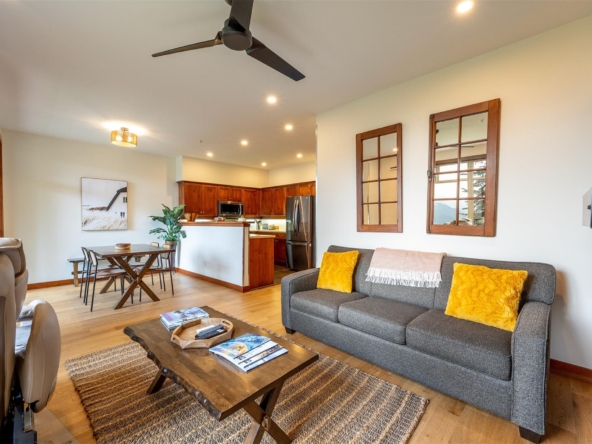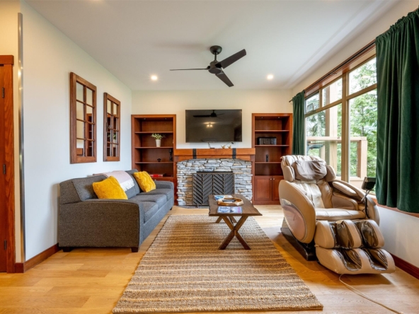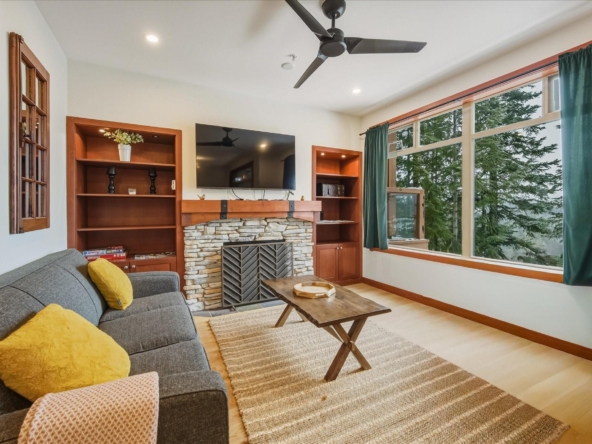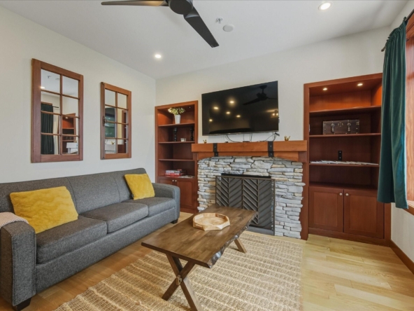 light and thoughtfully designed for effortless mountain living. Warm wood accents, a cozy gas