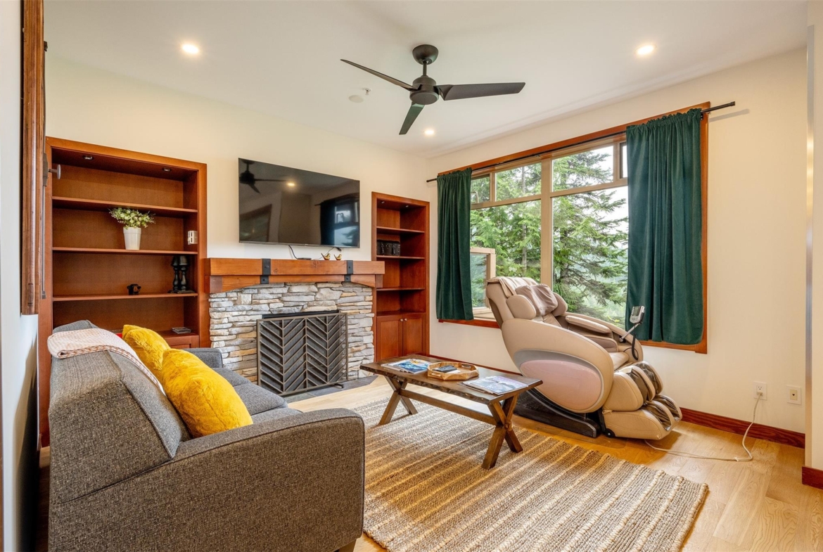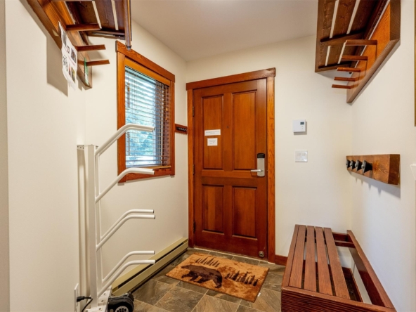 fireplace, and a functional single-level layout create a welcoming alpine retreat. The chef’s