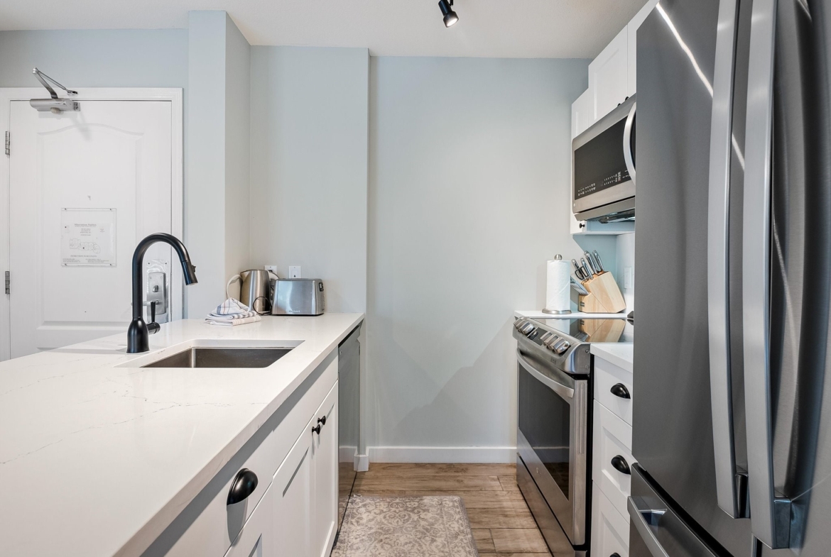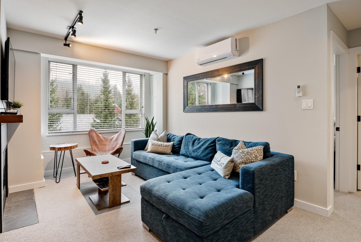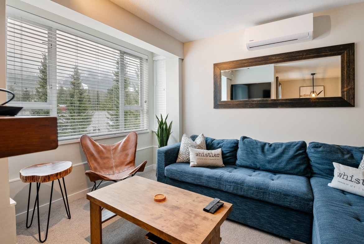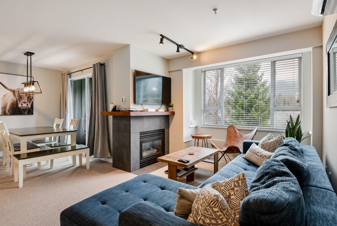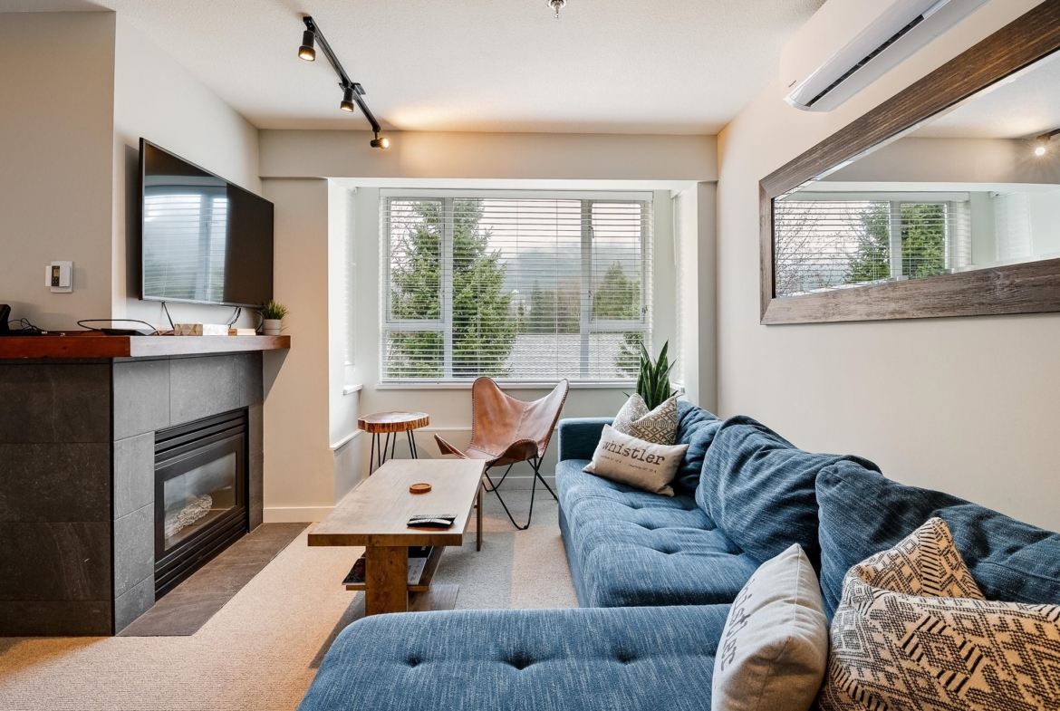 SOLD FULLY FURNISHED! Welcome to this stunning top-floor residence in the Town Plaza complex, perfectly situated in the vibrant heart of Whistler Village. This beautifully renovated 2-bedroom, 2-bathroom unit was fully updated in the summer of 2021, showcasing a sleek and modern design throughout. The kitchen features high-end appliances & chic cabinetry. Every detail has been thoughtfully upgraded, from the heated tile floors and luxurious wool carpeting to the elegant new fireplace surround, updated window coverings, and air conditioning for year-round comfort. Town Plaza amenities include a front desk, hot tub and fitness room, ski locker, and secure underground parking. Zoned for NIGHTLY RENTALS! Strata fee includes: Internet, cable, hydro, gas, front desk.