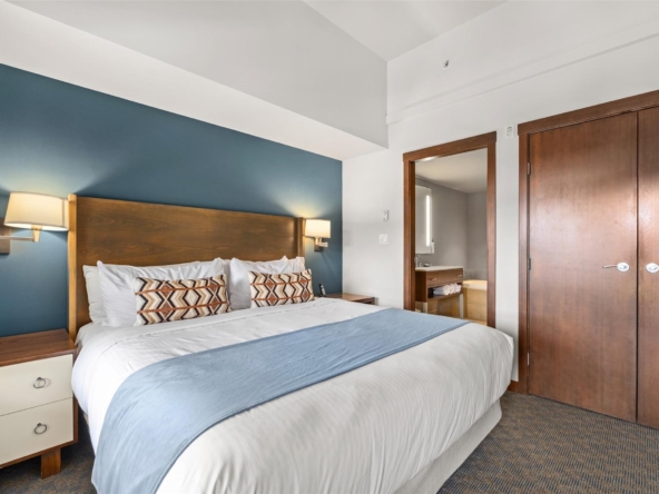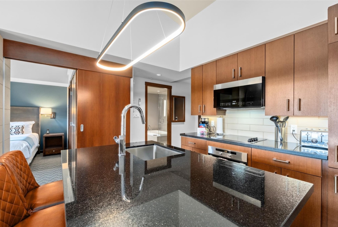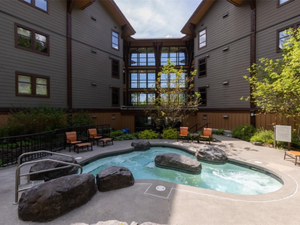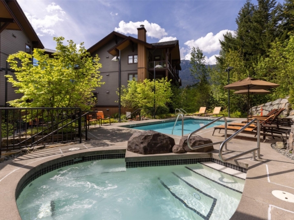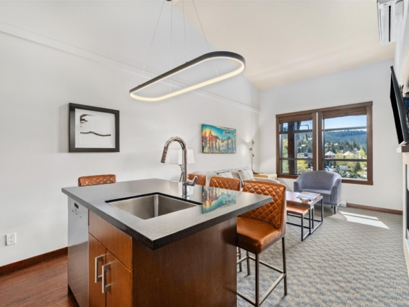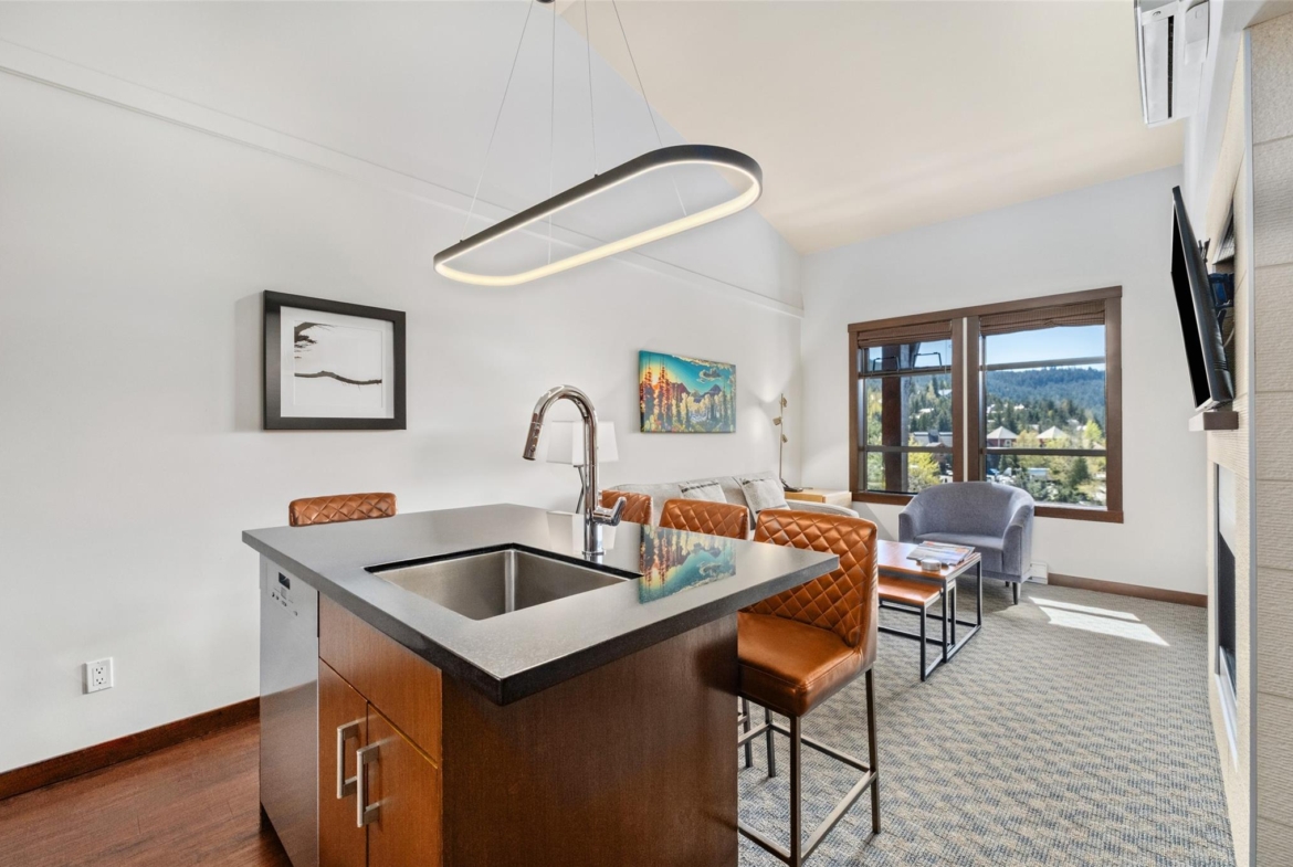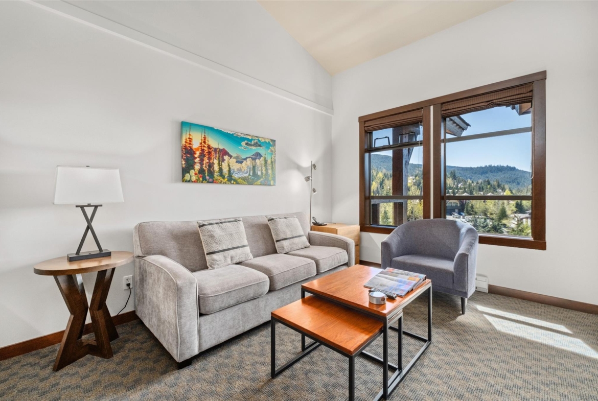 Perfectly positioned at the base of Whistler, this pet-friendly, ski-in/ski-out quartershare places you steps from the Creekside Gondola base. Enjoy one week per month to escape, unwind, or generate revenue through the in-house rental program. Set on the top floor on the sunny, south-facing side of the building, this residence feels bright and open. Vaulted ceilings elevate the space, while a double-sided gas fireplace creates a warm, inviting atmosphere you can enjoy from both the living room and the bedroom. The open-concept layout is designed for gathering and relaxing with a fully equipped kitchen featuring high-end appliances, and space to sleep up to four. Step out onto your private balcony to take in views of Whistler Peak and the vibrant Creekside Village. Evolution’s resort-style amenities invite you to unwind and recharge, from the heated outdoor pool and hot tubs to the sauna, steam room, fitness centre, entertainment spaces, and more.