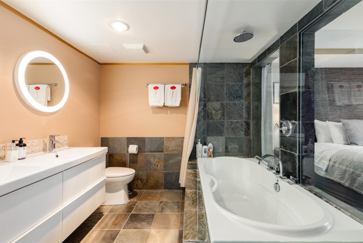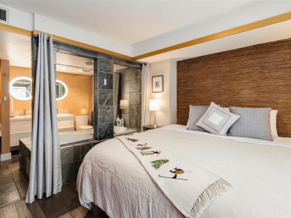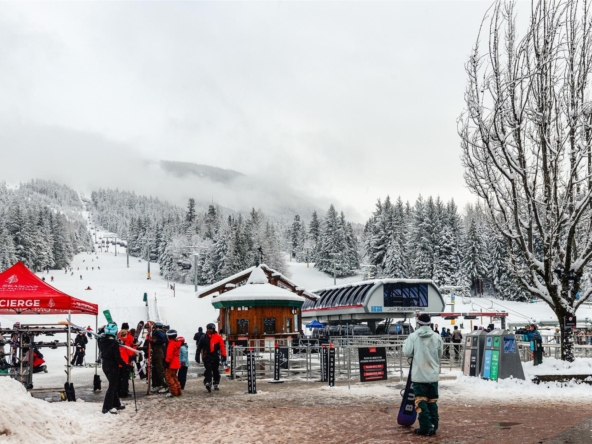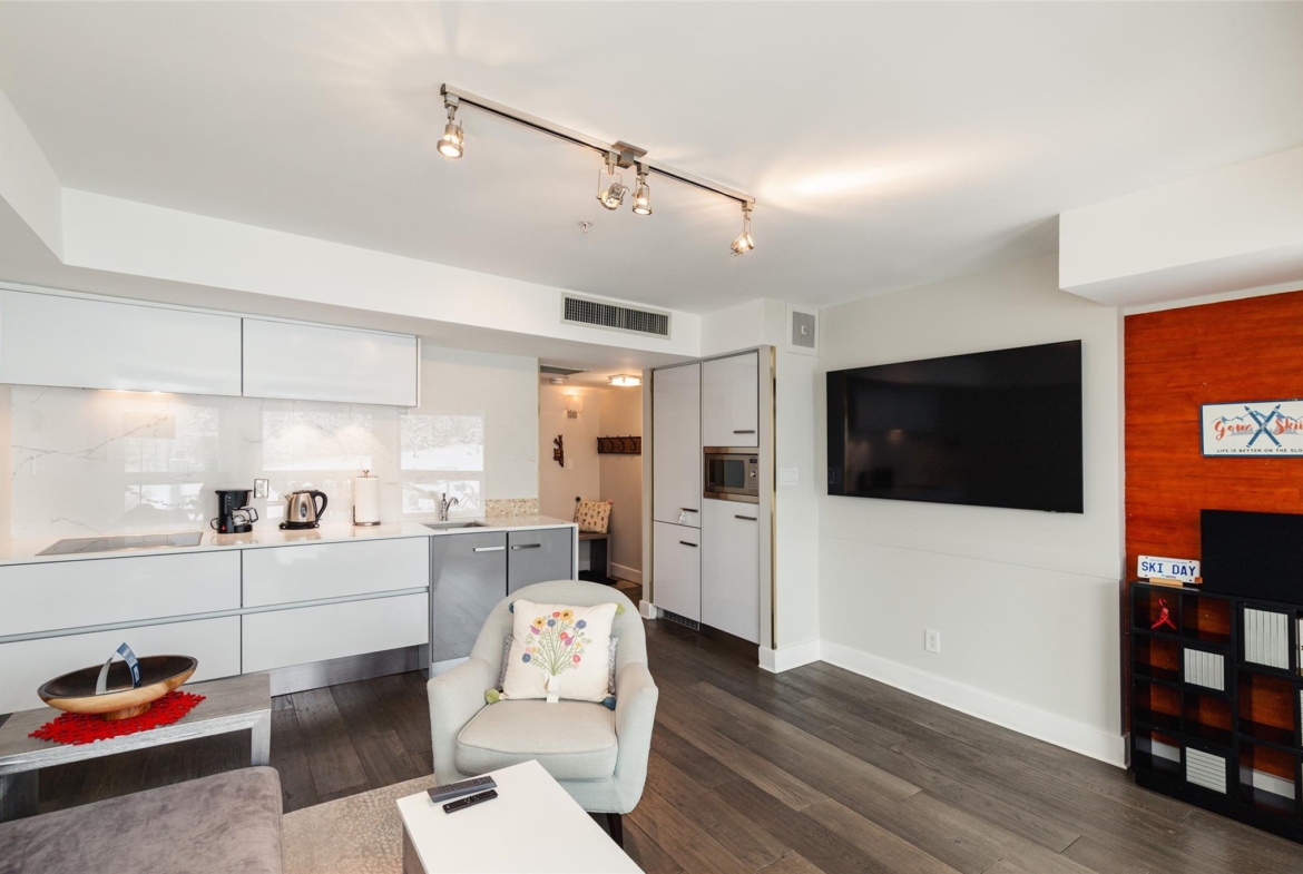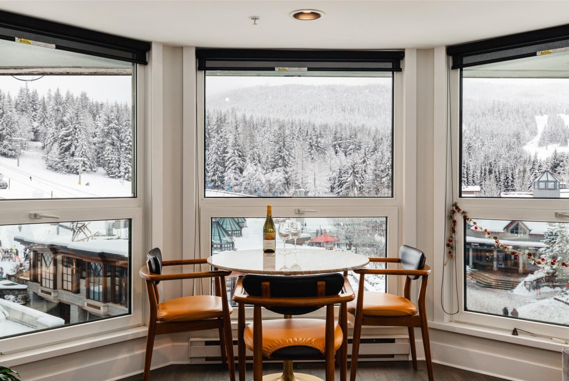 Perfectly located at the base of Blackcomb Mountain, this luxurious ski-in/ski-out residence offers direct, unobstructed views of the mountains, gondola, and Upper Village stroll from every window. A rare one-bedroom with private laundry, it features full, symmetrical living room windows which add balance and light – an uncommon detail in the building. Situated on the coveted 4th level, the highest and most sought-after floor for smaller units, this beautifully updated home benefits from Phase 1 nightly rental zoning, exceptional revenue history, and unlimited personal use. Enjoy resort-style amenities including a pool, hot tub, and gym—an elegant alpine retreat and investment.