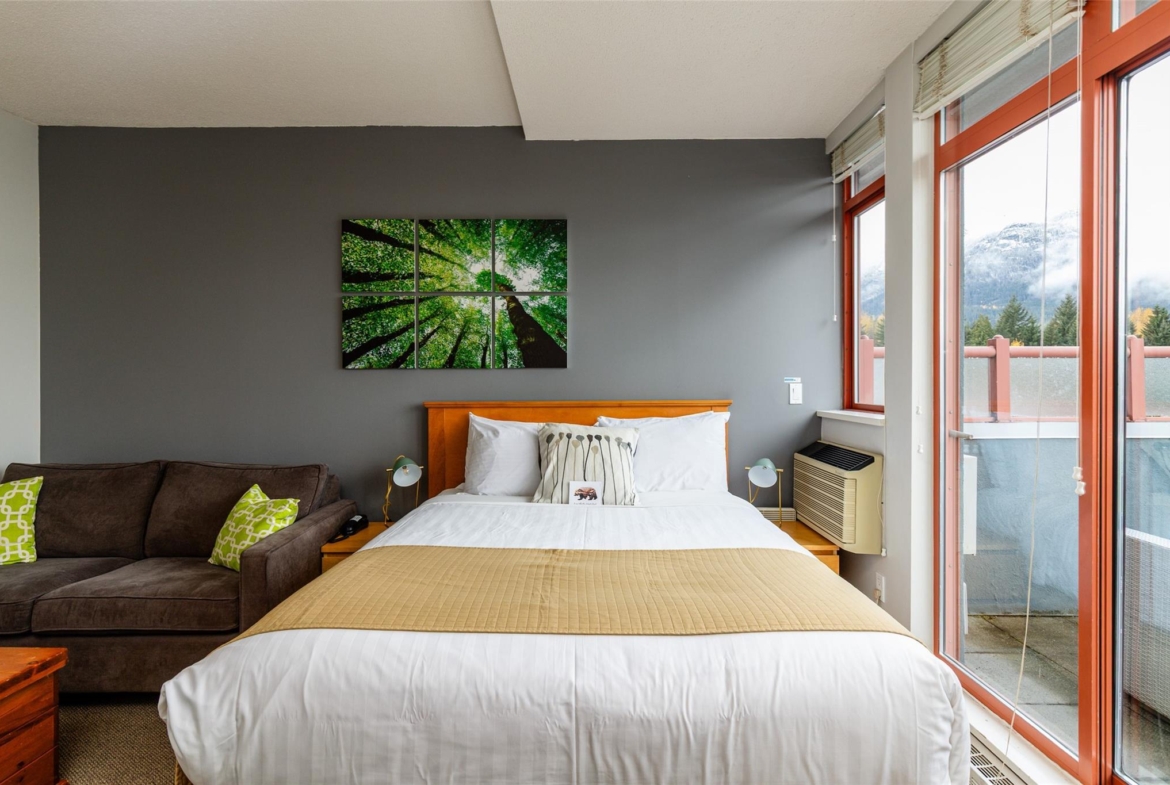 This Alpenglow suite generated over $53,000 in gross revenue in 2025, delivering a 6.4% ROI based on $31,434 net, despite generous owner use of 53 nights — tough numbers to beat in Whistler. Located on the 4th floor, this bright studio features air conditioning, a gas fireplace, lofty 9’ ceilings and expansive windows with beautiful mountain views from a private balcony. Building amenities include a heated outdoor pool, hot tub, sauna, gym, ski/bike storage, shared laundry, and secure underground parking. Rare Phase 2 flexibility sets Alpenglow apart — unlike most Phase 2 hotel properties, owners may self-manage nightly rentals on Airbnb or use any rental management company, or opt for a hands-off approach.