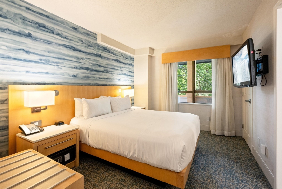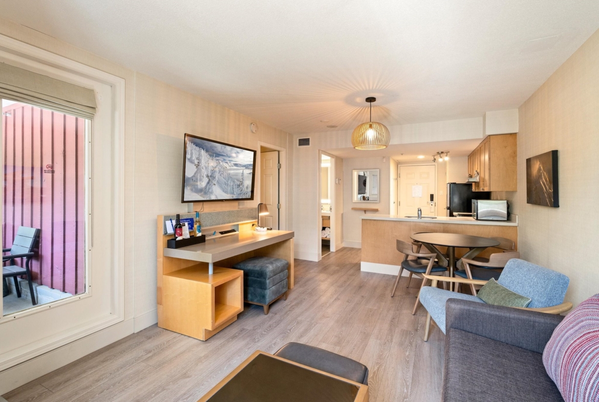 This bright and spacious 2 bedroom/2 bathroom lock-off corner unit is located in the Delta Whistler Village Suites by Marriott, right in the heart of Whistler Village on Main Street. Featuring a large wrap-around balcony, cozy gas fireplace, and flexible floor plan, this unit is perfect for personal use and strong rental income. The lock-off layout allows the suite to be used as a full 2-bedroom property or split into separate units, maximizing versatility and revenue potential. Stay on one side and earn revenue at the same time on the other side! Enjoy full access to premium hotel-style amenities including an indoor/outdoor pool, three hot tubs, sauna, fitness centre, two on-site restaurants, and a new coffee shop. As part of Phase 2 zoning, owners can enjoy up to 56 days of personal use per year (28 days in summer, 28 in winter), with the remainder of the time managed by the professional Marriott team, ensuring a seamless and hands-off investment. Don’t miss out on an ideal opportunity to own a turn-key mountain resort property in Whistler Village today!