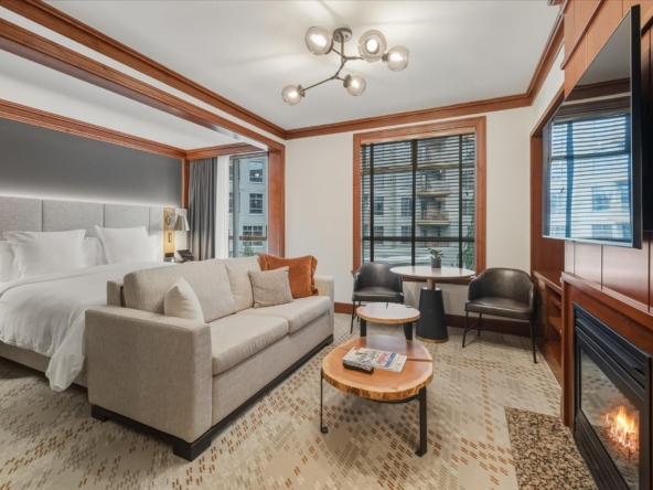 Wake up to the perfect blend of manicured garden greens and rugged alpine peaks from this elevated fourth-floor Superior King suite. Living at the Four Seasons feels like a permanent vacation where every detail is handled for you; just drop your gear with the ski valet, hop on the private shuttle, and let the concierge handle your reservations at the award-winning SIDECUT Steakhouse. Whether you’re recovering at the world-class spa, ordering room service for a quiet night in, or grabbing a glass of wine by the pool as the sun sets over Whistler and Blackcomb, this spot delivers an effortless, high-end resort vibe with the best views in the village.