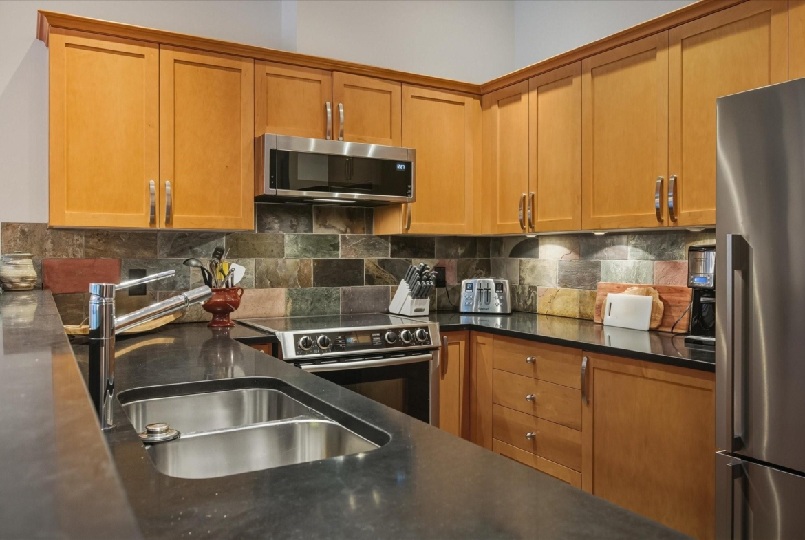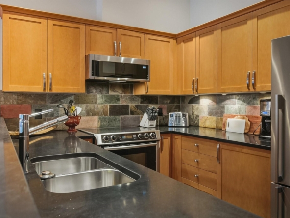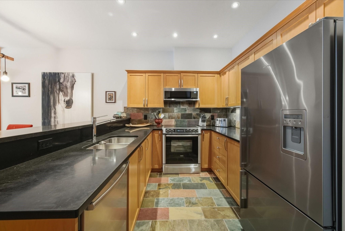 Wonderful 3 bedroom townhome located in Montebello: one of Whistler’s most desired Village area developments, just a short walk to your favorite restaurants and shops! Bright open living area with vaulted ceilings, exposed beams, stone and wood accents, beautiful wood fireplace and tasteful decor provide all the character of a classic ski chalet, while modern conveniences that include stone counters, stainless steel appliances, heated flooring, a single car garage, and private hot tub provide comfort and utility. This unique property is offered completely furnished and equipped for your family’s immediate use. GST is not applicable.