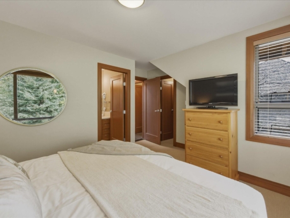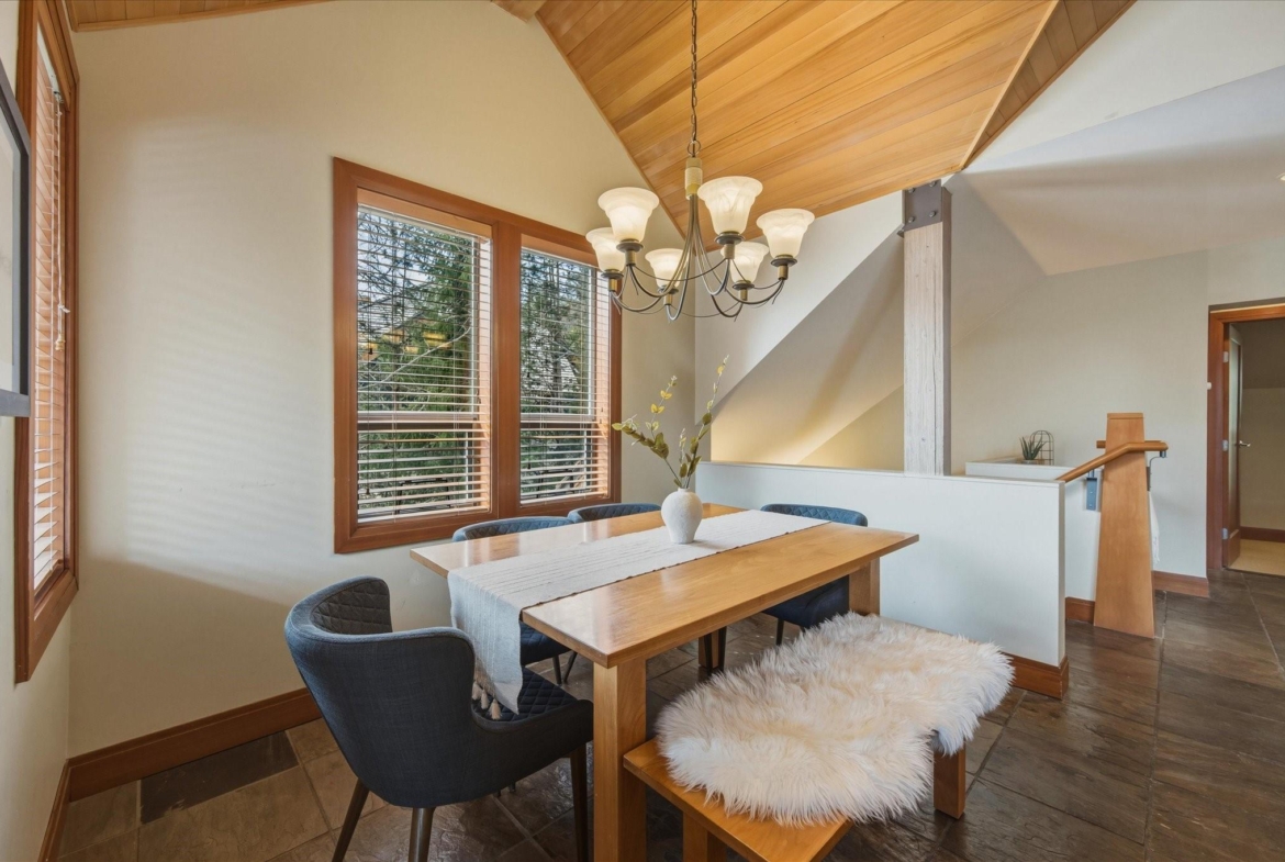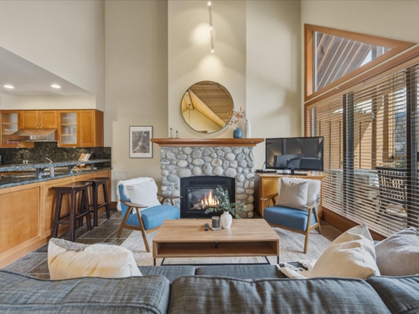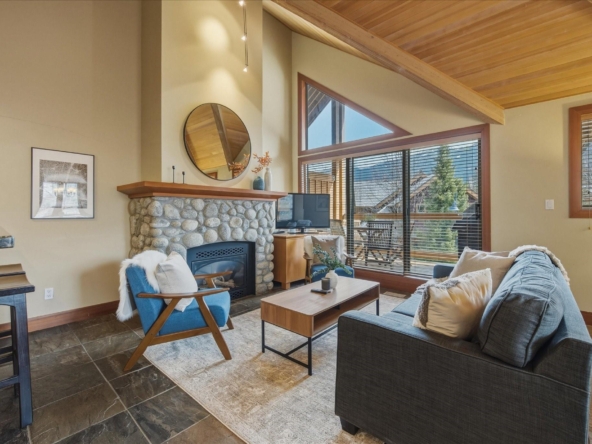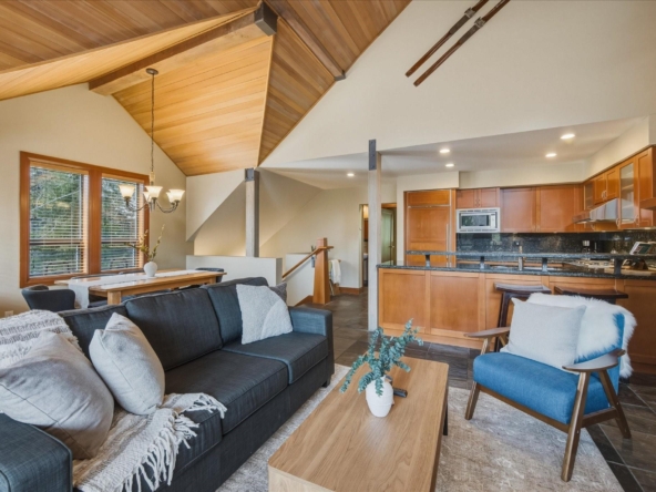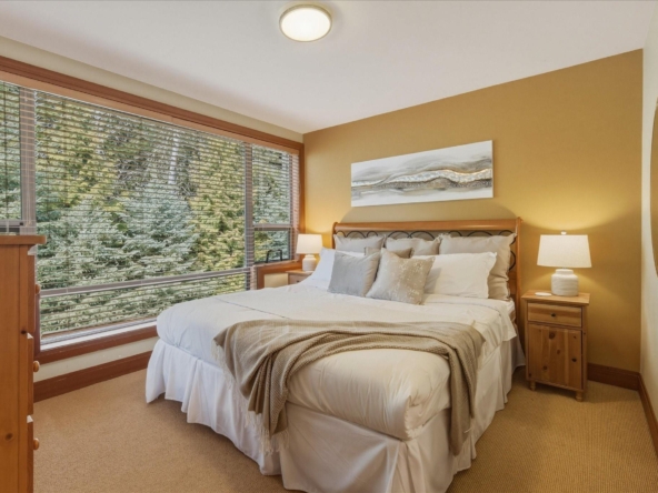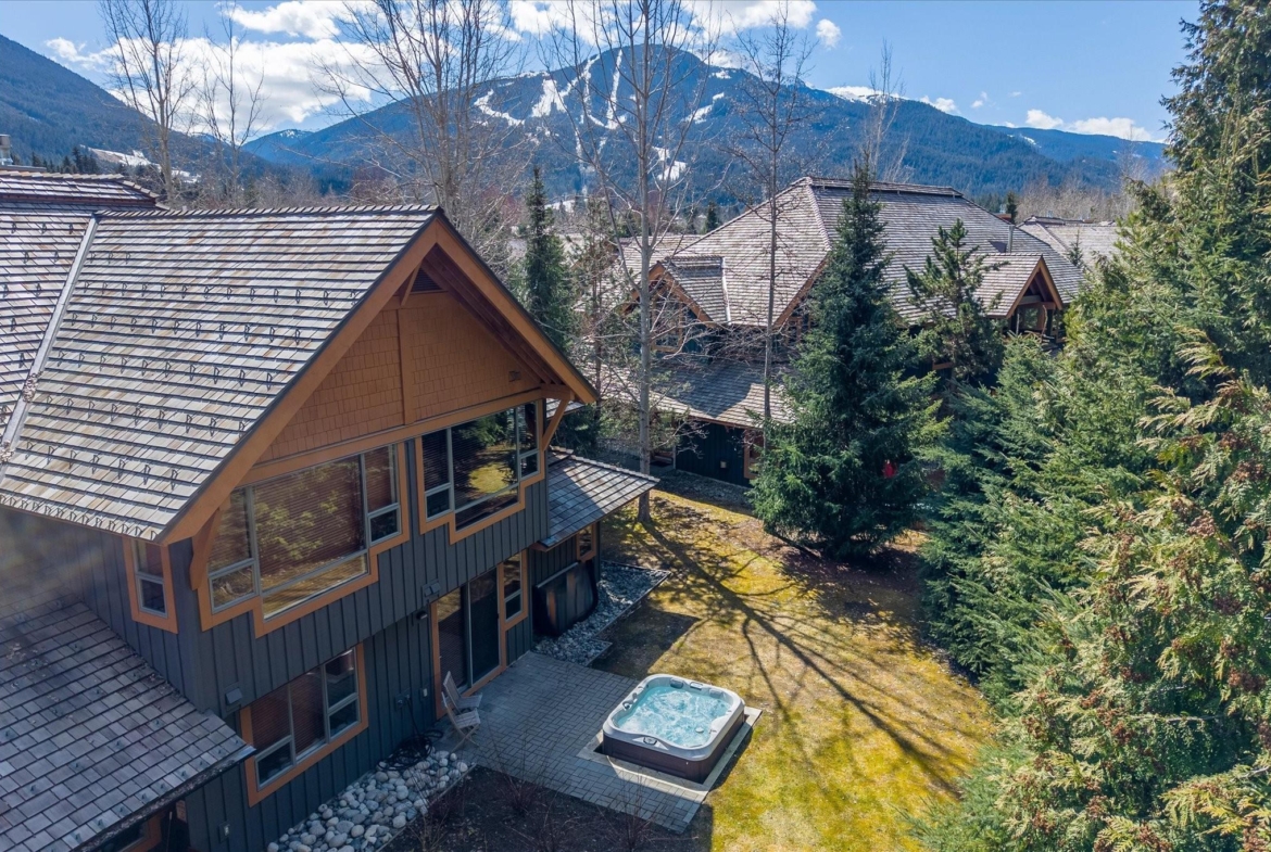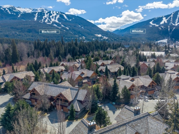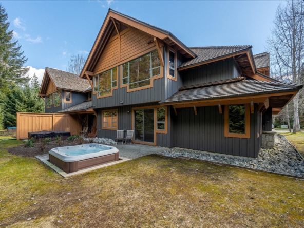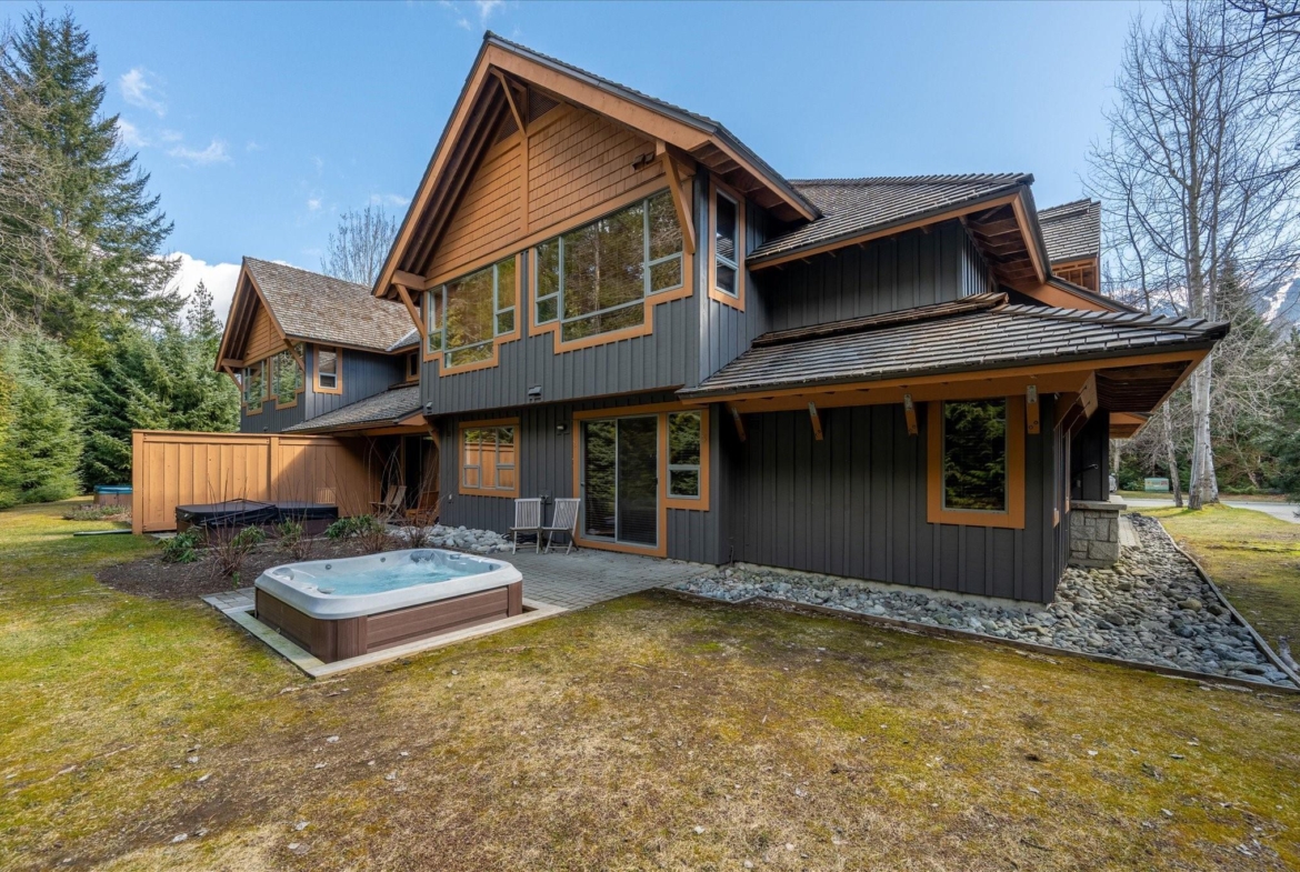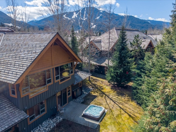 Discover this stunning corner townhome in Montebello boasting breathtaking views of Whistler/Blackcomb Mountains, just a short stroll to Whistler Village. This exceptional unit features 3 bedrooms, a den which can be a 4th bedroom, 3 full bathrooms, plus a powder room. Enjoy the rare benefit of a garage for secure parking and ample storage for outdoor gear, as well there is extra parking nearby. After a day of adventures, unwind in your private hot tub surrounded by serene greenspace. Additional highlights include air conditioning and a cozy gas fireplace for year-round comfort. Zoned for nightly rentals, this home is perfect as a vacation retreat or primary residence. GST paid.