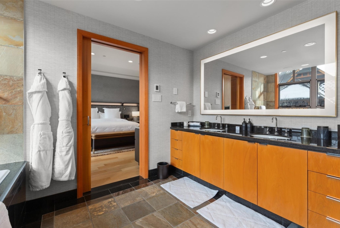 Experience the pinnacle of luxury mountain living in this exceptional residence at Four Seasons Private Residences. Set across two levels and offering 3,695 sq. ft. of beautifully designed living space, this rare southwest-facing end unit is widely regarded as one of the finest residences in the building. Featuring 4.5 bedrooms and 4.5 bathrooms, every bedroom includes its own ensuite, with three offering generous walk-in closets. The chef’s kitchen is a showpiece, complete with high-end appliances, granite countertops, and heated tile flooring—ideal for entertaining or everyday luxury living. Three fireplaces add warmth and ambiance throughout the home, while your spacious private patios provide seamless indoor-outdoor living for both summer relaxation and après-ski evenings. Thoughtfully designed for comfort and privacy, the layout offers the feel of a luxury mountain home within Whistler’s most prestigious address. Owners enjoy full access to exclusive Four Seasons world-class amenities, including ski concierge, valet shuttle, 24-hour room service, health club, outdoor pool, and hot tubs. Enjoy unparalleled flexibility with the option for full-time living, a private weekend retreat, or participation in the Four Seasons rental program if desired. Being sold fully furnished with no GST, this is a rare opportunity to own one of the most prestigious and sought-after residences in Whistler.