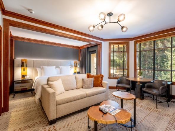 Enjoy all the amenities of the Four Seasons Resort Whistler in this beautifully renovated luxury King Studio suite. The private balcony offers peek-a-boo views of Whistler Mountain, while the gas fireplace and oversized bathroom with deep soaker tub provide the perfect place to unwind after a day outdoors. Resort amenities include a full-service spa and fitness centre, outdoor heated pool and hot tubs, 24-hour front desk and concierge, in-house restaurant and lounge, room service, and ski concierge at the base of Blackcomb Mountain. Phase II zoning allows 28 days of owner use in summer and 28 days in the winter.