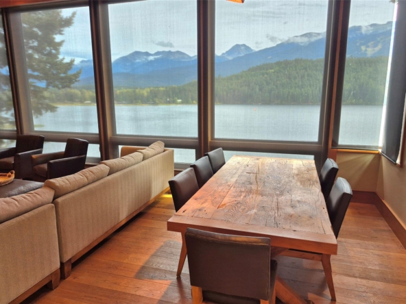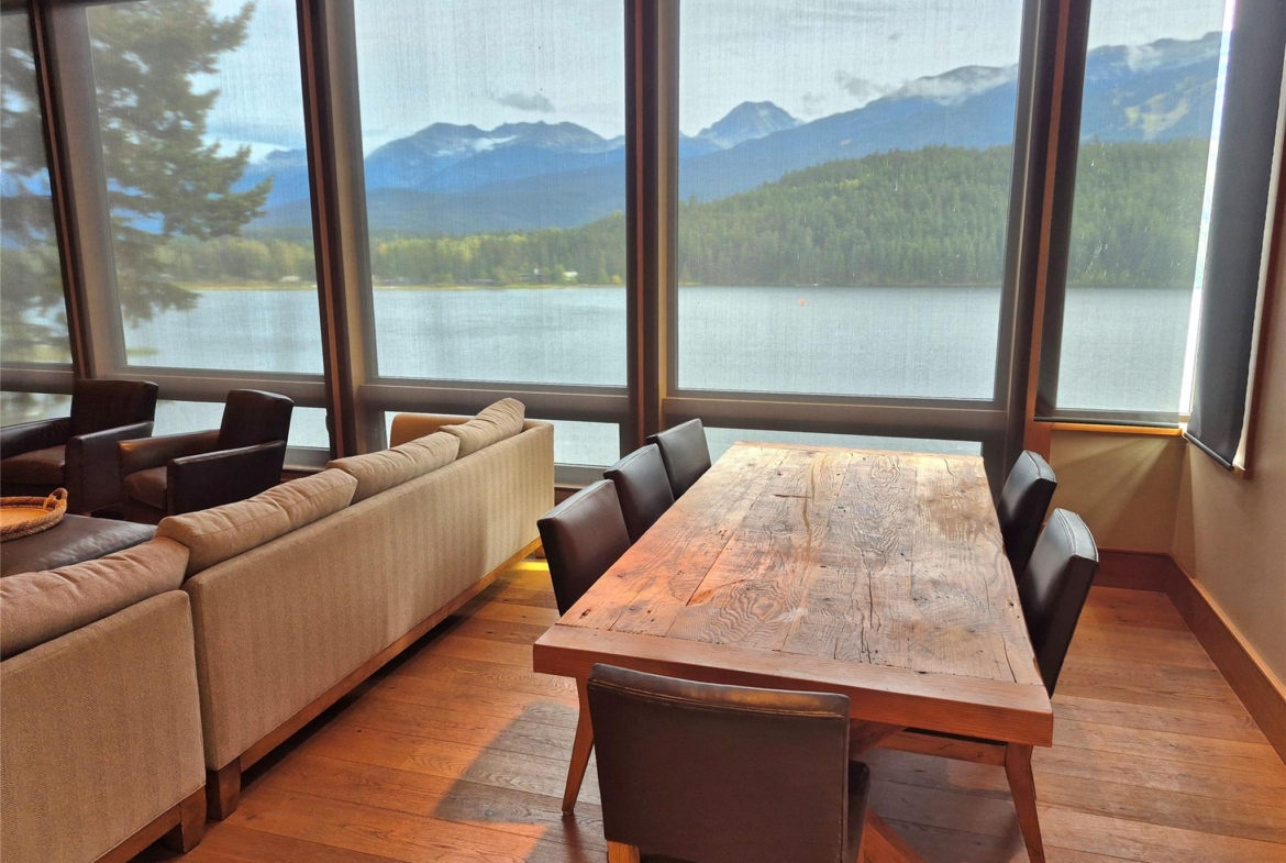 Live lakeside surrounded by breathtaking views of Whistler Blackcomb, Wedge, Mount Currie & Armchair Glacier. This stunning mountain contemporary home offers 1,700 sq. ft. of easy access main-level living, with an open design capturing all the light and views you could wish for. The living, dinning, kitchen with primary bedroom, and en suite bathroom all designed around these spectacular mountain views. Additionally 3 bedrooms and 2 bathrooms on the lower floor with a spacious family room make this a perfect retreat for a large family. Strong design, warm finishes, and endless views—your private retreat awaits.