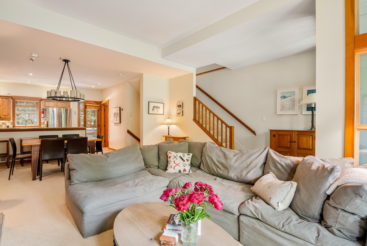 Ideally positioned in the Benchlands, this inviting 3-bedroom, 3-bathroom townhome combines ski access with spacious open-plan living. Set across three levels, it offers ample room for family and guests, with easy access to the Chateau Whistler Golf Course and the scenic trails of Lost Lake Park. A complimentary Village shuttle ensures seamless connection to Whistler’s shops and dining, while a private hot tub and single-car garage enhance convenience and comfort. Phase I zoning allows for nightly rentals and unlimited owner use. GST not applicable.