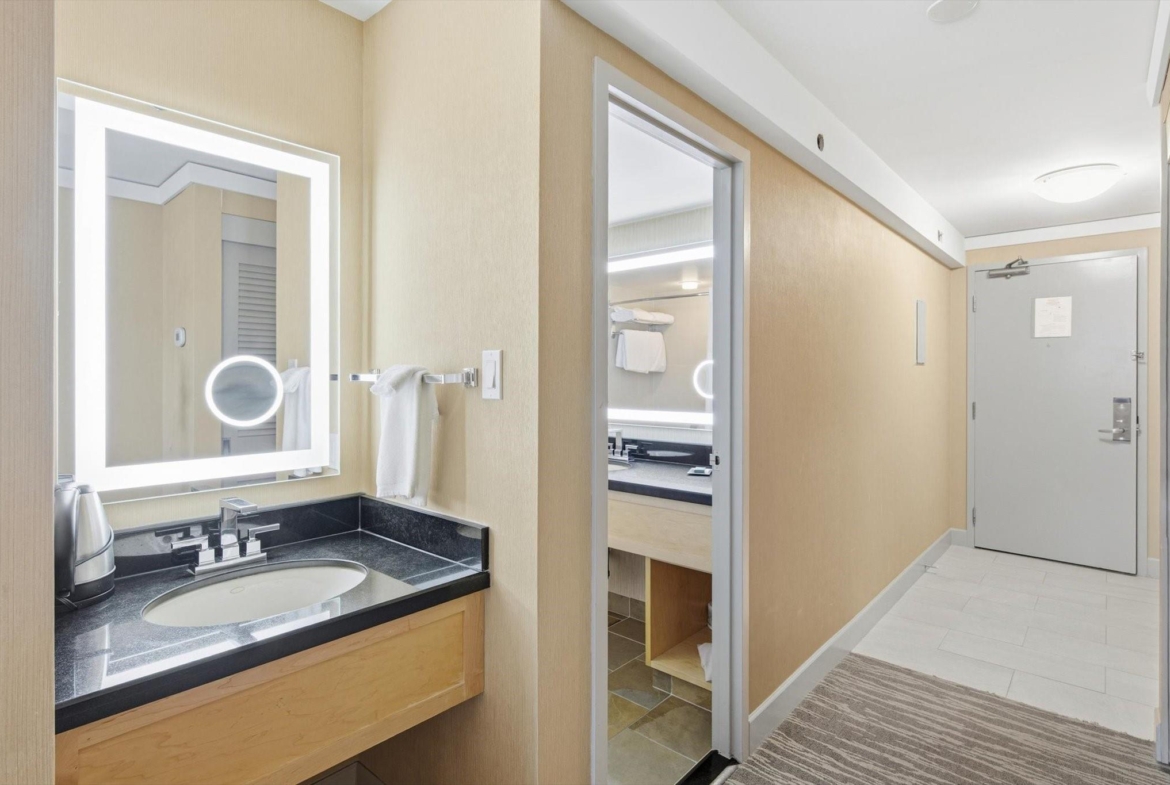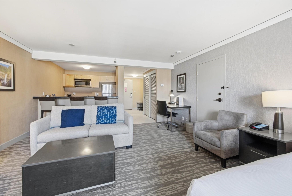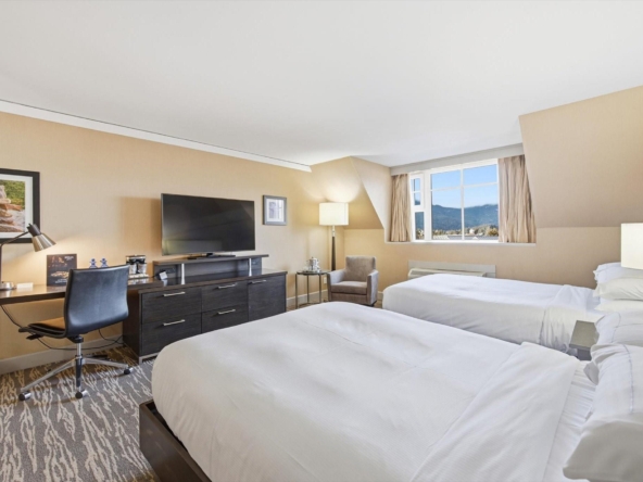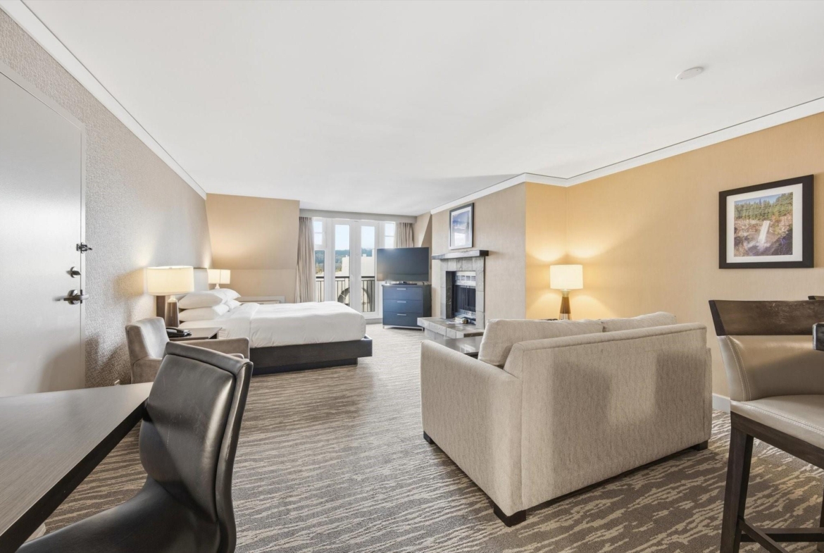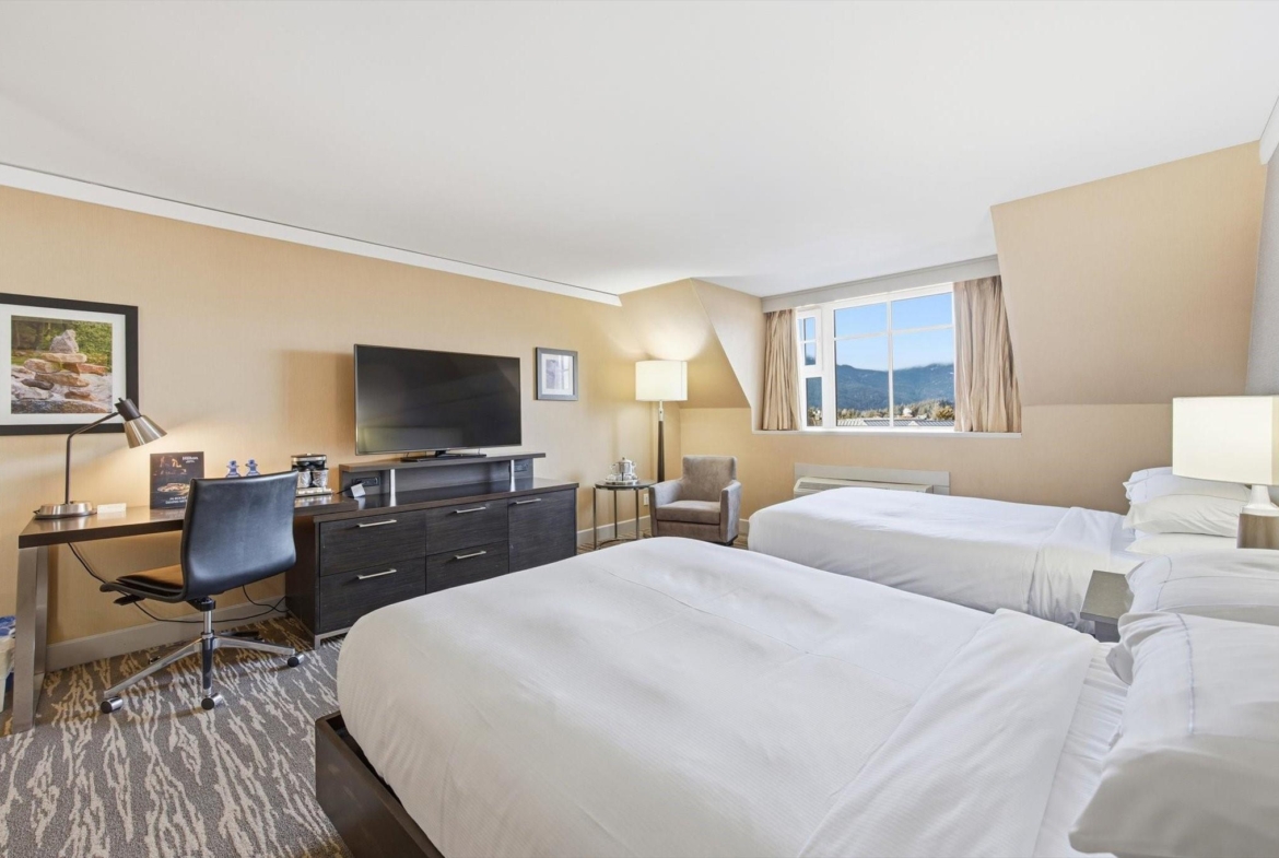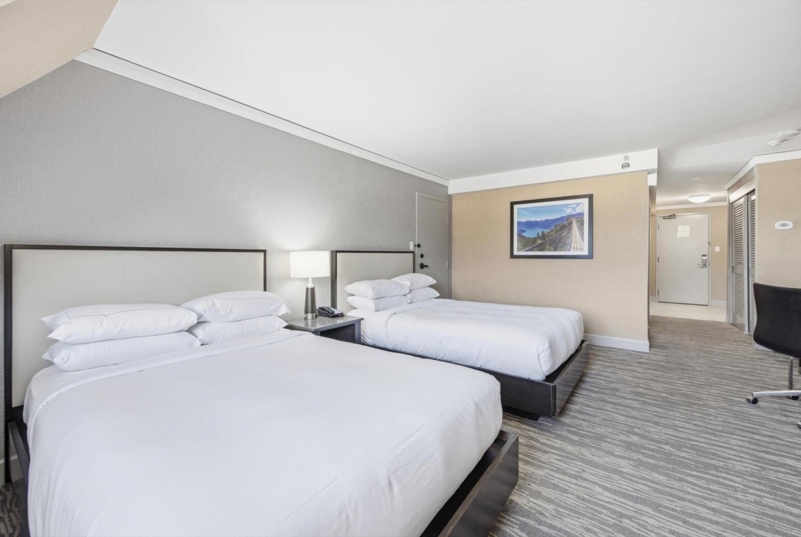 Steps from the base of both Whistler & Blackcomb gondolas, The Hilton Whistler Resort is Whistler’s only full owner use hotel-condo. Refurbished in 2019, this flexible, ‘lock-off’ plan is fully furnished with a king bed in 1 room and 2 double beds in the other room, and comes with 2 full bathrooms, a pull-out couch, kitchen with range, fireplace and balcony with excellent southwest-facing views. This layout is perfect for the family looking for more use flexibility than other hotel-condos, in a premier location while earning revenue. Use both sides or leave the kids at home and stay in one while Hilton rents out the other side for you. On-site amenities include pool, gym, hot-tub, tennis courts, restaurant and sports bar. Hilton manages all rentals spinning off excellent revenue share to the owner. No AirBNB. No room remodeling. Call for more details!