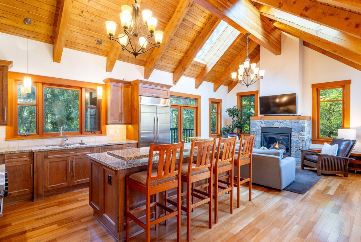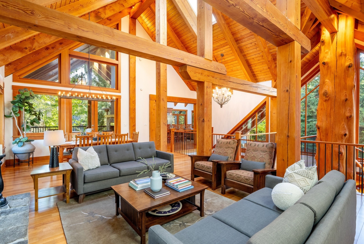 Nestled in Whistler’s coveted Nesters neighbourhood, this stunning timber-frame chalet offers timeless mountain charm just minutes from the Village, ski lifts, shops, and trails. Warm wood beams, vaulted ceilings, and a showstopping spiral staircase create a welcoming alpine atmosphere. The open-concept design flows effortlessly to a sun-filled patio, while the ground-level hot tub provides a private spot to unwind. With 3 levels of well-planned living, potential for expansion, and a legal suite, this is a home built for family connection and mountain adventure. GST not applicable.