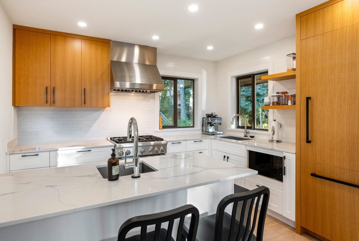 Centrally located in the prestigious and highly sought-after White Gold neighbourhood, 7206 Fitzsimmons Road offers the opportunity to enjoy a refined mountain lifestyle while providing the flexibility to tailor the residence to your vision, within walking distance of world-class Whistler and Upper Villages. Whether you’re seeking a move-in-ready property with rental suite potential, a vacation retreat, or planning your dream residence among the stunning architectural masterpieces that define the neighbourhood, this turn-key renovated home and flat lot offer all the possibilities. Set on a private, quiet, west-facing 9,800 sq. ft. lot, the property features a serene garden oasis framed by a natural rock backdrop. Inside, abundant natural light pours through expansive windows and soaring vaulted ceilings in the main open-concept living space, enhanced by custom millwork and a modern, thoughtfully designed palette that harmonizes with the surroundings. The beautiful main home offers 4 bedrooms and 3 full bathrooms, along with a renovated 1-bedroom, 1-bath suite below—both equipped with gas fireplaces for cozy winter days. Relax on your west-facing deck as the sun sets, enjoying seamless indoor/outdoor living after a day on the hill exploring unparalleled skiing or downhill biking. The front (irrigated) grassy lawn is perfect for kids, and the backyard is a wonderful space, including a large rock feature wall. There is ample space for outdoor living, family entertainment, or a hot tub to complete your vision. Truly a four-seasons location—stroll or cycle to Lost Lake in summer for swimming, SUP’ing, mountain biking trails, and hiking, or in winter for XC skiing. Just steps from Whistler’s dining, shopping, and mountain gondolas and chairlifts, this home allows you to live the mountain lifestyle effortlessly. Don’t miss the opportunity to call White Gold home. Renderings available upon inquiry.