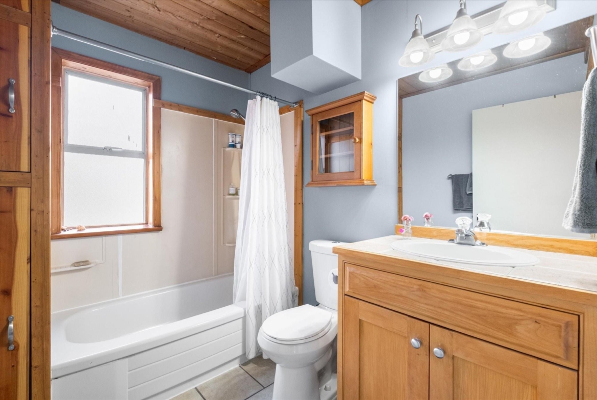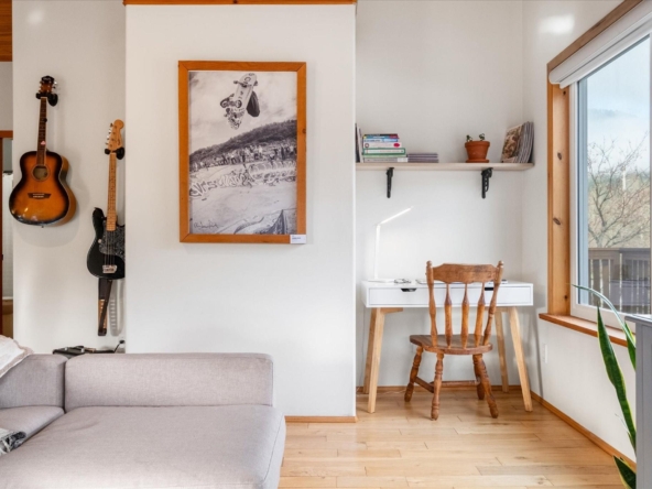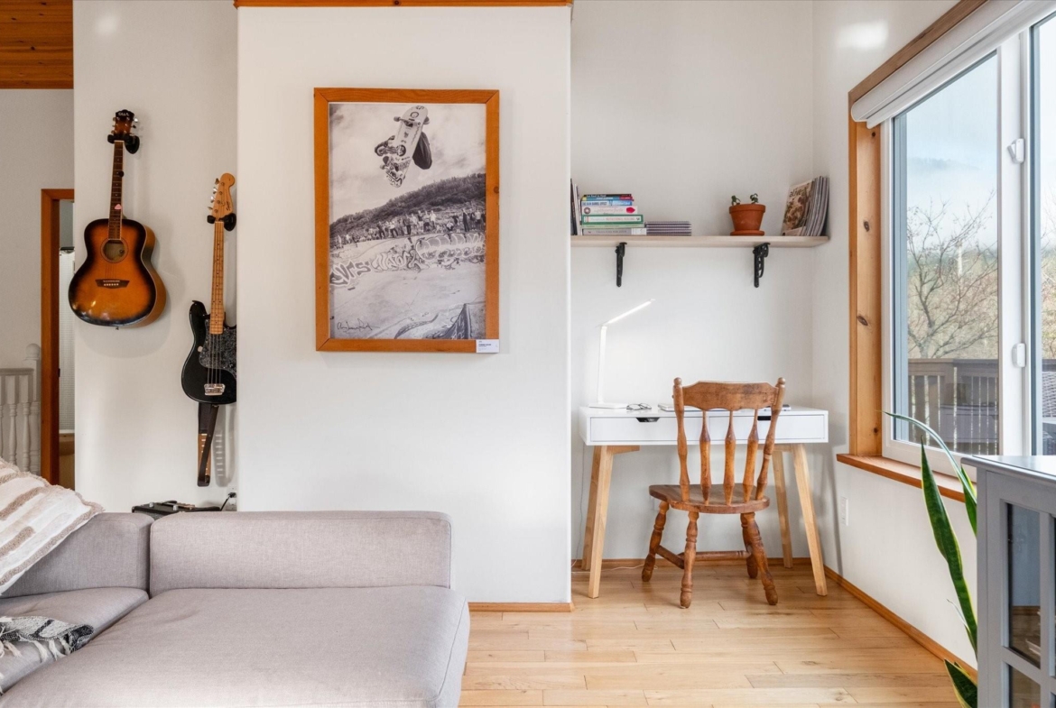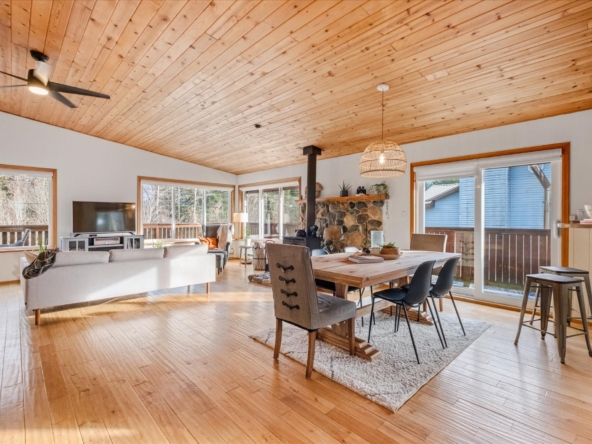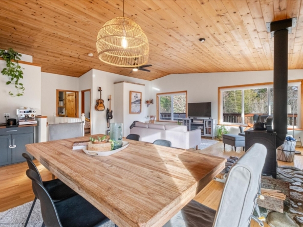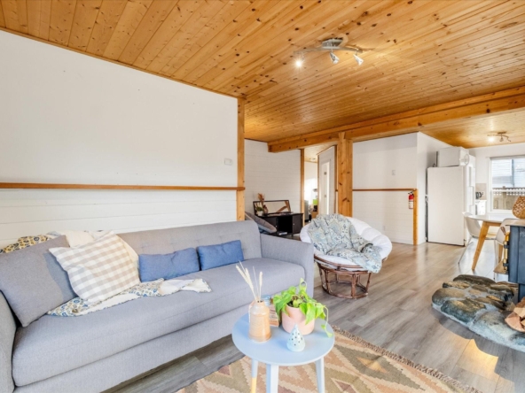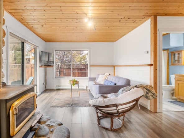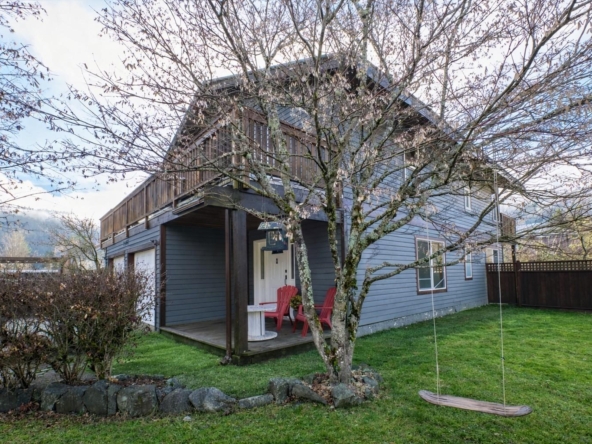 Sunshine, mountain views, and flexible living come together in this Pemberton home on a corner lot with mature trees and established landscaping. The open-concept living area is bright and welcoming, anchored by a cozy wood-burning stove, with some updates already completed.