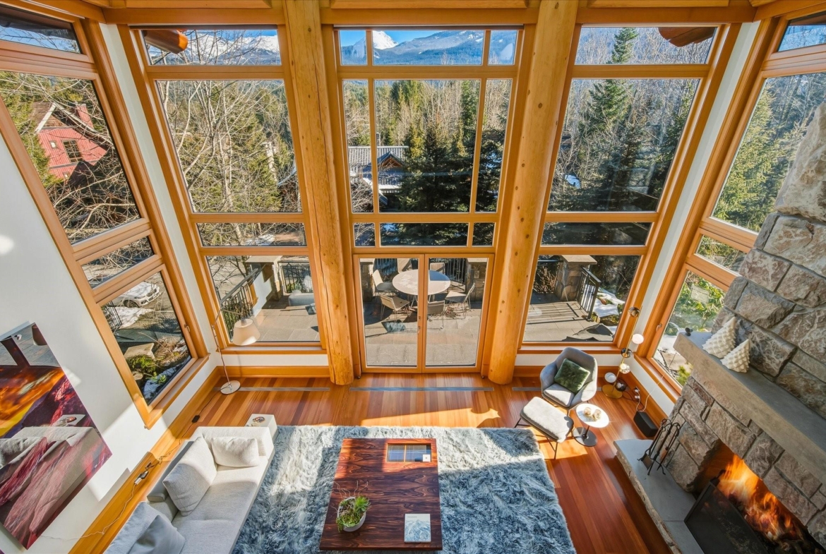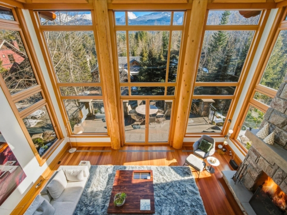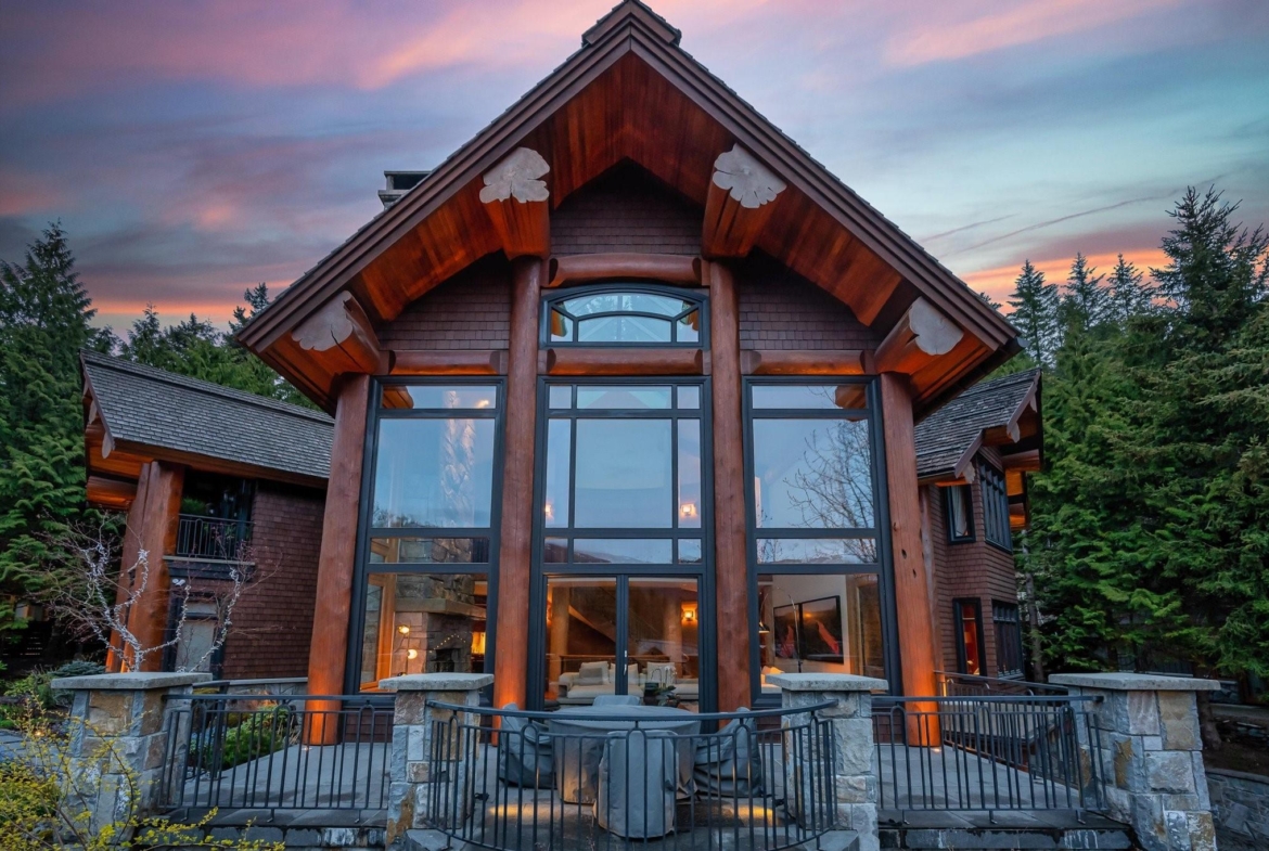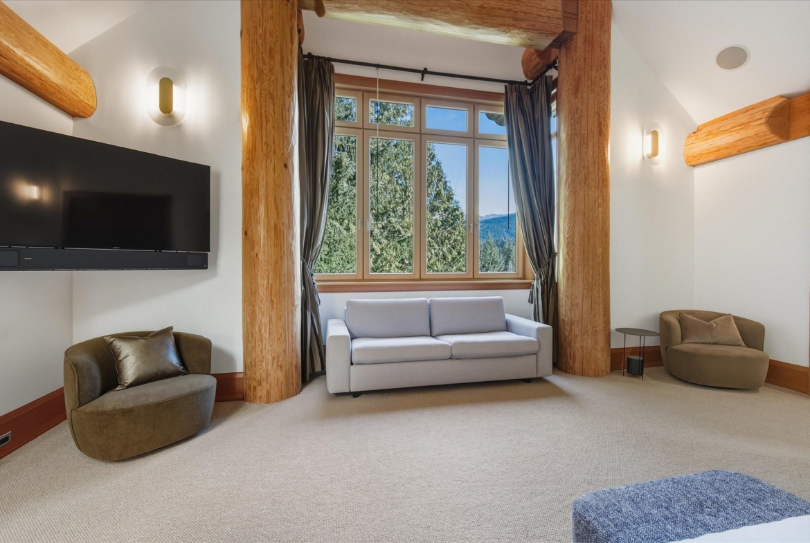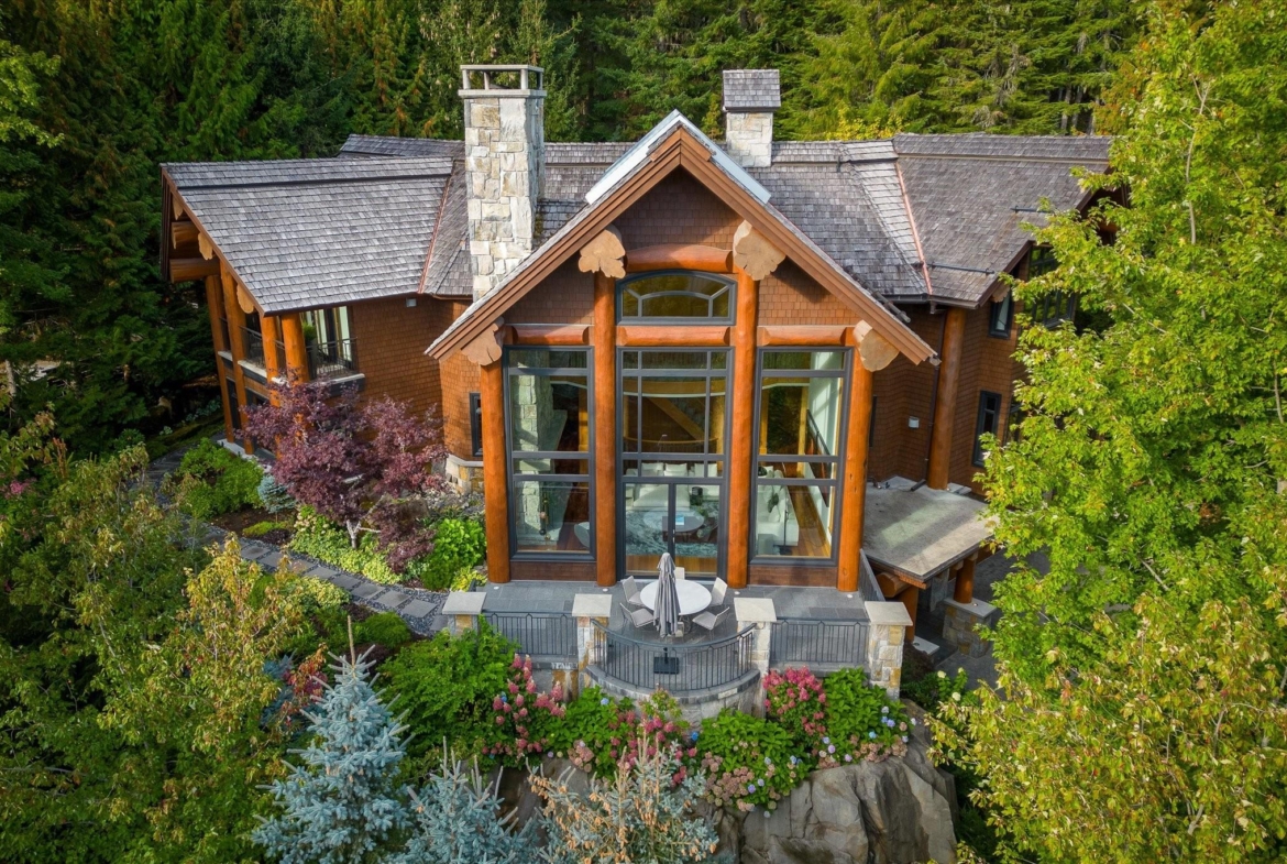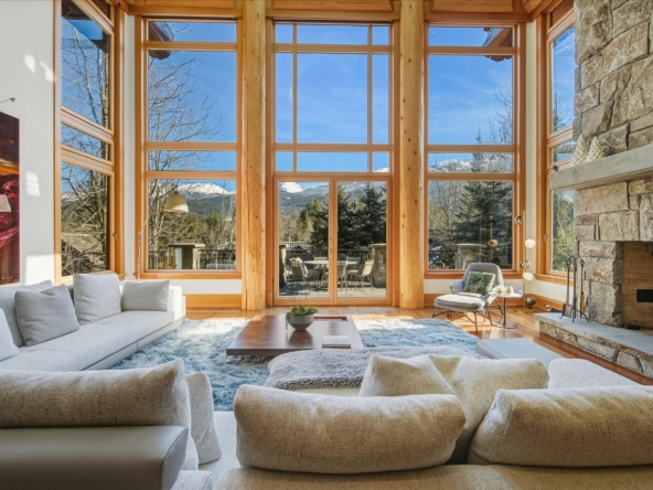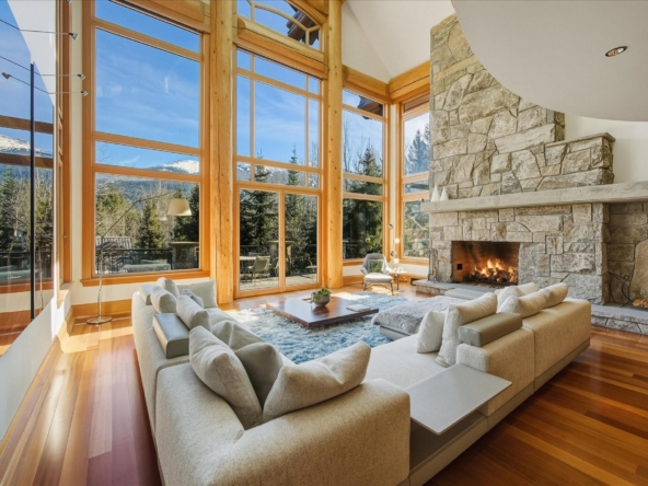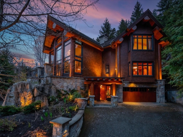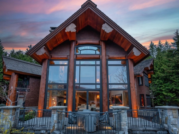 A Whistler chateau of unparalleled scale and craftsmanship, privately gated on one of Whistler’s most coveted estate streets— moments from Whistler Village, yet distinctly private. Perched on an oversized lot, this timeless mountain estate, built by Vision Pacific during the golden era of cedar post-and-beam construction. Monumental cedar columns, rich hardwood floors, and a dramatic curved staircase anchor the grand living hall, where a striking stone fireplace rises beneath 29.5-ft ceilings and floor-to-ceiling windows frame panoramic views of Blackcomb, Wedge Mountain, and Armchair Glacier. Lighting and blinds are fully automated, offering seamless control and privacy at the touch of a button. An expansive deck extends the living room for refined alfresco living. The main level is thoughtfully designed for family gathering and equally suited to celebration (a great ski day!) and entertaining. A chef’s kitchen is appointed with Sub-Zero and Ultraline, custom cabinetry, a built-in pantry, and generous serving areas. A generous dining area flows effortlessly into warm gathering spaces, alongside a temperature-controlled wine room and private office/library. Convenient access to your private outdoor alpine oasis framed by natural rock and forest — a covered stone courtyard with a built-in fireplace, hot tub, and elevated terrace for year-round enjoyment. All 4 upper-level bedrooms feature private ensuites, terrace access and vaulted ceilings. Both the primary and guest suites feature private steam showers, with the primary offering a spa-inspired bath. The lower level includes a media room, games room, private gym with an ensuite, and a double-car garage to accommodate all your Whistler gear. Commercial-grade systems include multi-boiler hydronic heating, automated snow-melt, zoned climate control, and Lutron integrated lighting and audio — ensuring seamless comfort and efficiency. A true legacy property for those who expect the exceptional.