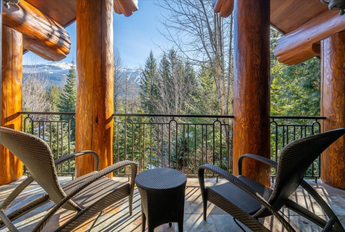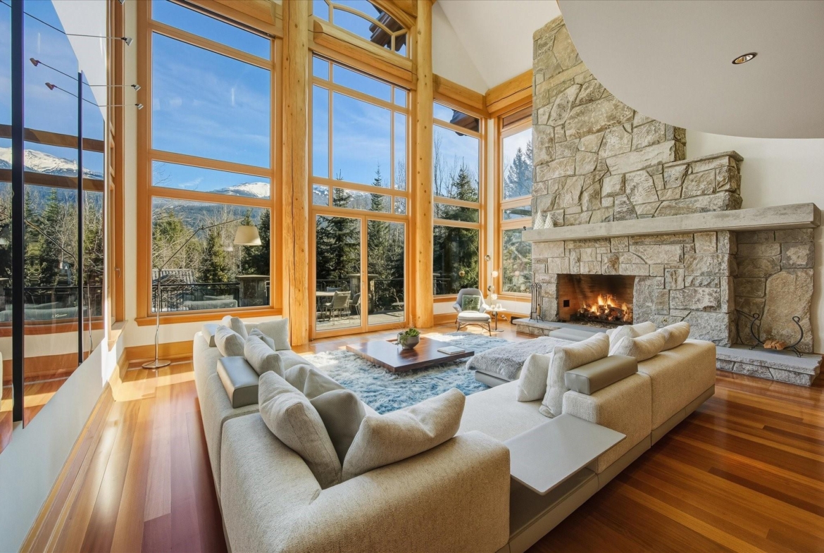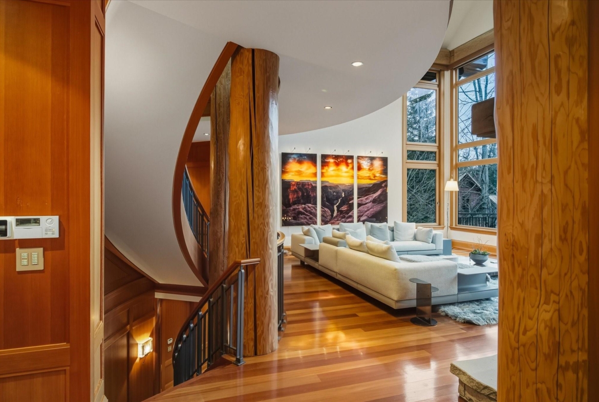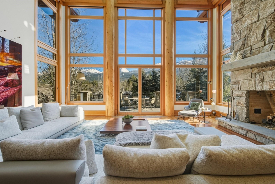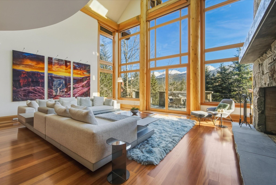 A Whistler chateau of unparalleled scale and craftsmanship, privately gated on one of Whistler’s most coveted estate streets— moments from Whistler Village, yet distinctly private. Perched on an oversized lot, this timeless mountain estate, built by Vision Pacific during the golden era of cedar post-and-beam construction. Monumental cedar columns, rich hardwood floors, and a dramatic curved staircase anchor the grand living hall, where a striking stone fireplace rises beneath 29.5-ft ceilings and floor-to-ceiling windows frame panoramic views of Blackcomb, Wedge Mountain, and Armchair Glacier. Lighting and blinds are fully automated, offering seamless control and privacy at the touch of a button. An expansive deck extends the living room for refined alfresco living. The main level is thoughtfully designed for family gathering and equally suited to celebration (a great ski day!) and entertaining. A chef’s kitchen is appointed with Sub-Zero and Ultraline, custom cabinetry, a built-in pantry, and generous serving areas. A generous dining area flows effortlessly into warm gathering spaces, alongside a temperature-controlled wine room and private office/library. Convenient access to your private outdoor alpine oasis framed by natural rock and forest — a covered stone courtyard with a built-in fireplace, hot tub, and elevated terrace for year-round enjoyment. All 4 upper-level bedrooms feature private ensuites, terrace access and vaulted ceilings. Both the primary and guest suites feature private steam showers, with the primary offering a spa-inspired bath. The lower level includes a media room, games room, private gym with an ensuite, and a double-car garage to accommodate all your Whistler gear. Commercial-grade systems include multi-boiler hydronic heating, automated snow-melt, zoned climate control, and Lutron integrated lighting and audio — ensuring seamless comfort and efficiency. A true legacy property for those who expect the exceptional.
