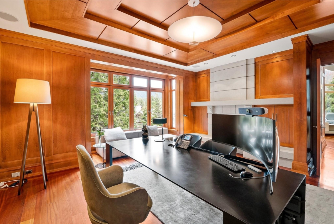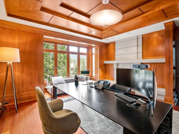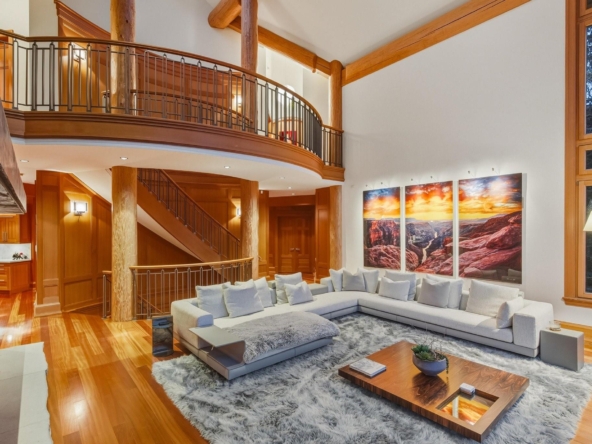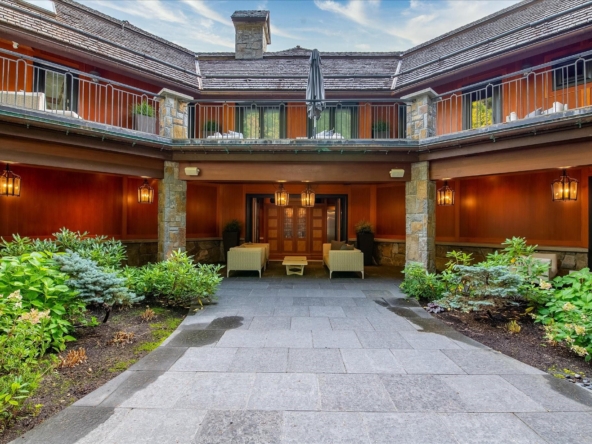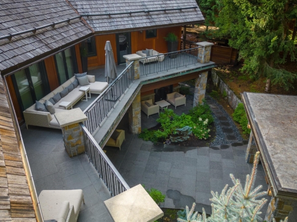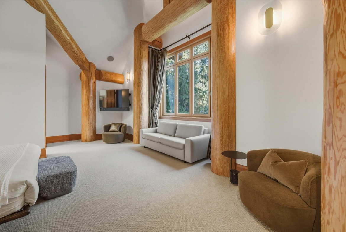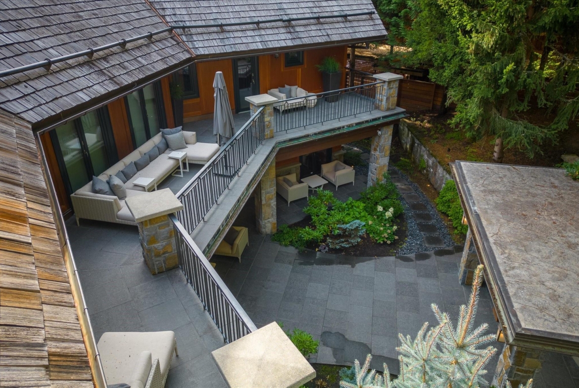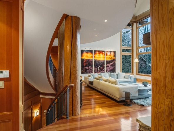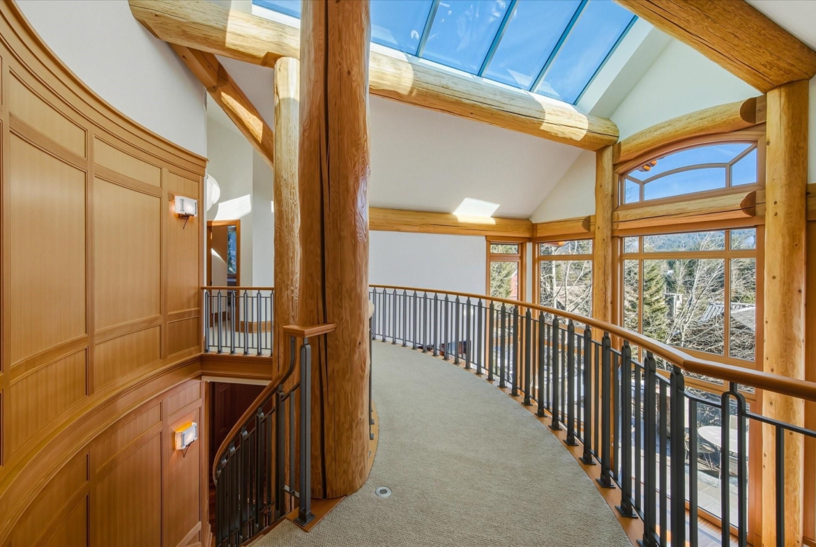 A Whistler chateau of unparalleled scale and craftsmanship, privately gated on one of Whistler’s most coveted estate streets— moments from Whistler Village, yet distinctly private. Perched on an oversized lot, this timeless mountain estate, built by Vision Pacific during the golden era of cedar post-and-beam construction. Monumental cedar columns, rich hardwood floors, and a dramatic curved staircase anchor the grand living hall, where a striking stone fireplace rises beneath 29.5-ft ceilings and floor-to-ceiling windows frame panoramic views of Blackcomb, Wedge Mountain, and Armchair Glacier. Lighting and blinds are fully automated, offering seamless control and privacy at the touch of a button. An expansive deck extends the living room for refined alfresco living. The main level is thoughtfully designed for family gathering and equally suited to celebration (a great ski day!) and entertaining. A chef’s kitchen is appointed with Sub-Zero and Ultraline, custom cabinetry, a built-in pantry, and generous serving areas. A generous dining area flows effortlessly into warm gathering spaces, alongside a temperature-controlled wine room and private office/library. Convenient access to your private outdoor alpine oasis framed by natural rock and forest — a covered stone courtyard with a built-in fireplace, hot tub, and elevated terrace for year-round enjoyment. All 4 upper-level bedrooms feature private ensuites, terrace access and vaulted ceilings. Both the primary and guest suites feature private steam showers, with the primary offering a spa-inspired bath. The lower level includes a media room, games room, private gym with an ensuite, and a double-car garage to accommodate all your Whistler gear. Commercial-grade systems include multi-boiler hydronic heating, automated snow-melt, zoned climate control, and Lutron integrated lighting and audio — ensuring seamless comfort and efficiency. A true legacy property for those who expect the exceptional.
