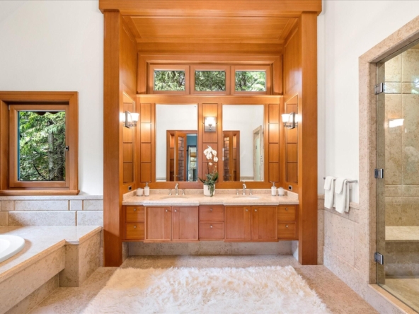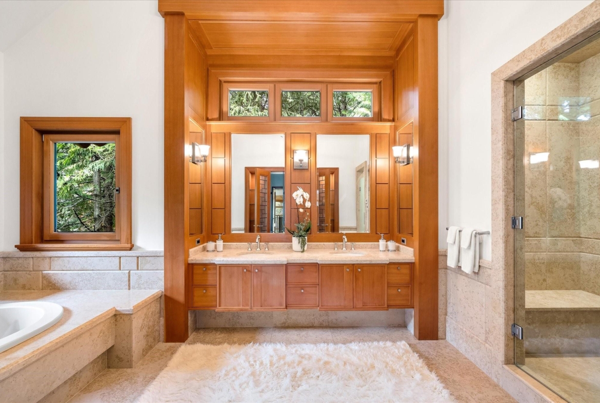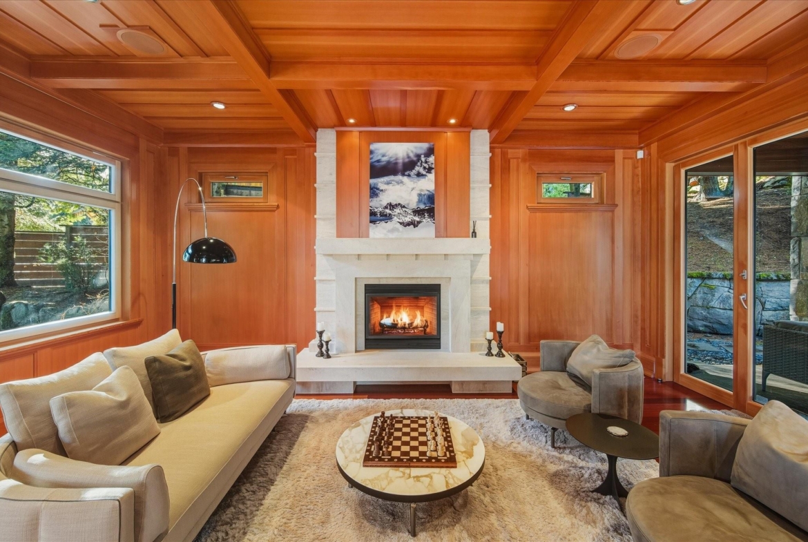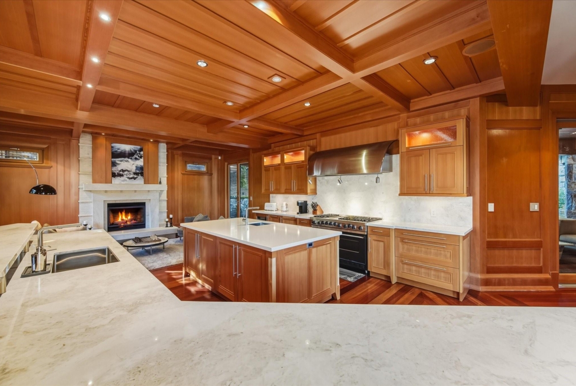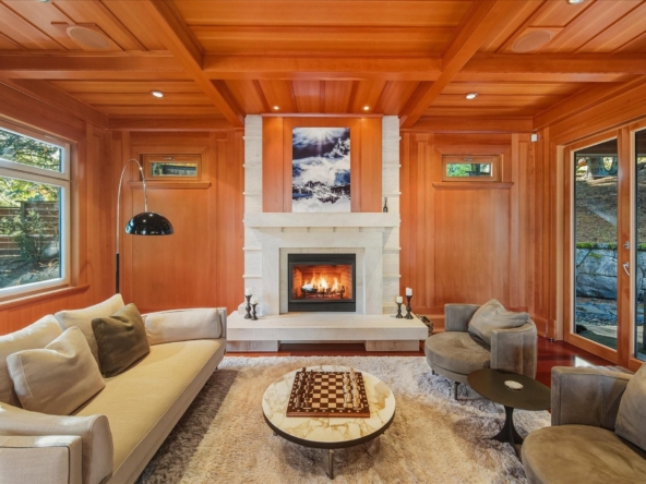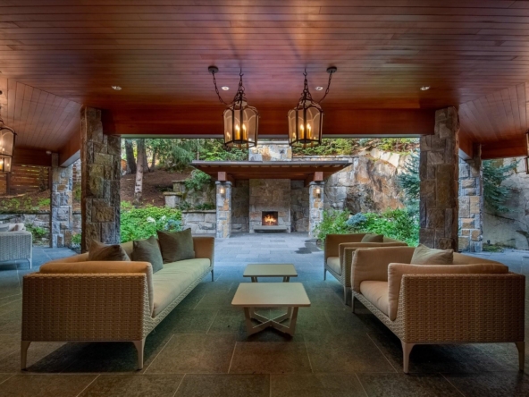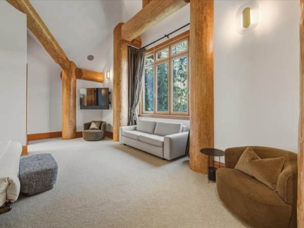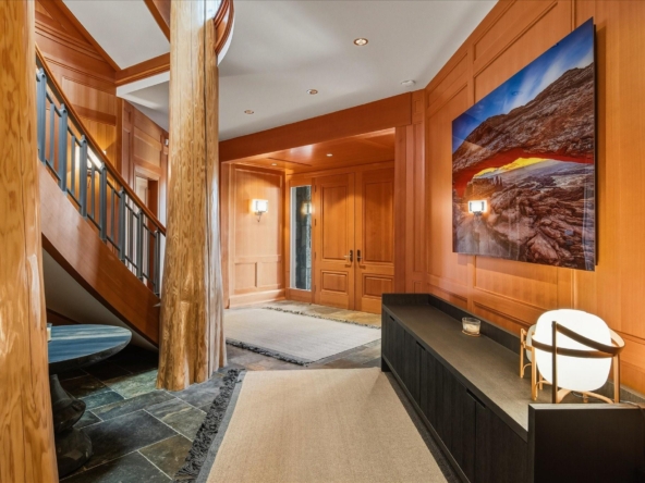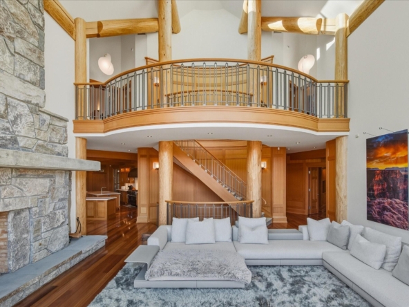 A Whistler chateau of unparalleled scale and craftsmanship, privately gated on one of Whistler’s most coveted estate streets— moments from Whistler Village, yet distinctly private. Perched on an oversized lot, this timeless mountain estate, built by Vision Pacific during the golden era of cedar post-and-beam construction. Monumental cedar columns, rich hardwood floors, and a dramatic curved staircase anchor the grand living hall, where a striking stone fireplace rises beneath 29.5-ft ceilings and floor-to-ceiling windows frame panoramic views of Blackcomb, Wedge Mountain, and Armchair Glacier. Lighting and blinds are fully automated, offering seamless control and privacy at the touch of a button. An expansive deck extends the living room for refined alfresco living. The main level is thoughtfully designed for family gathering and equally suited to celebration (a great ski day!) and entertaining. A chef’s kitchen is appointed with Sub-Zero and Ultraline, custom cabinetry, a built-in pantry, and generous serving areas. A generous dining area flows effortlessly into warm gathering spaces, alongside a temperature-controlled wine room and private office/library. Convenient access to your private outdoor alpine oasis framed by natural rock and forest — a covered stone courtyard with a built-in fireplace, hot tub, and elevated terrace for year-round enjoyment. All 4 upper-level bedrooms feature private ensuites, terrace access and vaulted ceilings. Both the primary and guest suites feature private steam showers, with the primary offering a spa-inspired bath. The lower level includes a media room, games room, private gym with an ensuite, and a double-car garage to accommodate all your Whistler gear. Commercial-grade systems include multi-boiler hydronic heating, automated snow-melt, zoned climate control, and Lutron integrated lighting and audio — ensuring seamless comfort and efficiency. A true legacy property for those who expect the exceptional.