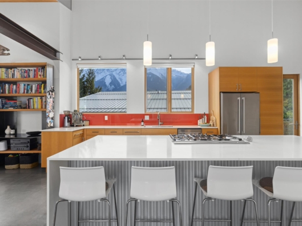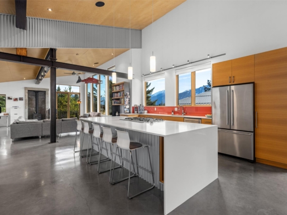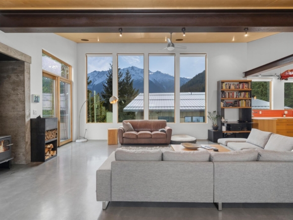 of Mt. Currie and the valley. Built in 2013, it features an open layout with vaulted ceilings
